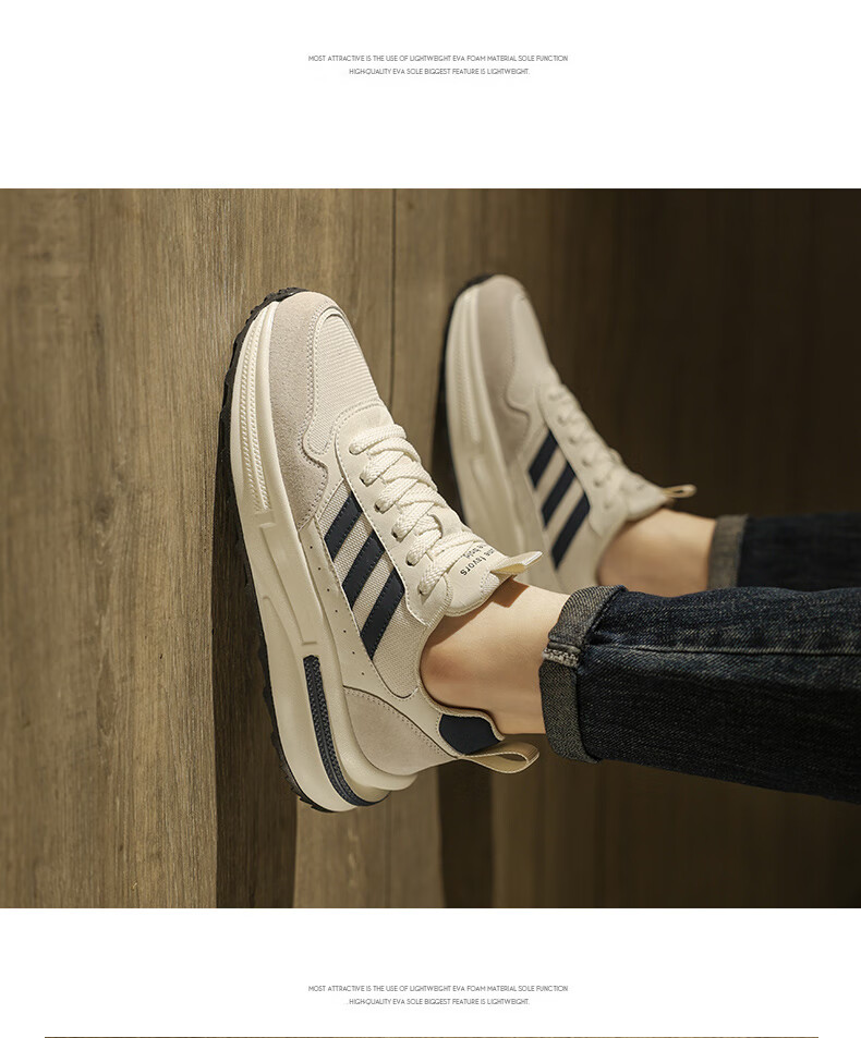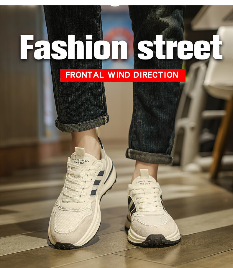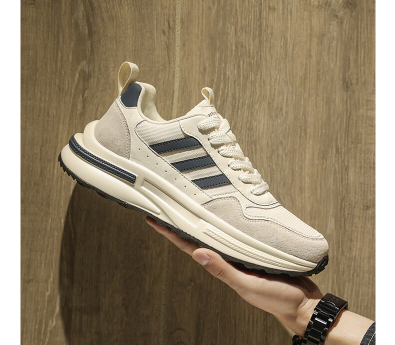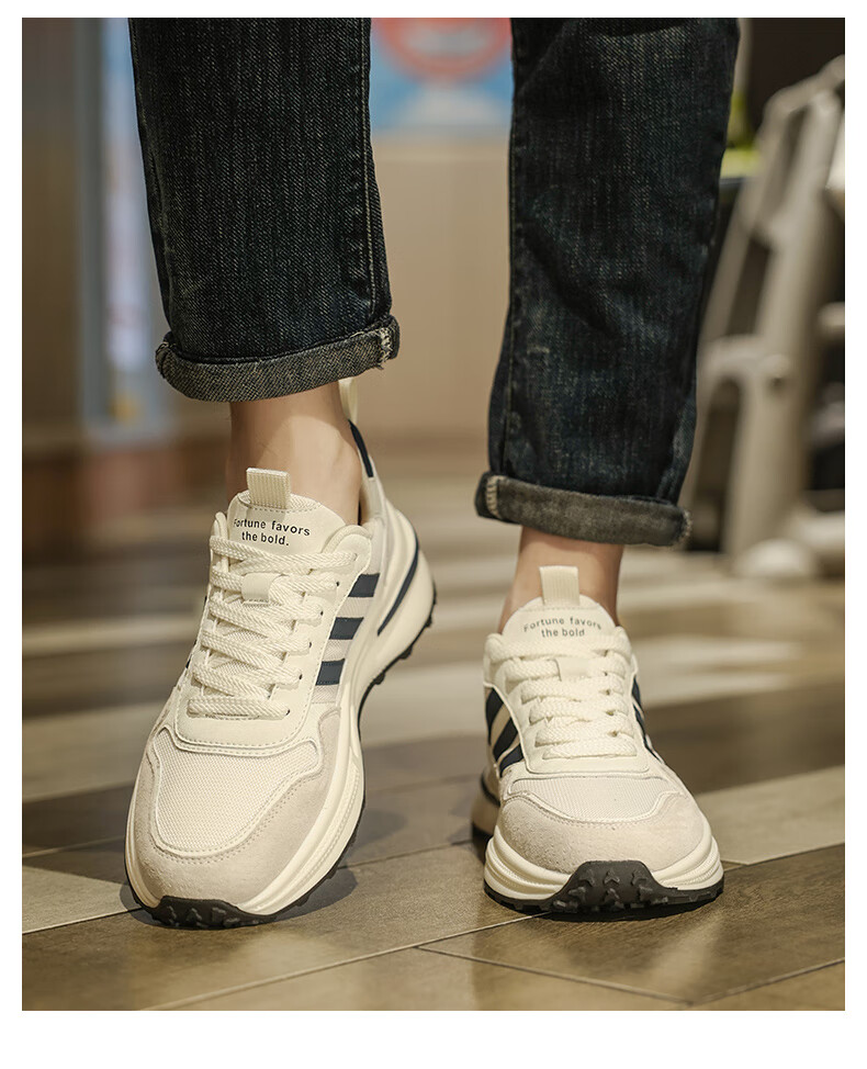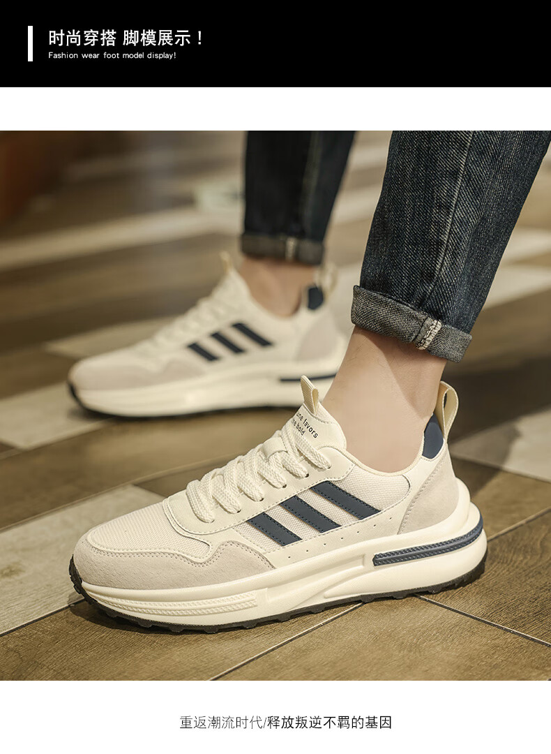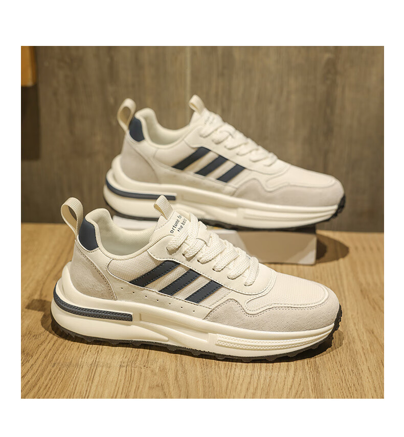 轻奢男鞋2025秋冬季新款休闲运动板鞋男士百搭轻便保暖跑步鞋子男 AD522米色【皮面】 42