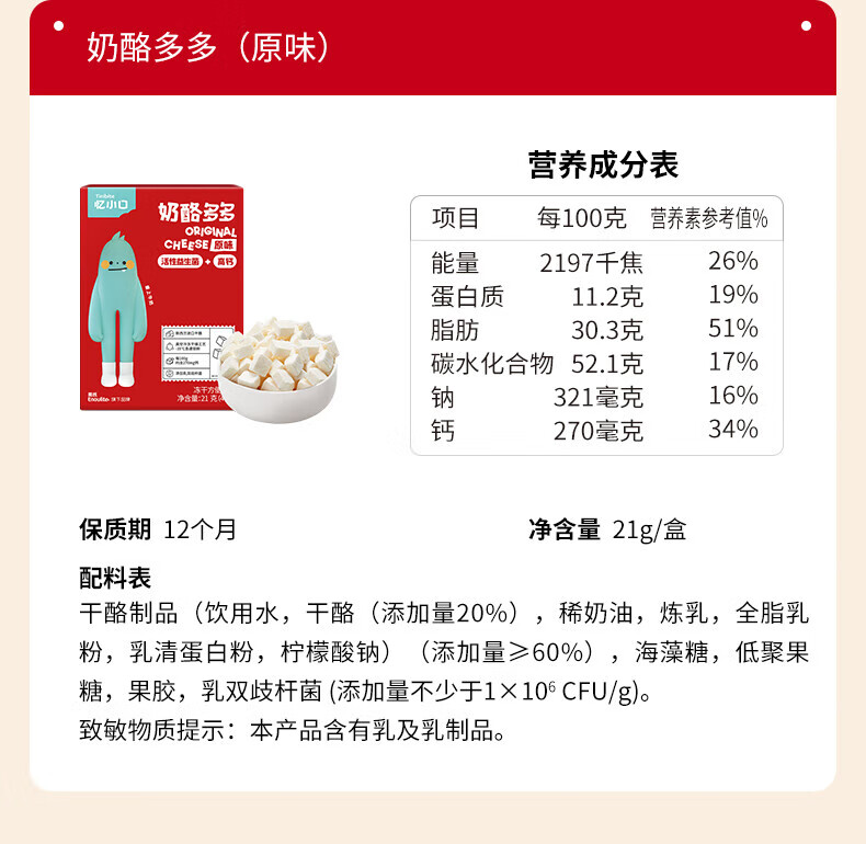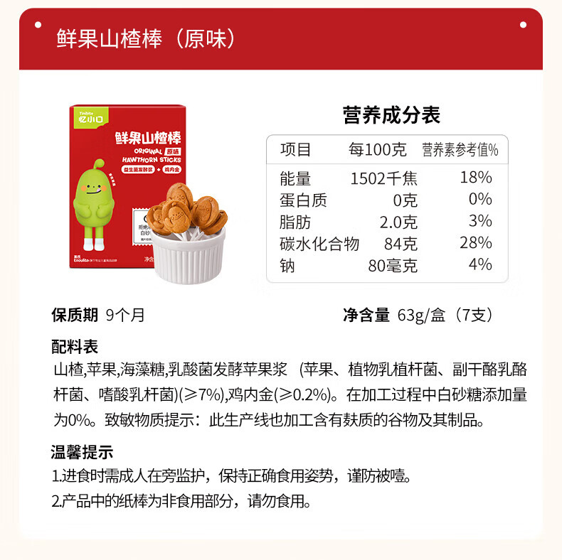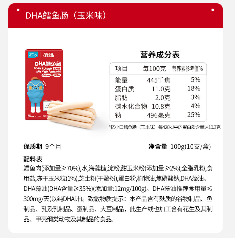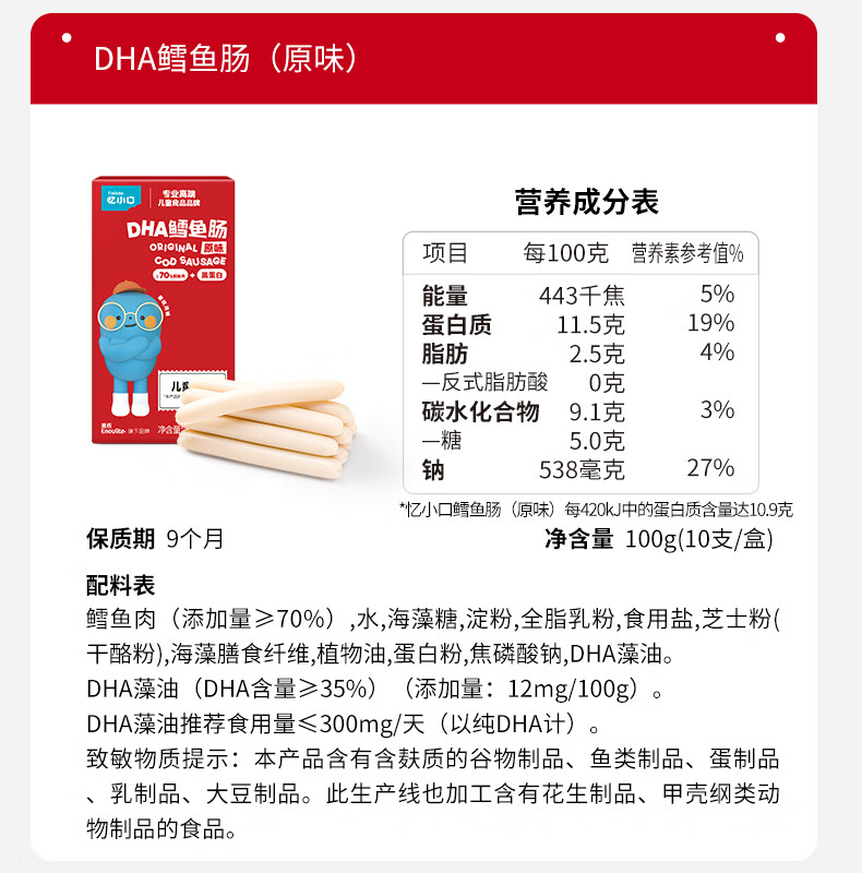 英氏(Engnice)【99到手10件】忆小口大宝儿童零食任选专区 鳕鱼肠饼干海苔脆奶 鳕鱼肠(原味)
