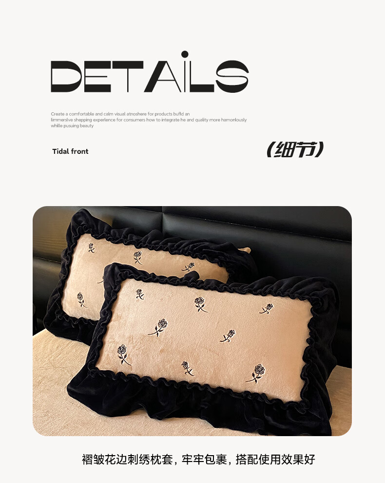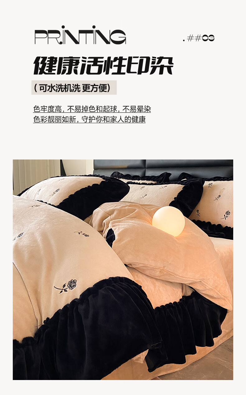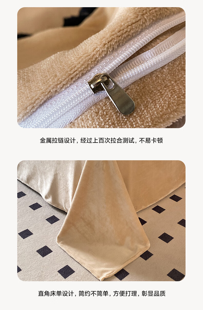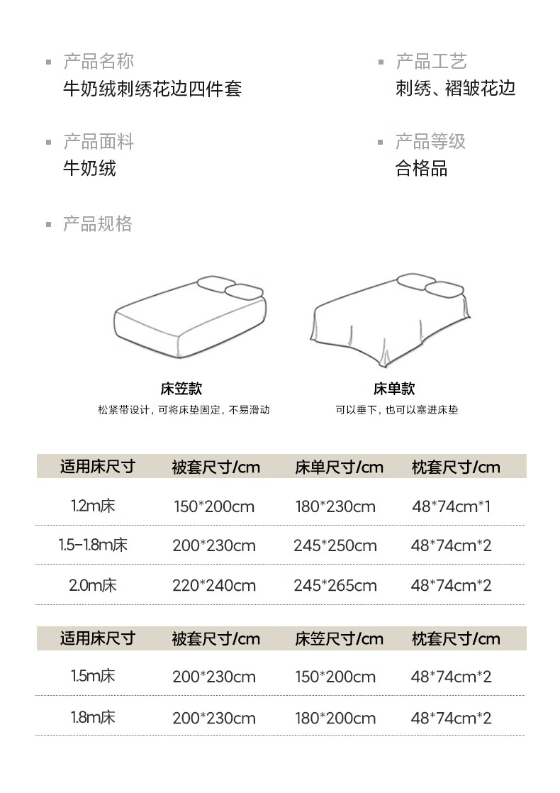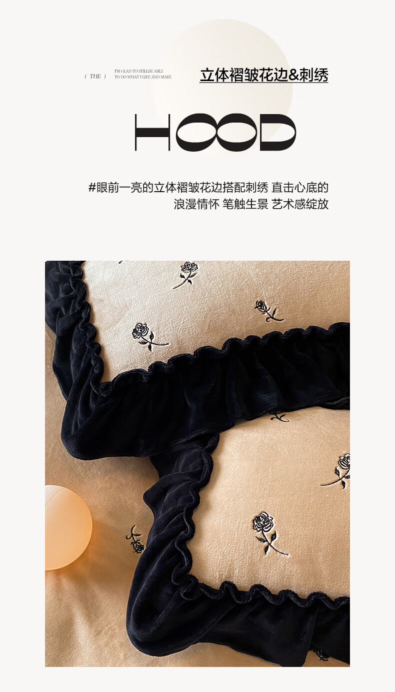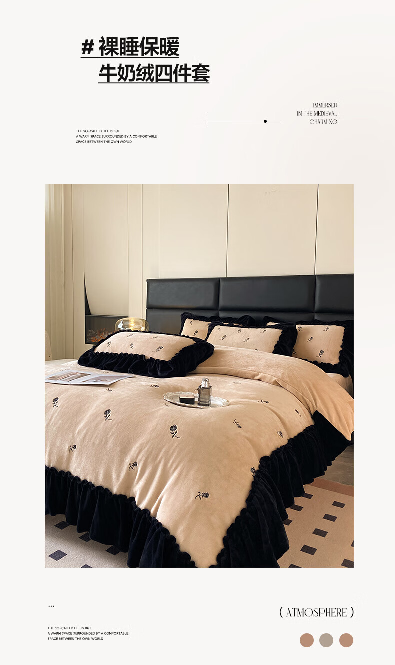 VJE花边款秋冬季法式牛奶绒四件套公主风高级感珊瑚绒被套床单三件套 花韵-香槟 三件套1.2m 床单款 (被套150*200cm)