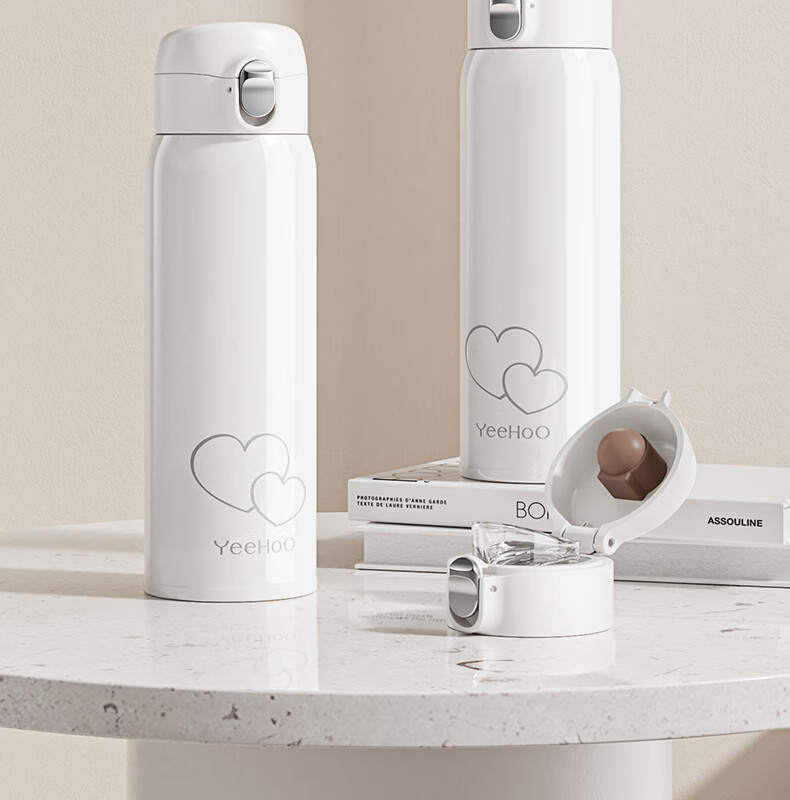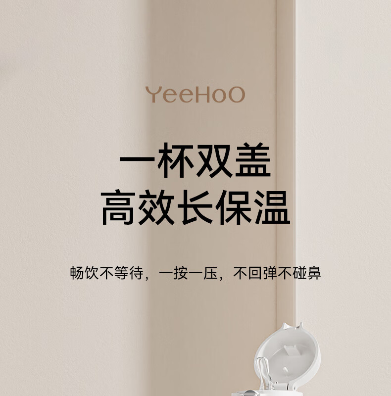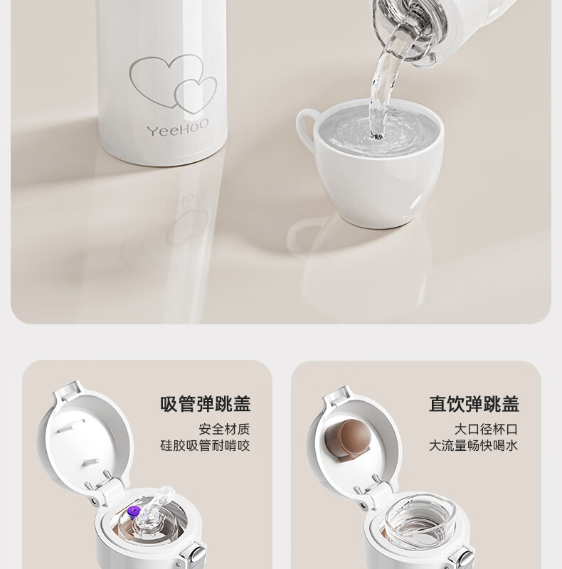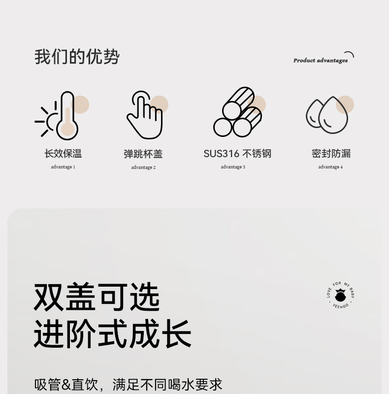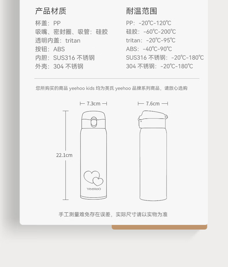 英氏(YEEHOO)保温杯316不锈钢儿童吸管杯双盖杯孕妇保温杯学生水壶水杯外出杯