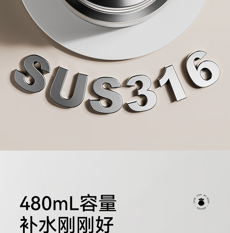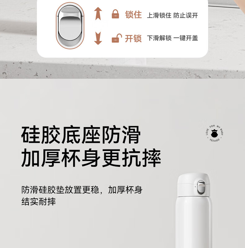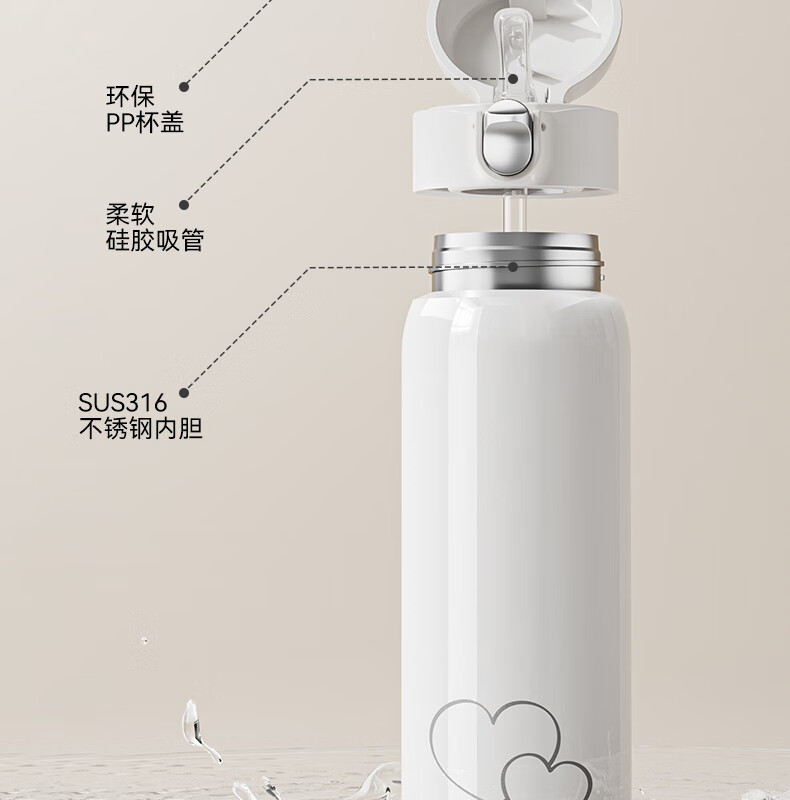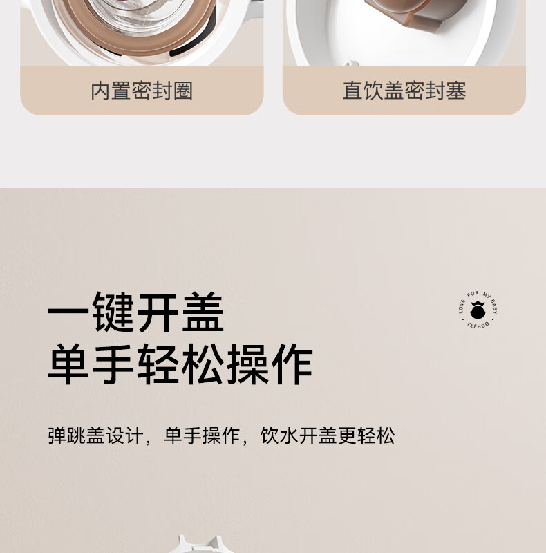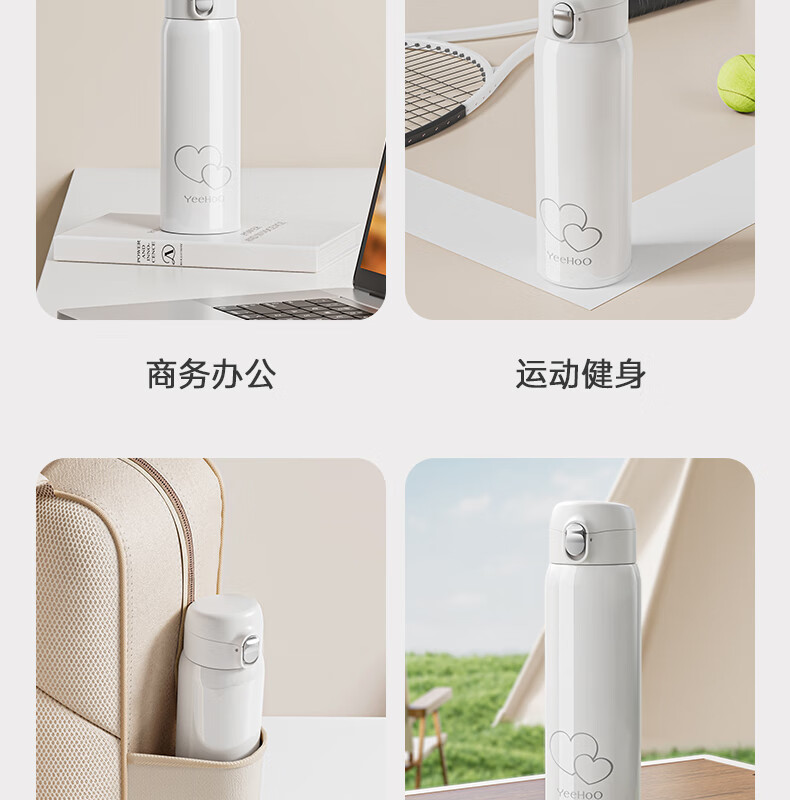英氏(YEEHOO)保温杯316不锈钢儿童吸管杯双盖杯孕妇保温杯学生水壶水杯外出杯