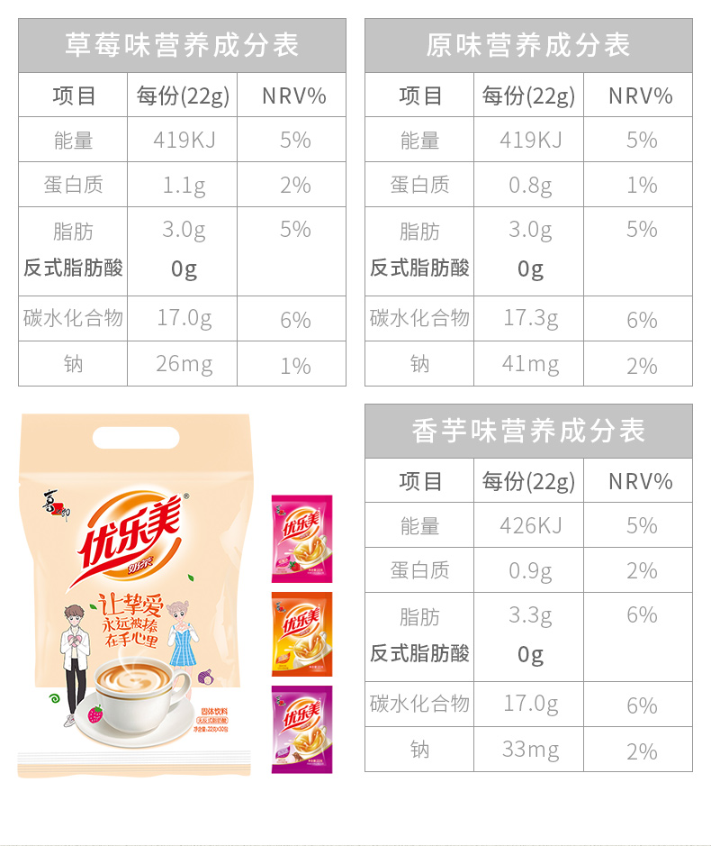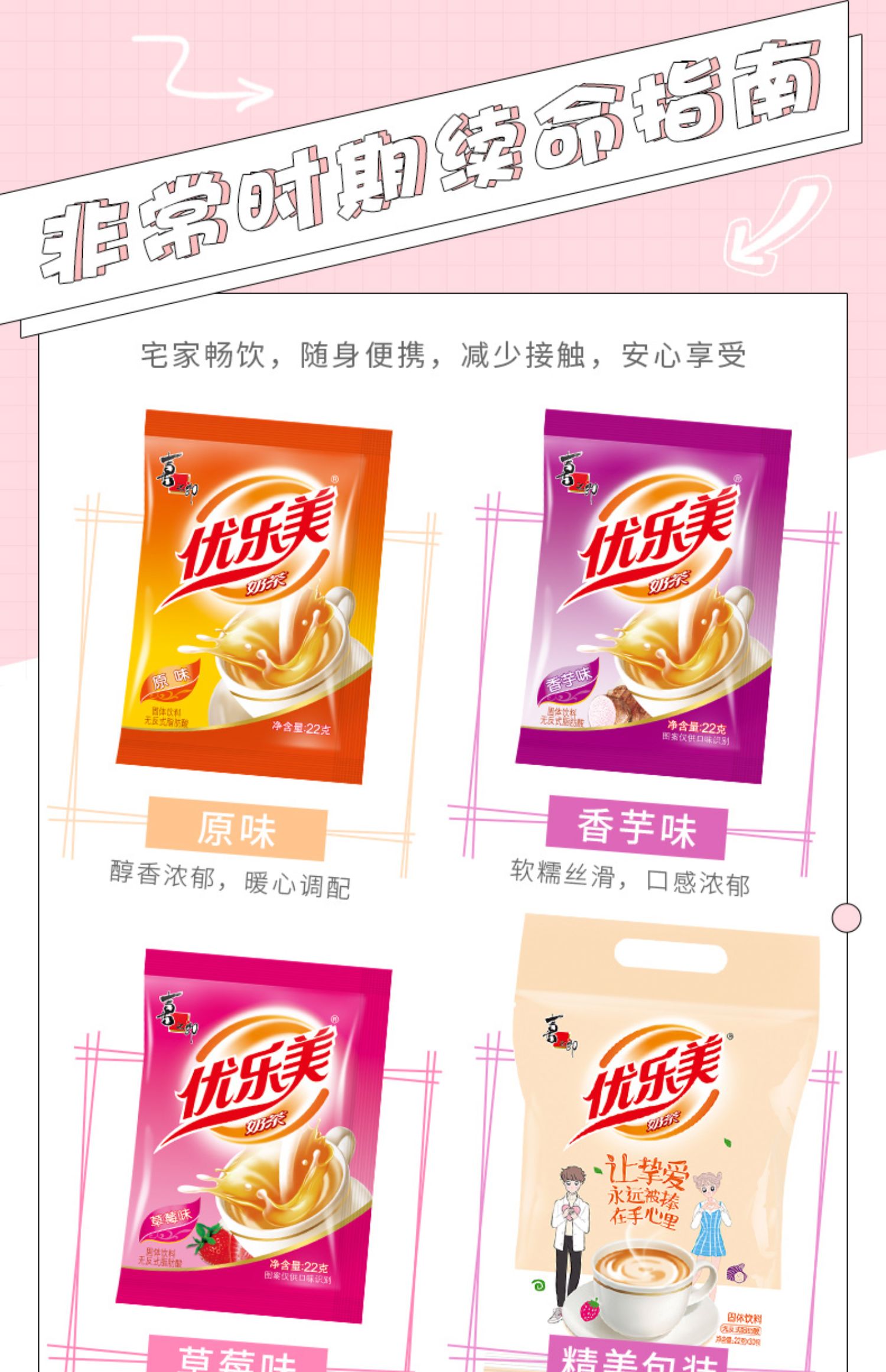 优乐美奶茶粉22克x30袋原味/香芋/草莓/3口味早餐下午茶速溶冲饮袋装