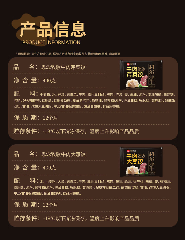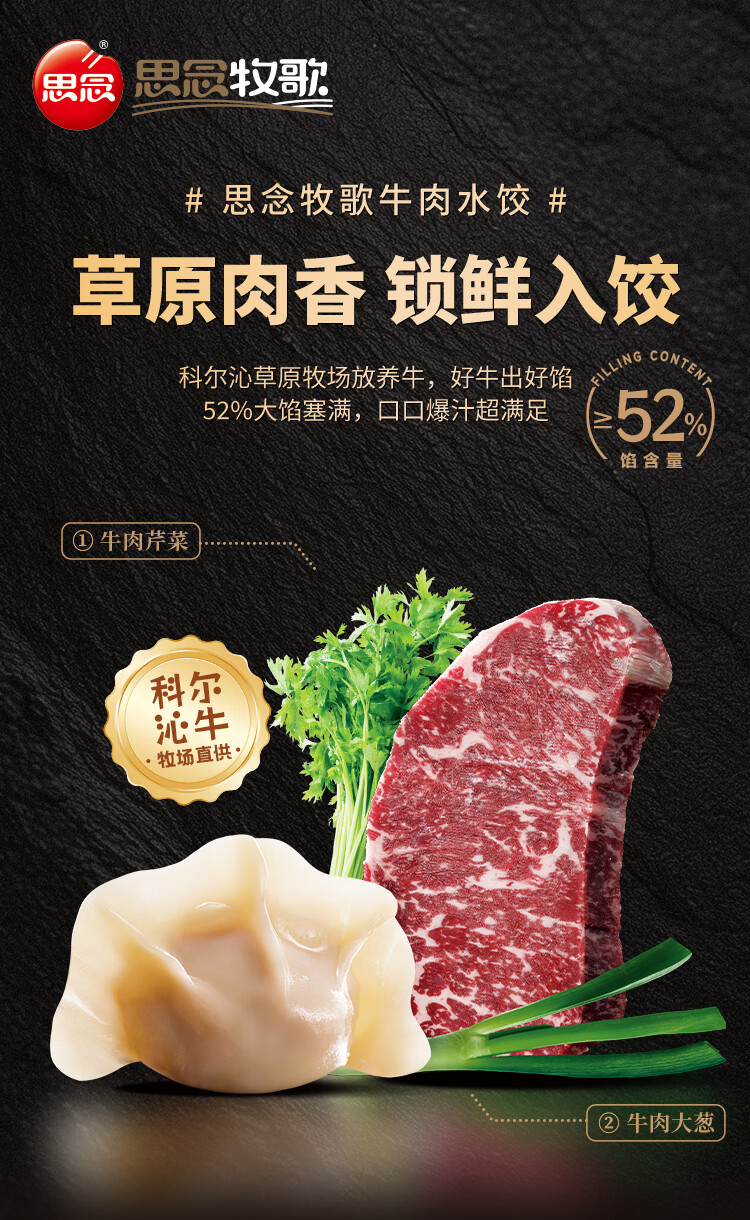思念真牛肉水饺牧歌羊肉水饺小云吞薄皮馄饨猪肉馄饨早餐饺子速食 牧歌牛肉大葱饺400g