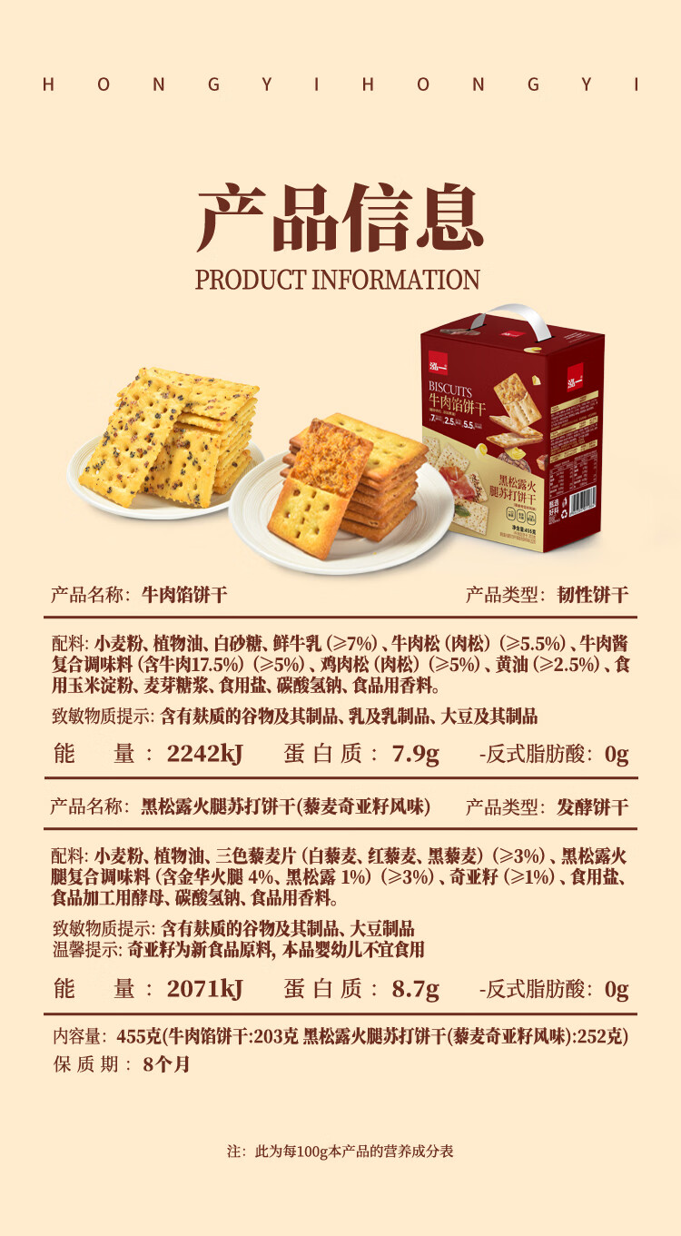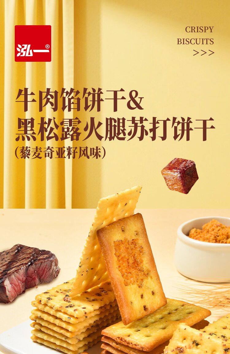 【送礼首选】泓一牛肉馅夹心饼干黑松露苏打年货送礼双拼饼干礼盒 455g双拼饼干【30包】*1盒