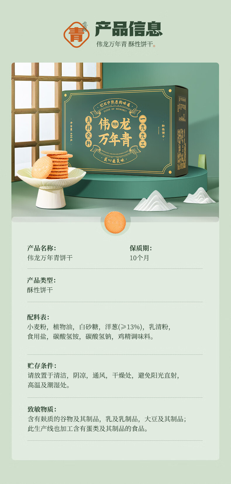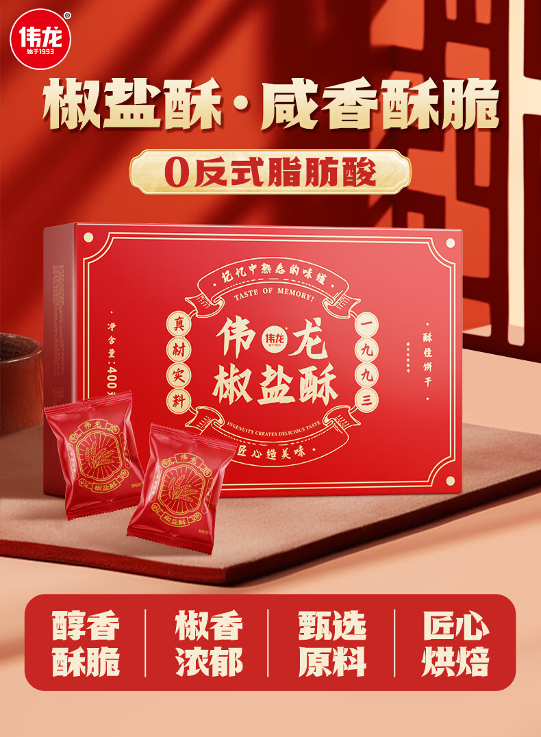伟龙万年青国货怀旧特产零食酥性饼干零食小吃办公室零食400g*1盒T 伟龙万年青+椒盐酥+礼袋