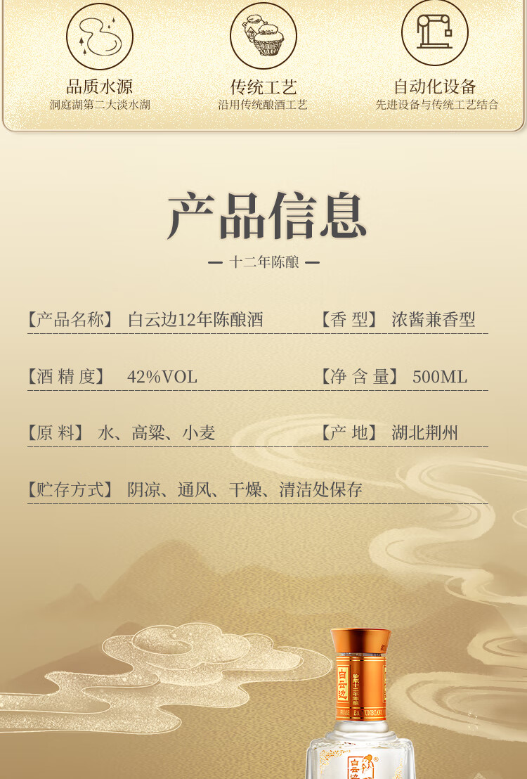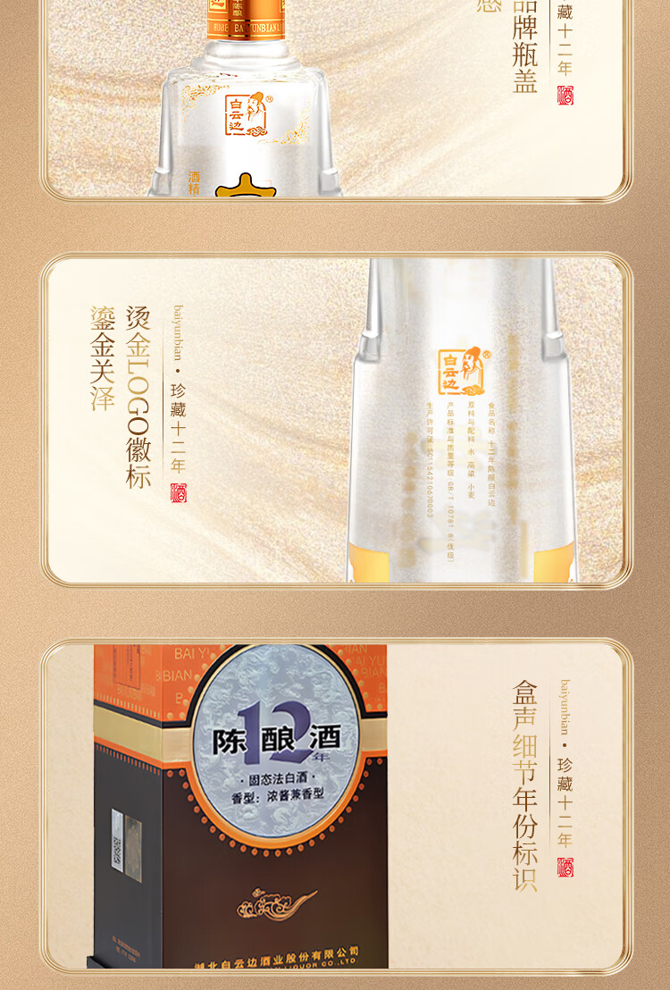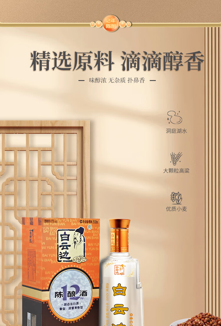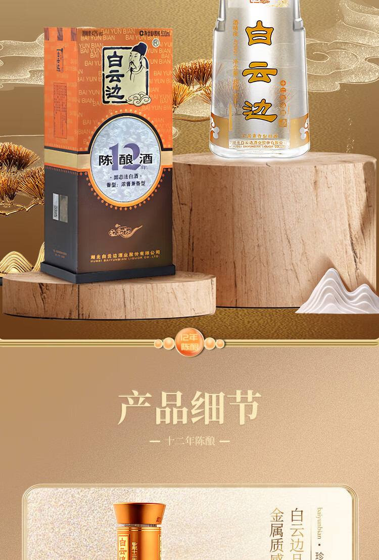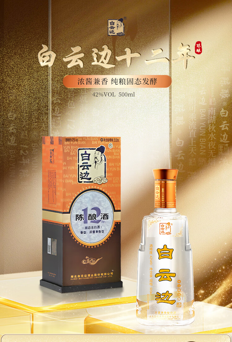 白云边 十二年陈酿 浓酱兼香型白酒 42度 500ml 单瓶装【年货送礼】