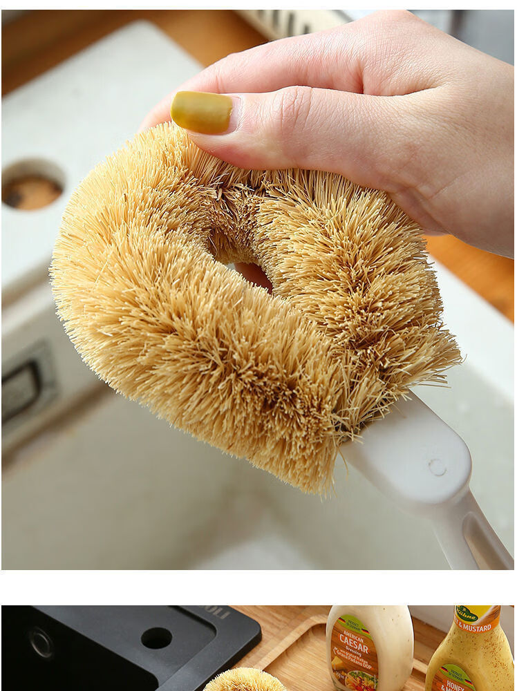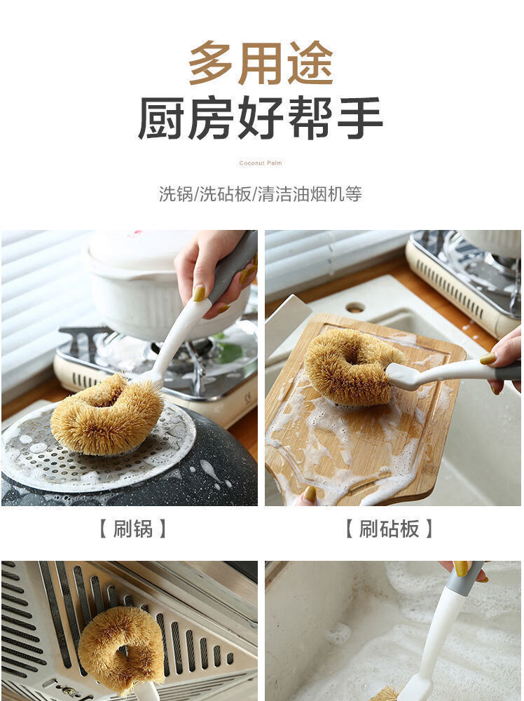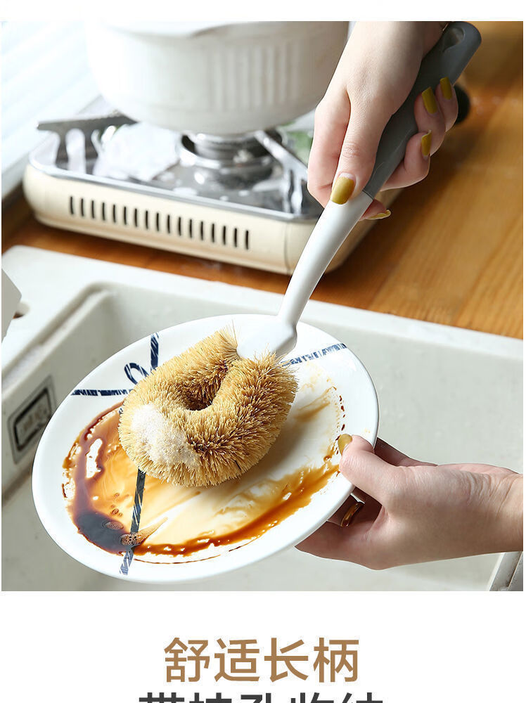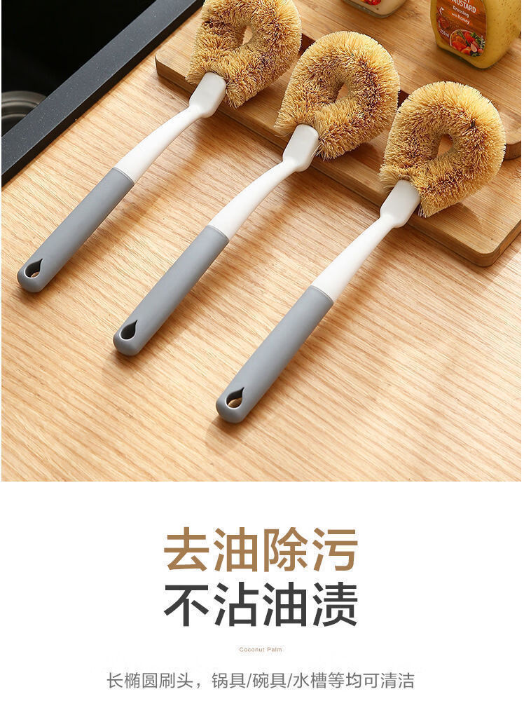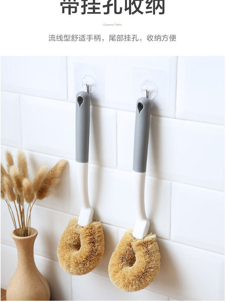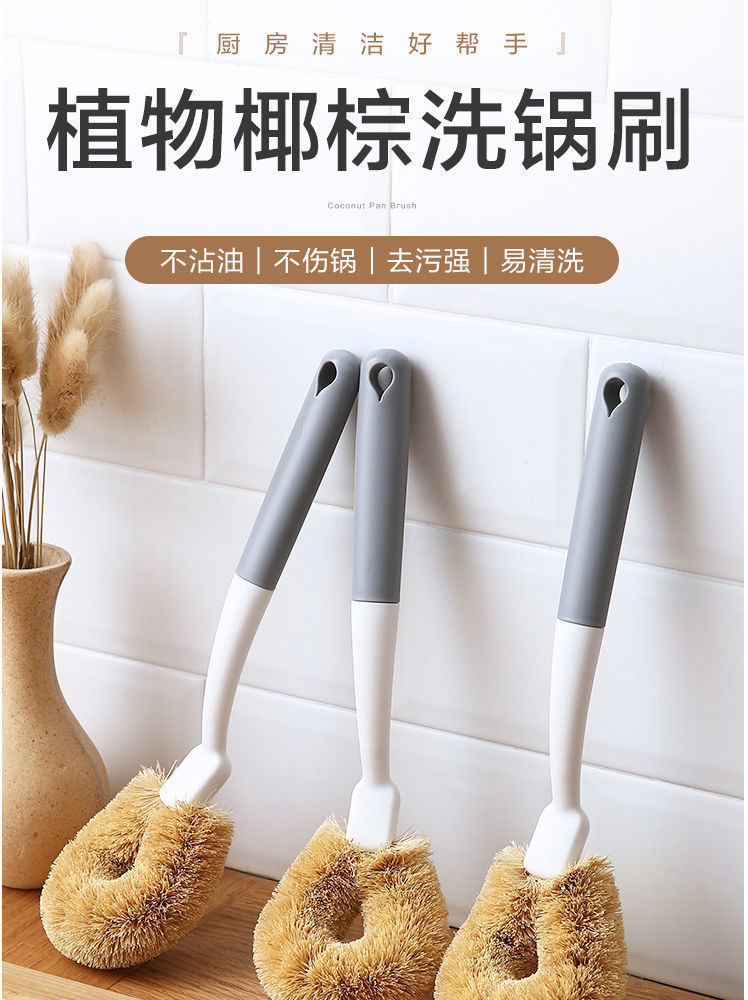 洋臣椰棕刷不沾油锅刷厨房椰棕刷洗锅刷子家用去污长柄不伤锅刷子 椰棕刷【颜色随机】1把