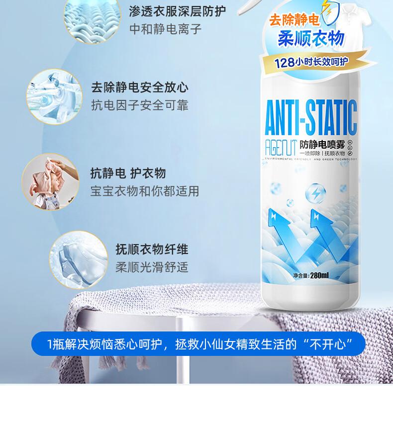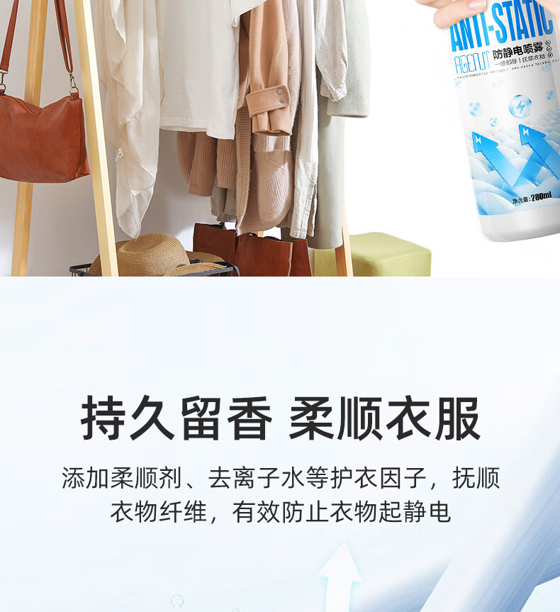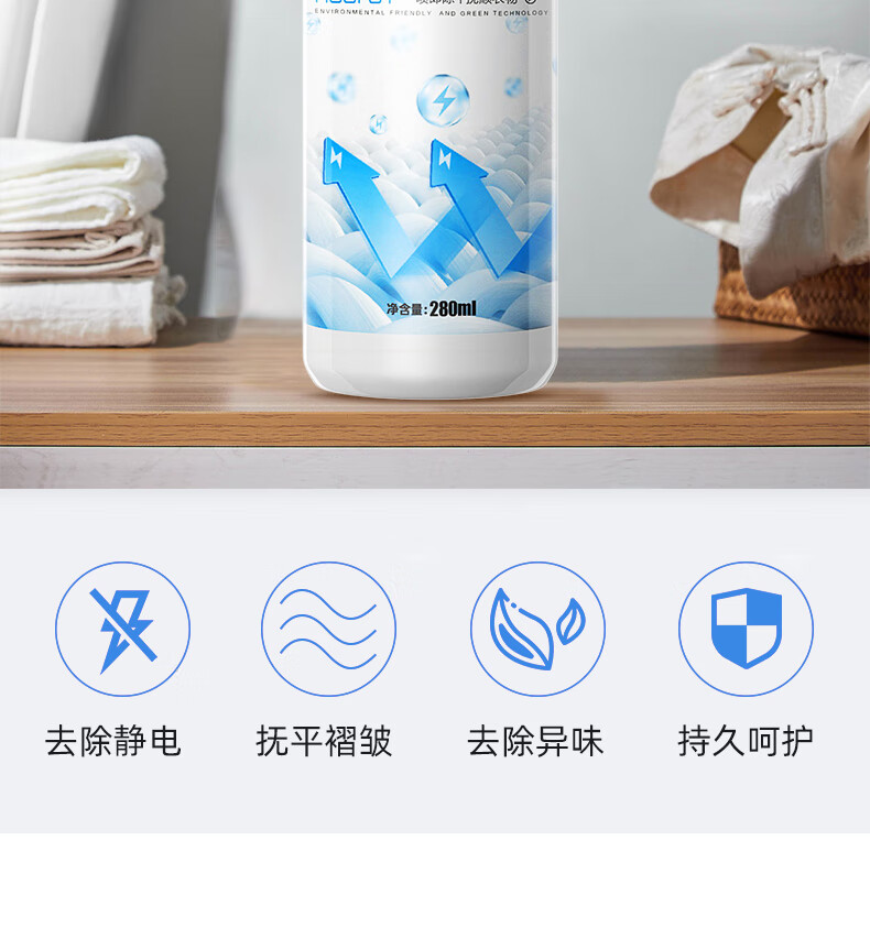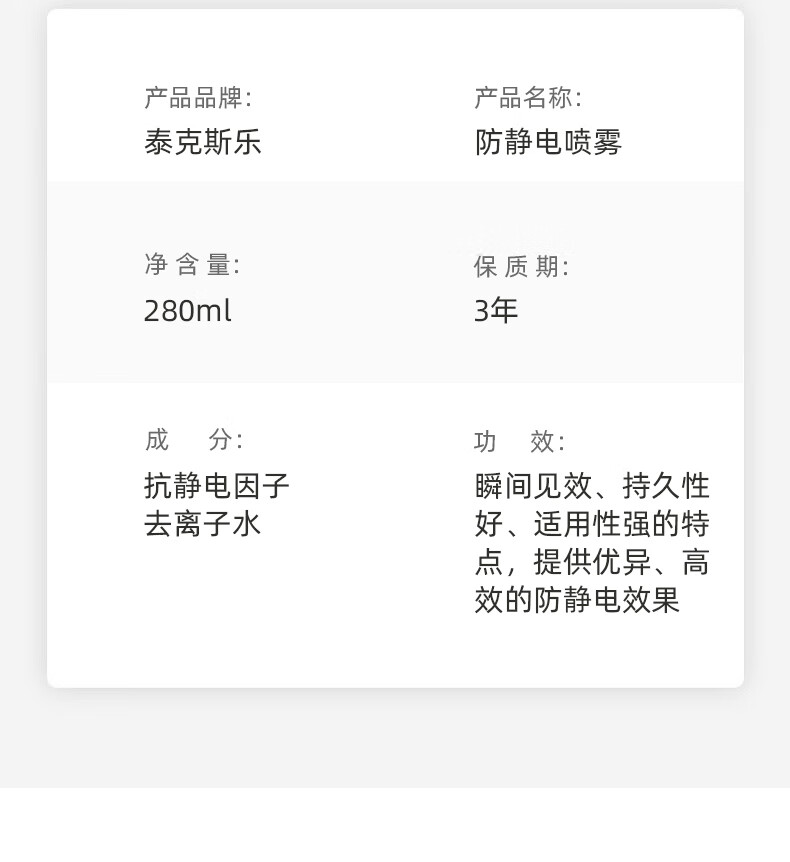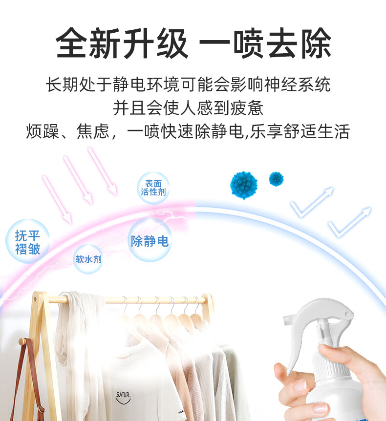 泰克斯乐(Texlabs)防静电喷雾衣服去静电神器除静电衣物柔顺剂头发抗静电 280ml*1