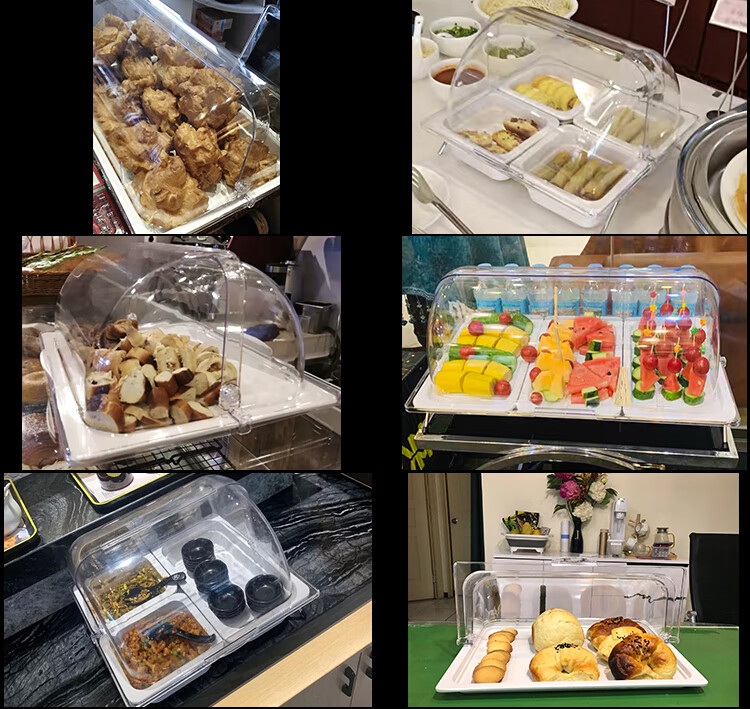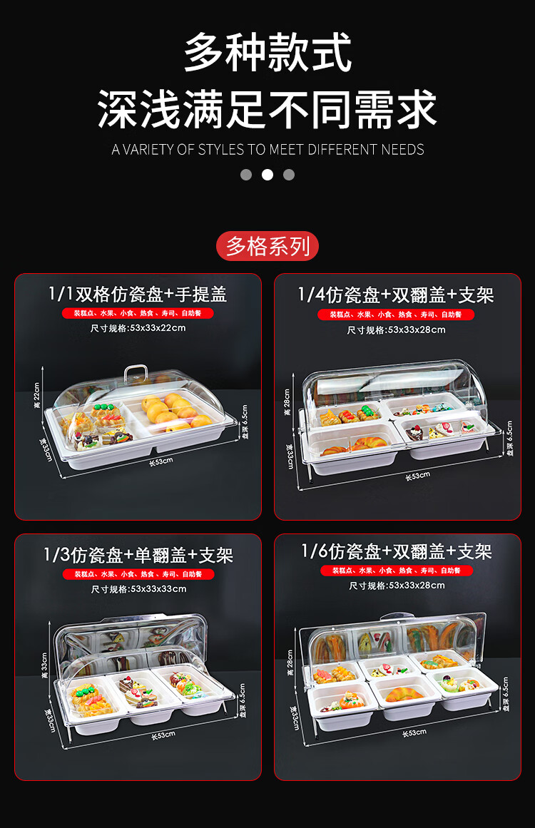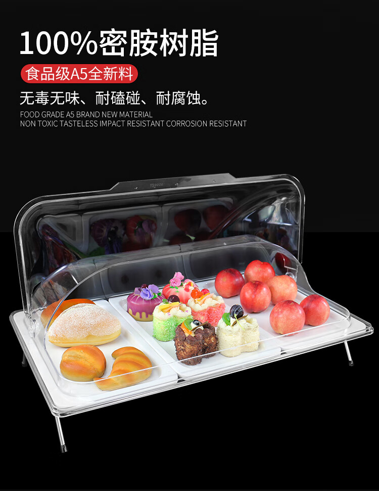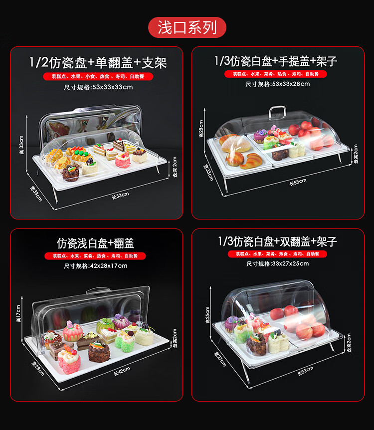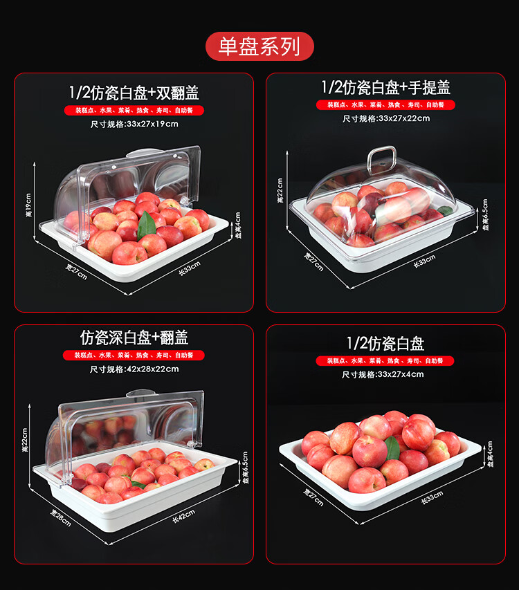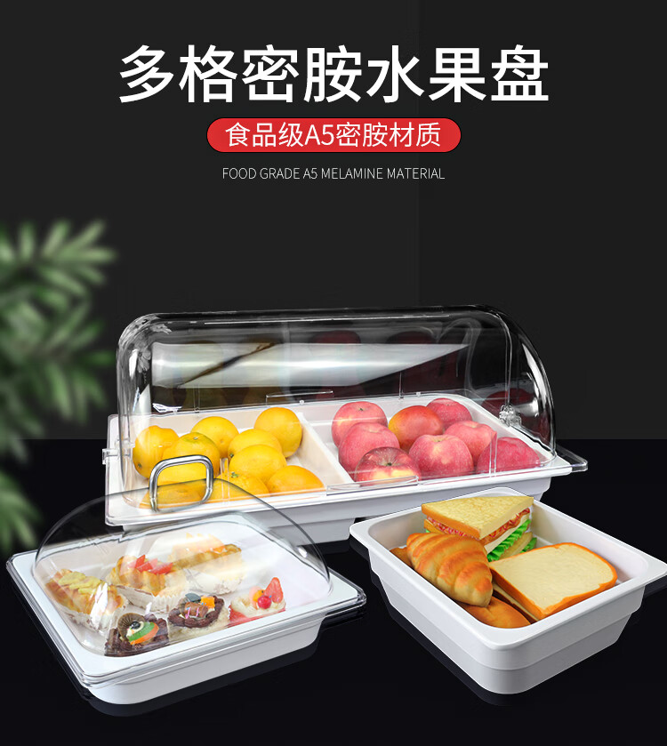 嘉宝日用自助餐甜品展示托盘自助餐点心架多格密胺面包蛋糕防尘保鲜盖果盘 大号白盘深4+手提盖+单层架