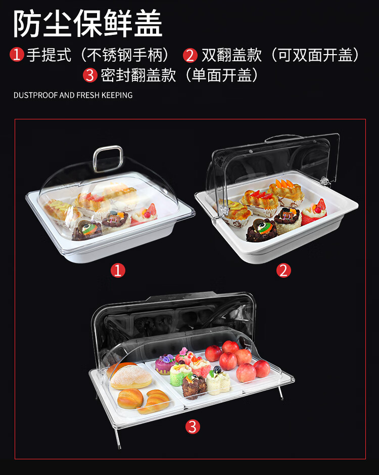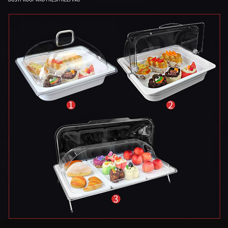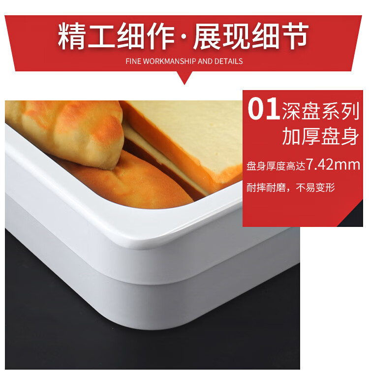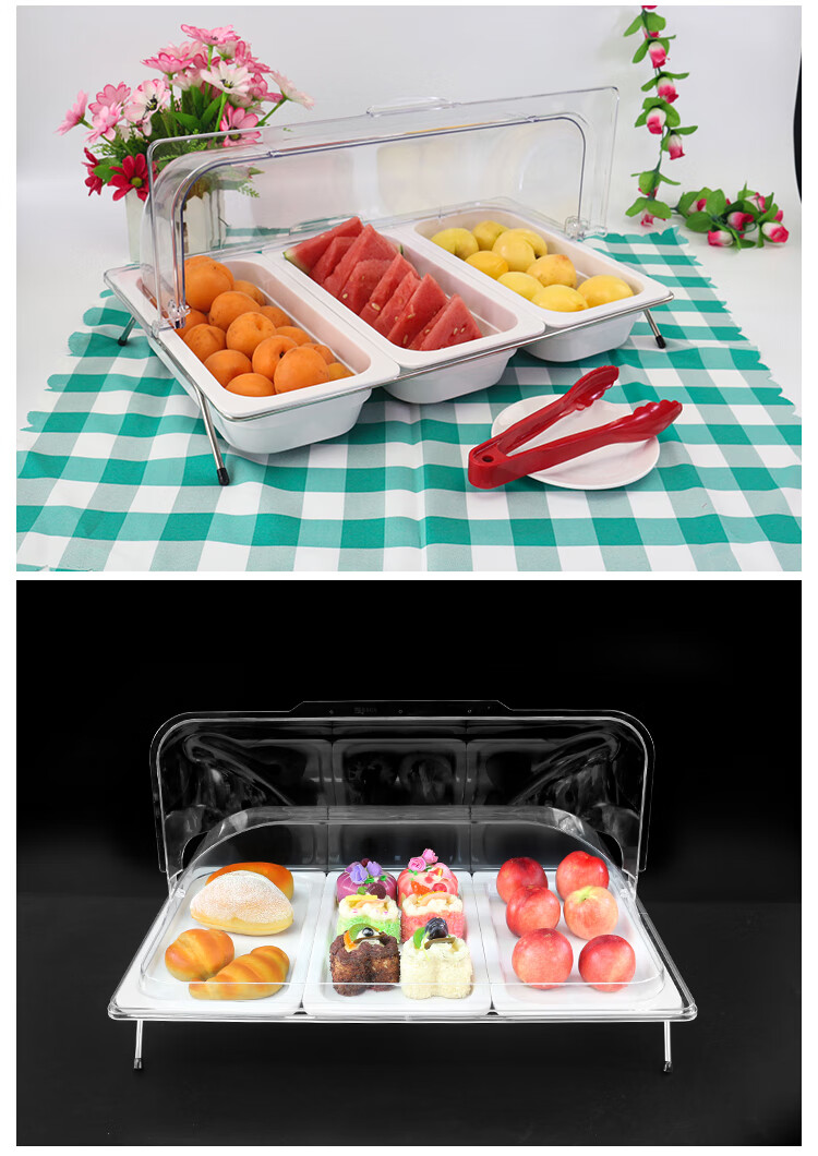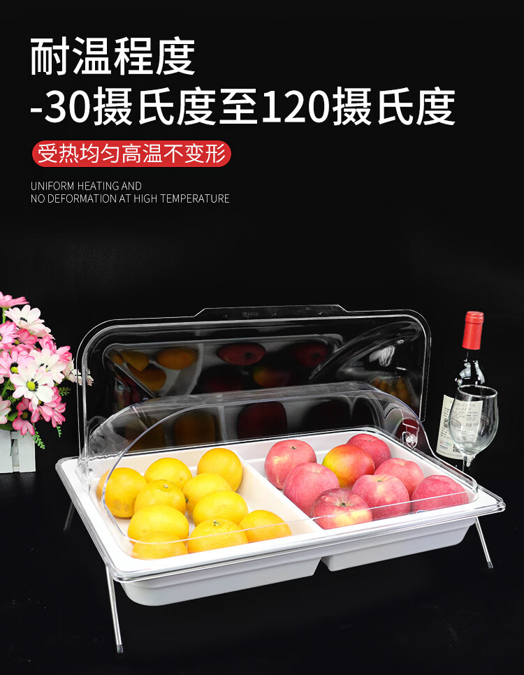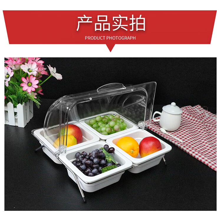 嘉宝日用自助餐甜品展示托盘自助餐点心架多格密胺面包蛋糕防尘保鲜盖果盘 大号白盘深4+手提盖+单层架