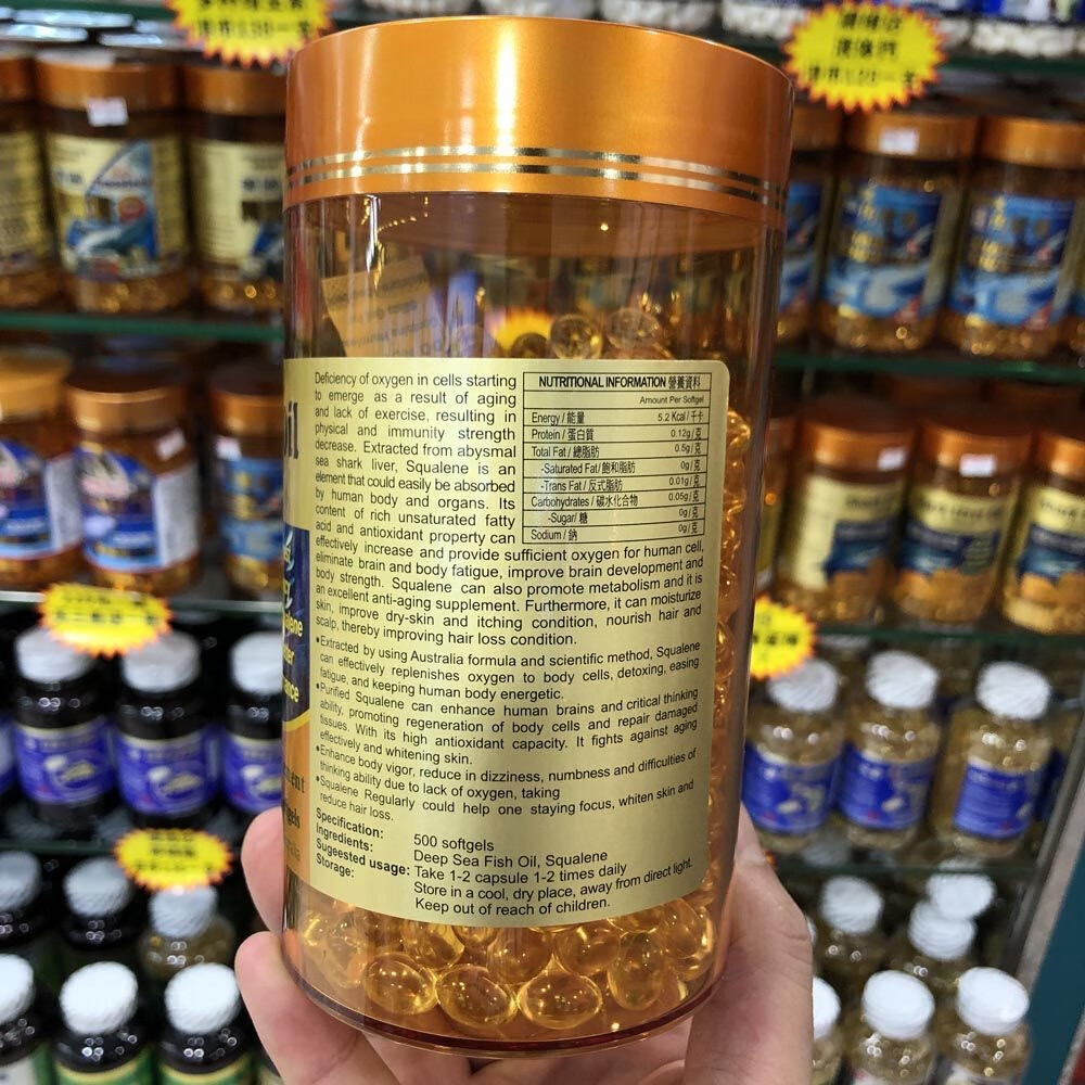 香港大药房香港进口澳洲深海角鲨烯6A鲨鱼肝油500粒修复活化细胞增强抵抗力 一瓶500粒6A