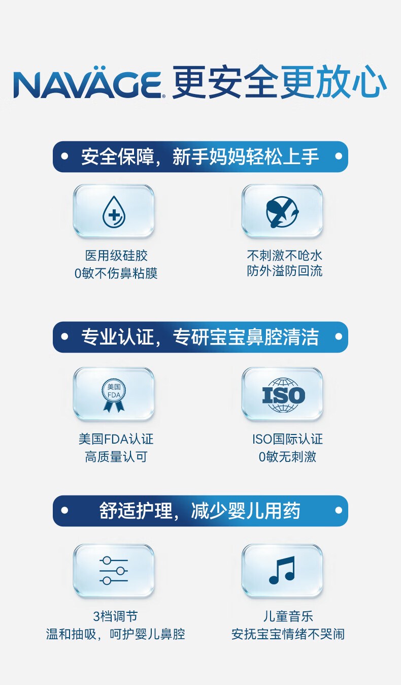 NAVAGE婴幼儿吸鼻器宝宝专用温和鼻塞通鼻便携电动吸鼻器新妈易上手 1台