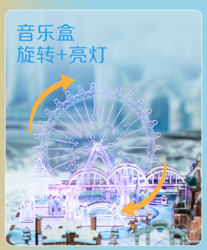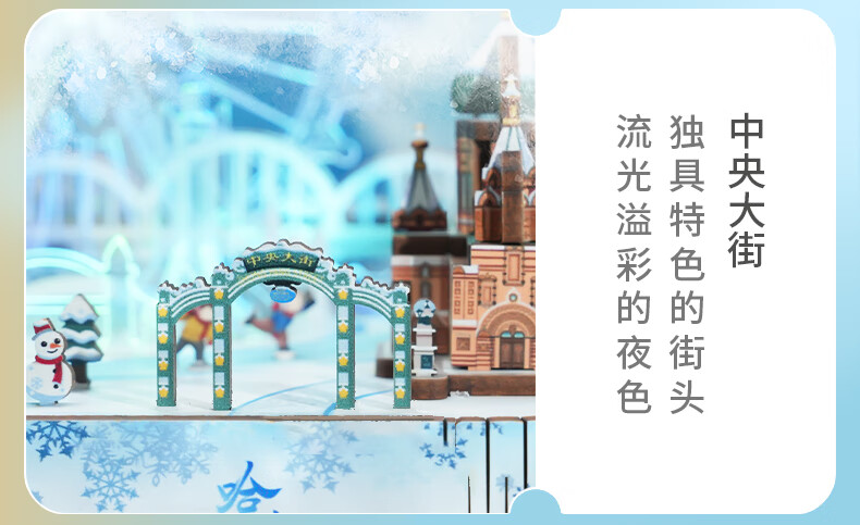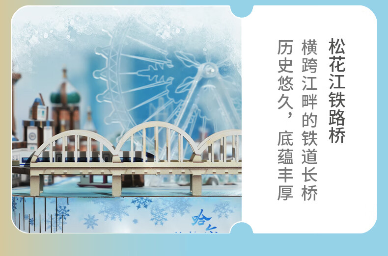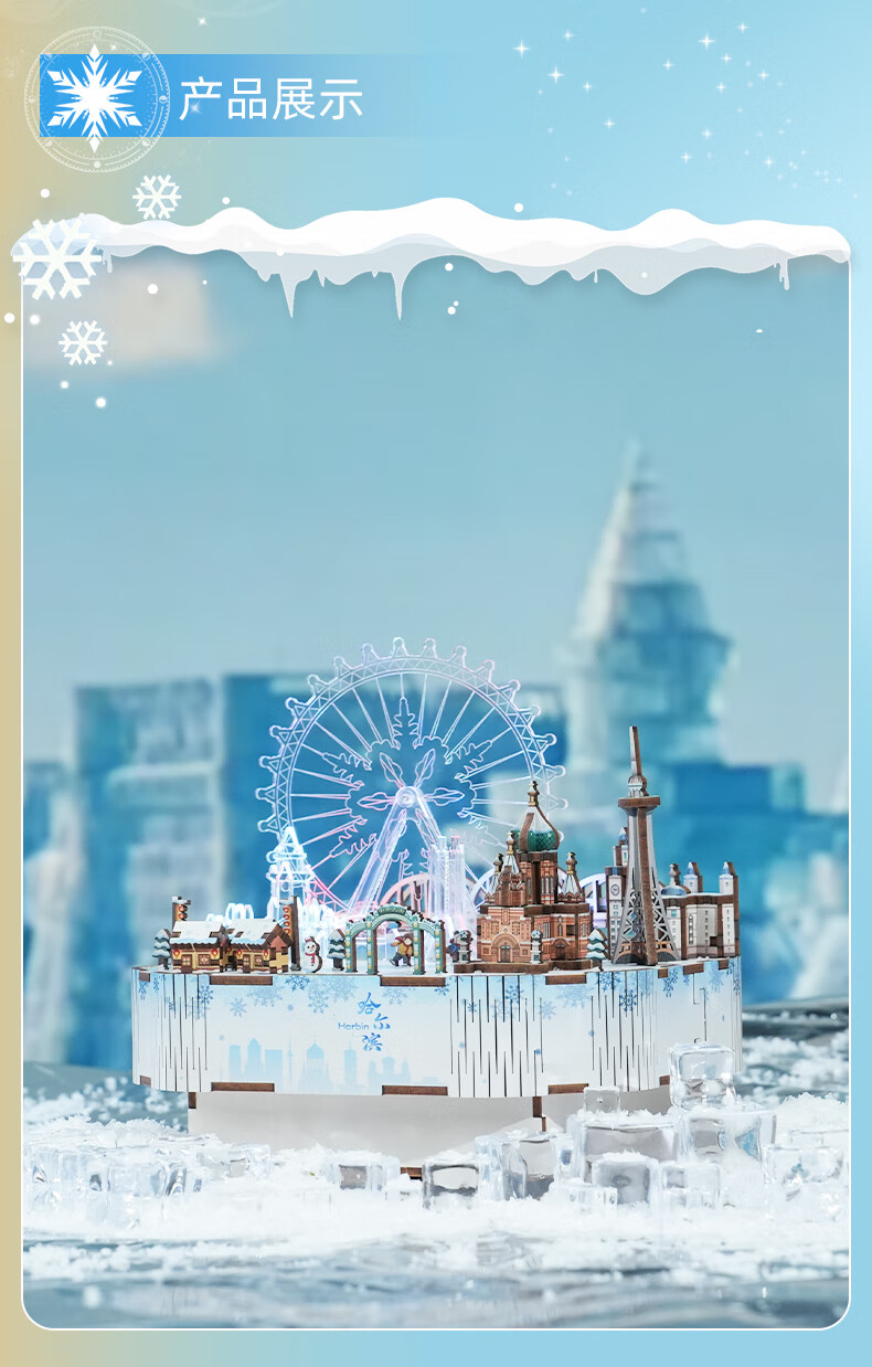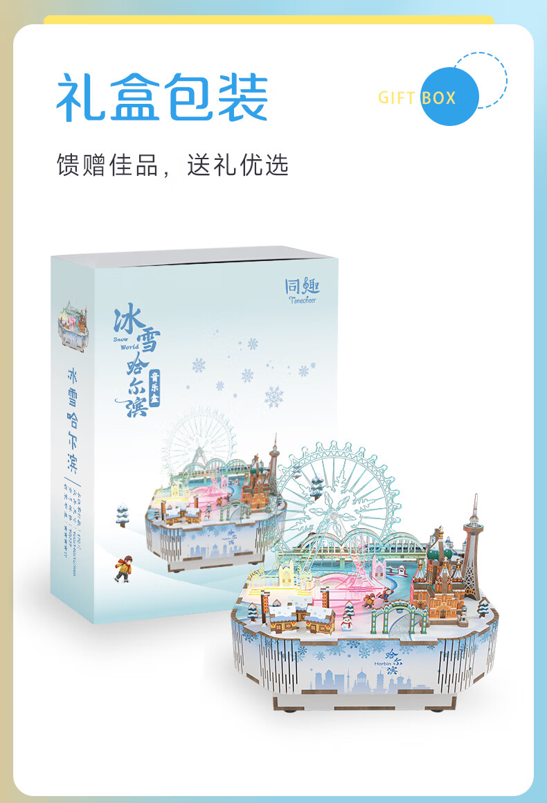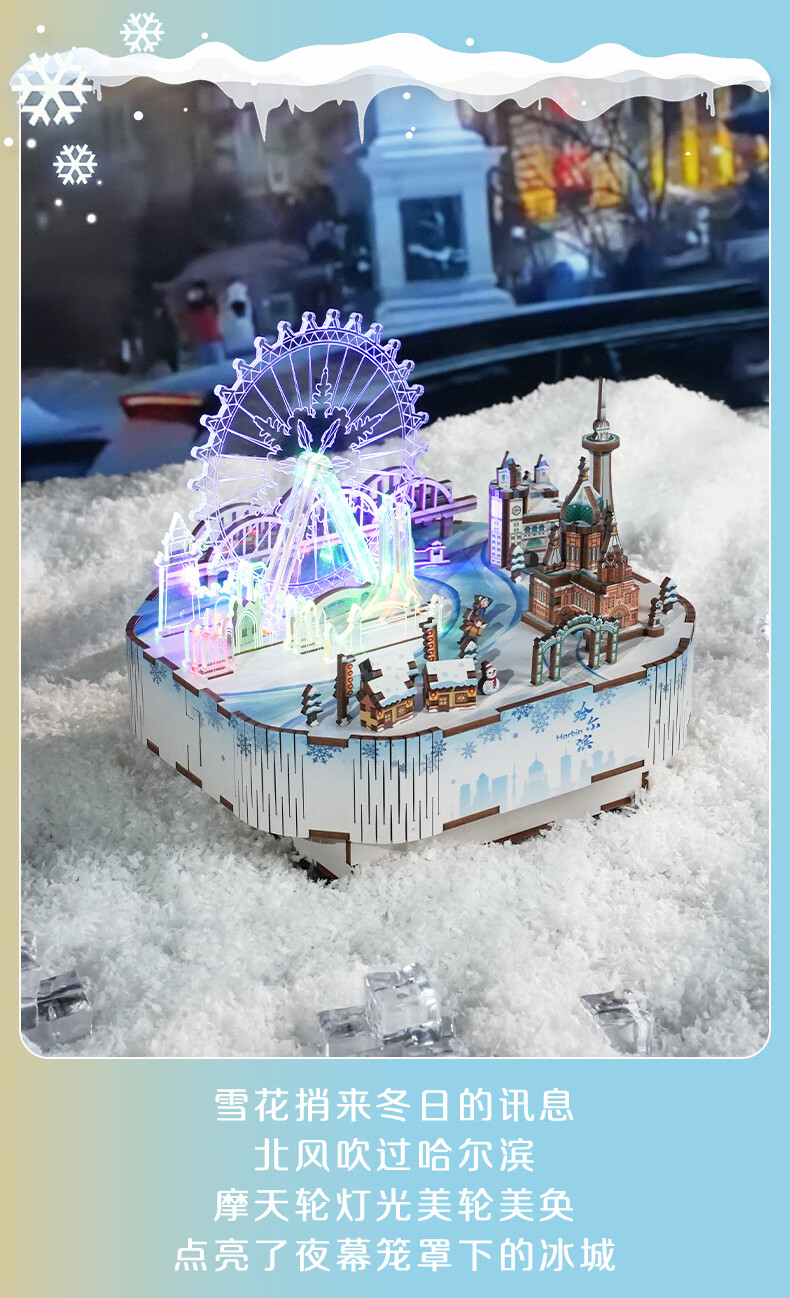 同趣冰雪哈尔滨积木玩具拼装八音盒立体音乐拼图摆件模型新年生日礼物