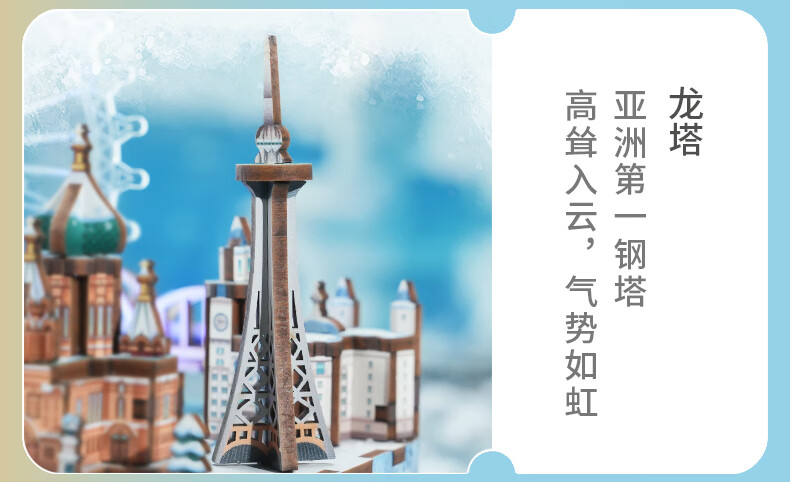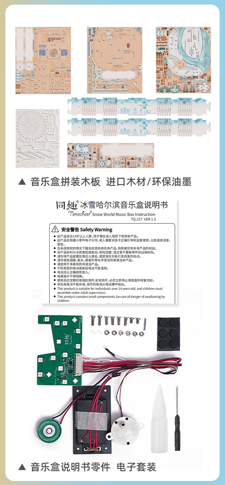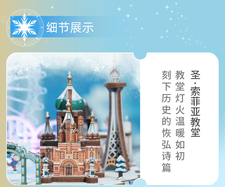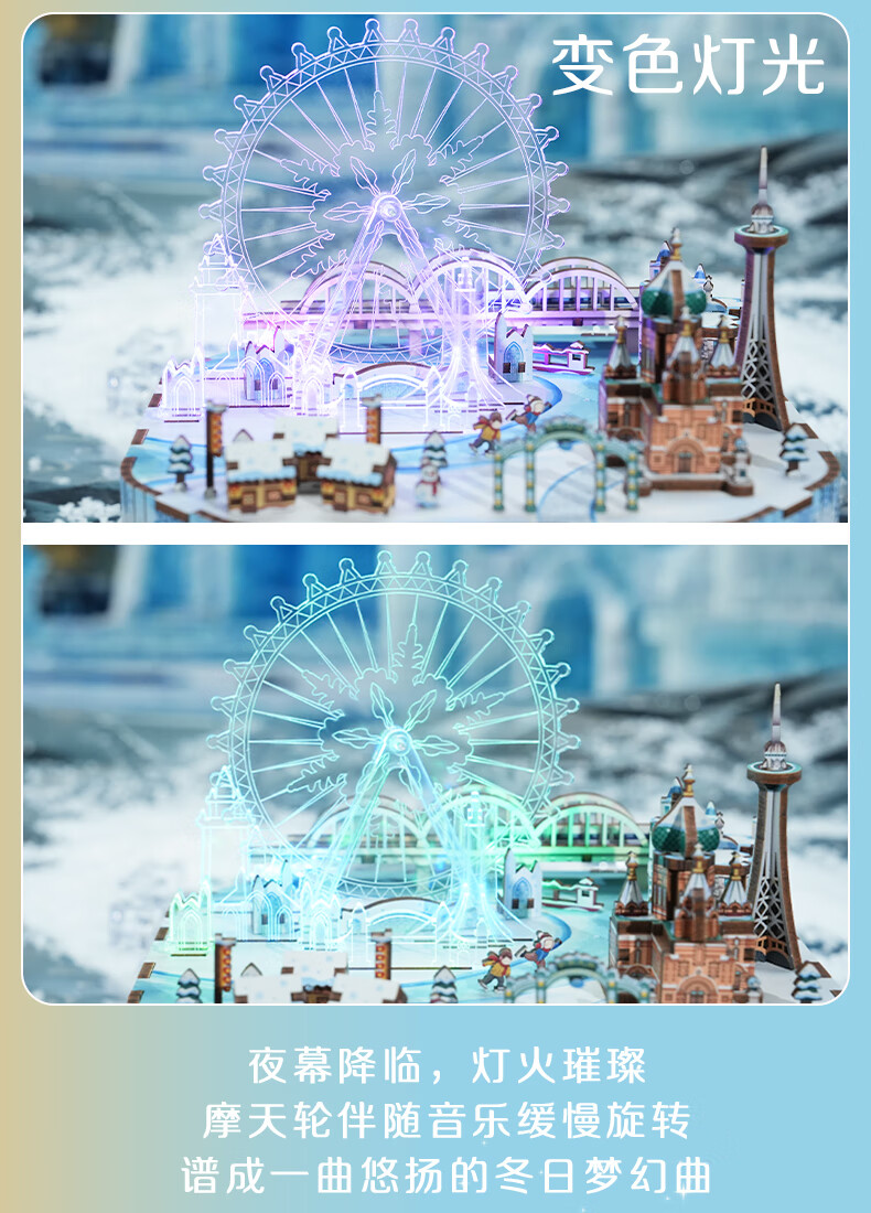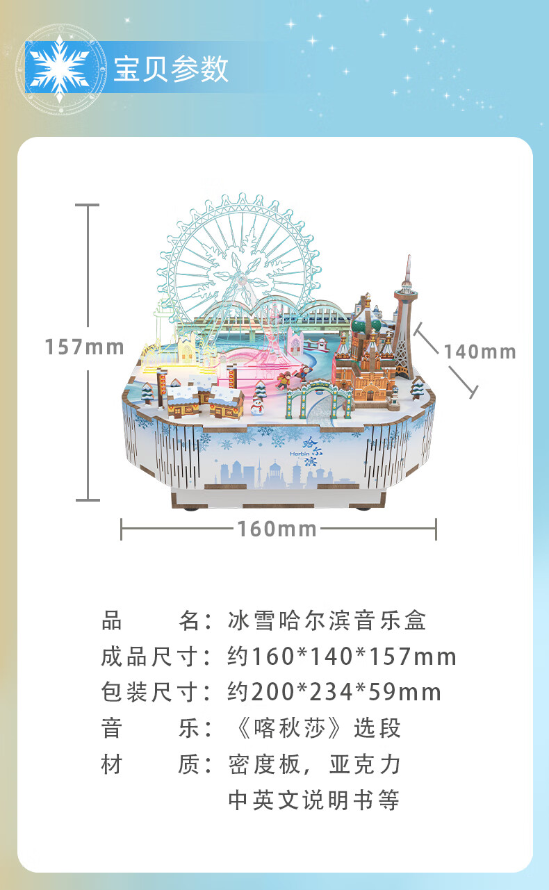 同趣冰雪哈尔滨积木玩具拼装八音盒立体音乐拼图摆件模型新年生日礼物