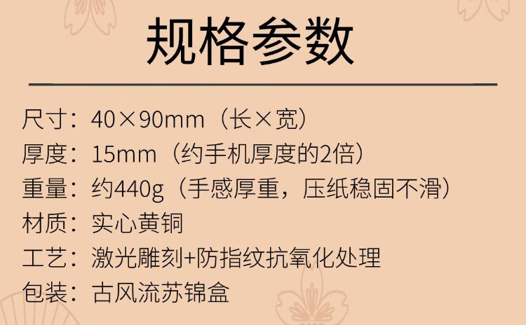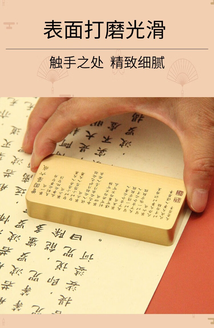 维班 赵孟頫行书心经黄铜镇纸书法国画压纸文房四宝实心金属镇尺 【长版】赵孟頫行书心经黄铜镇纸15X40X90mm