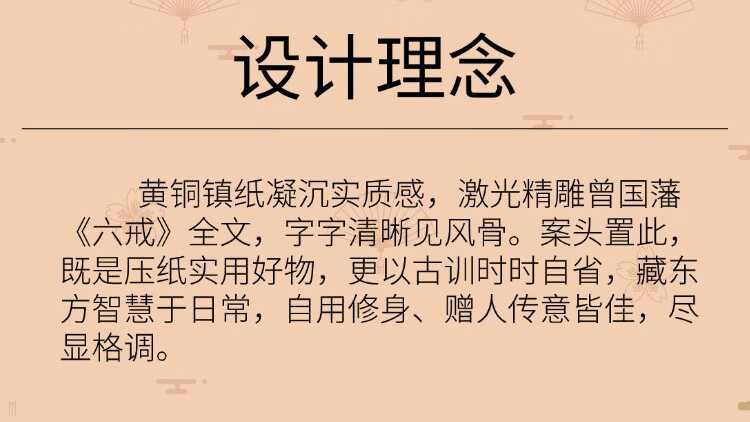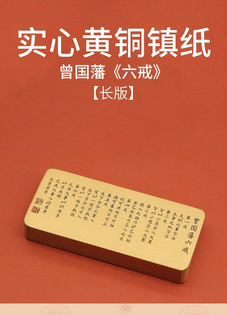 维班曾国藩六戒黄铜镇纸文房文化创意把件礼品刻字定制书法镇尺 曾国藩六戒黄铜镇纸15X40X90mm