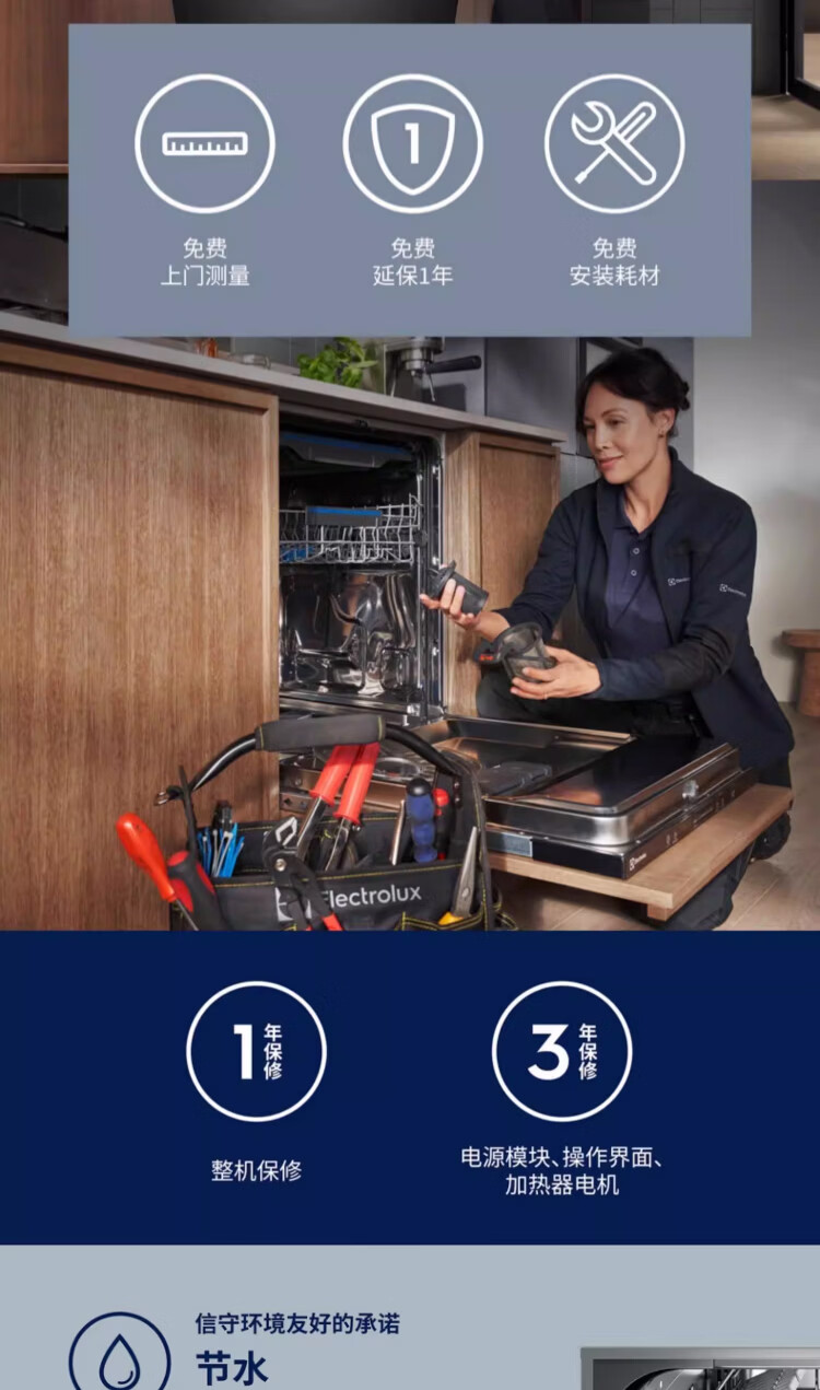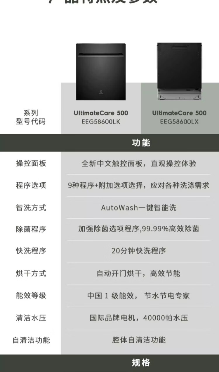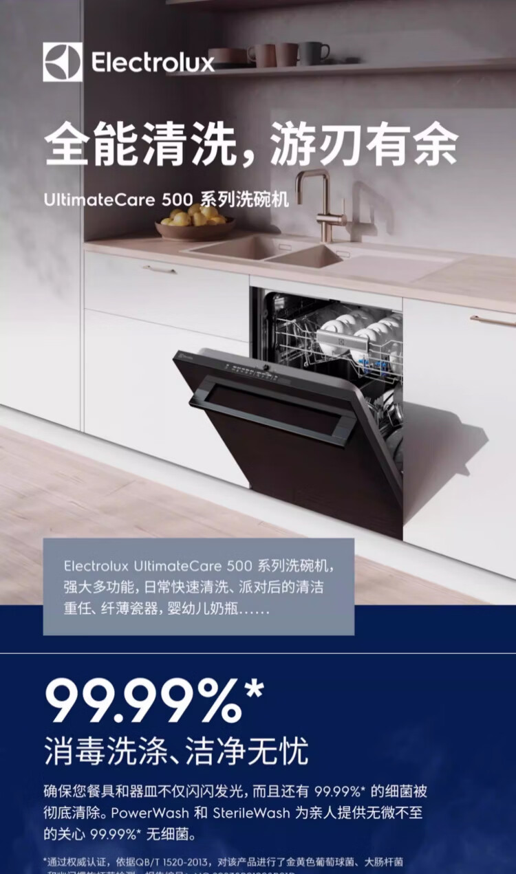 伊莱克斯(Electrolux)嵌入式家用洗碗机 高效除菌13套 EEG58600LK
