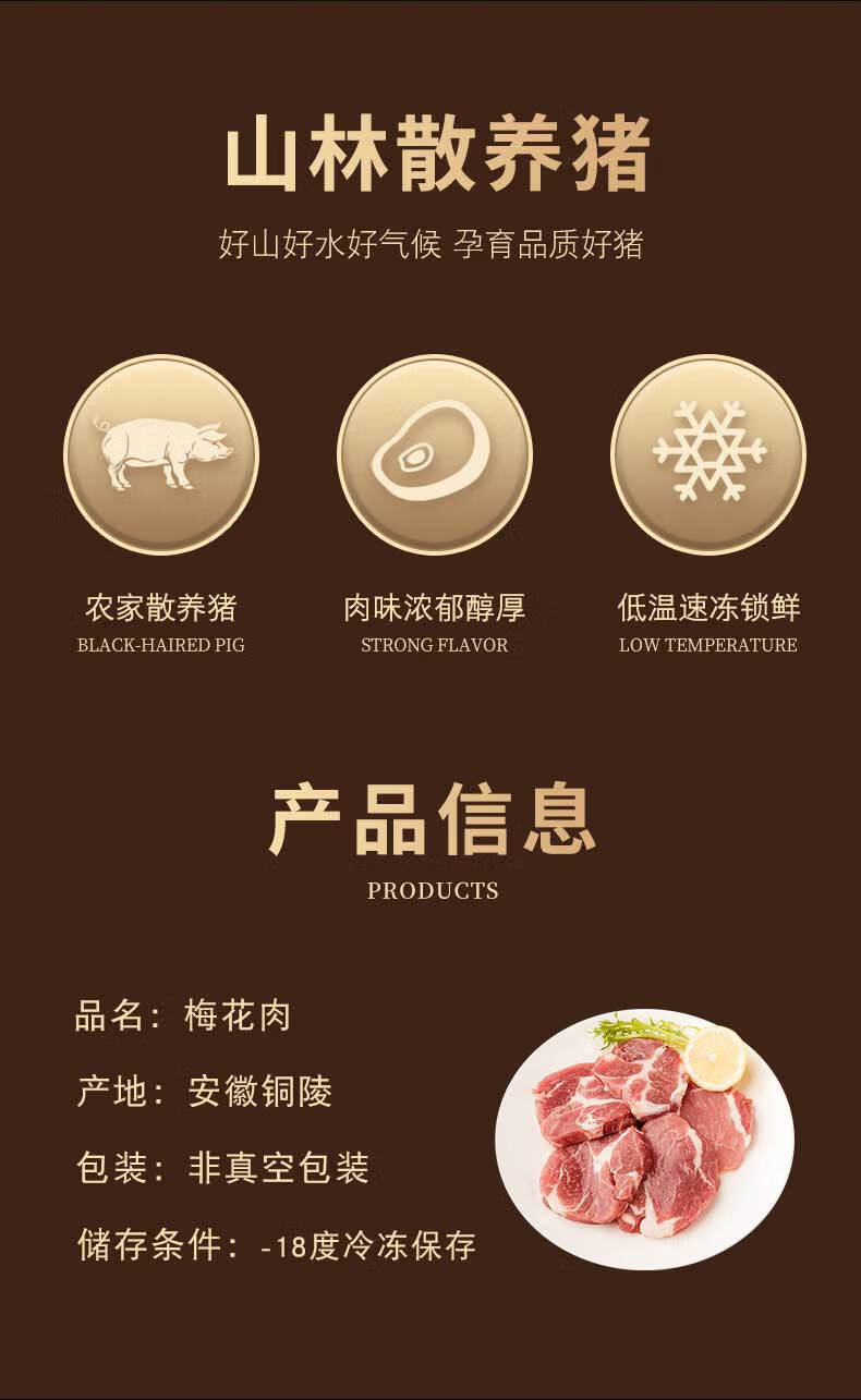 猪梅花肉 新鲜土猪梅肉猪颈肉原切冷冻发货叉烧肉烤肉食材 猪梅花肉4斤