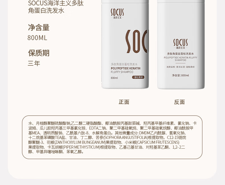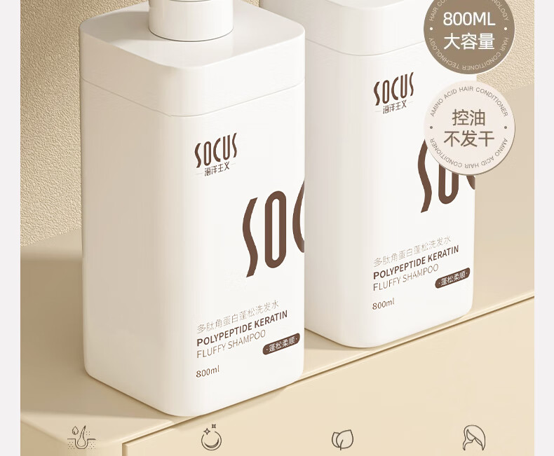 海洋主义 SOCUS洗发水控油去屑止痒男女士持久蓬松久留香洗头膏露官方正品800ml