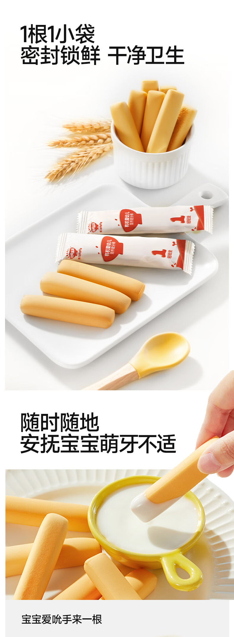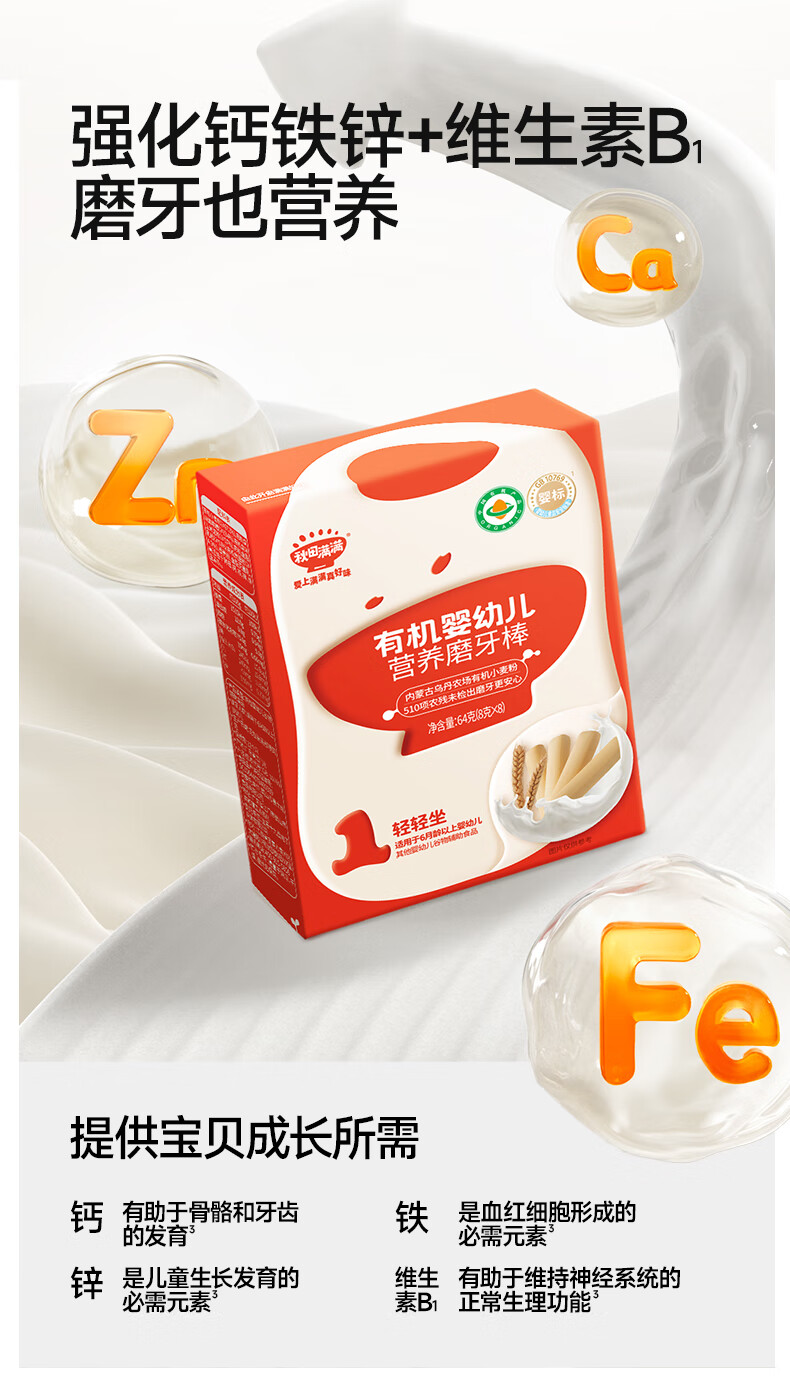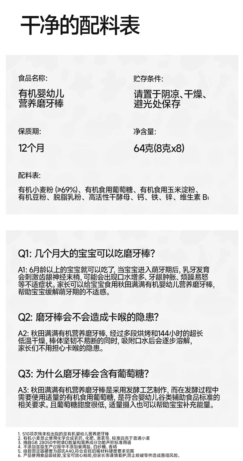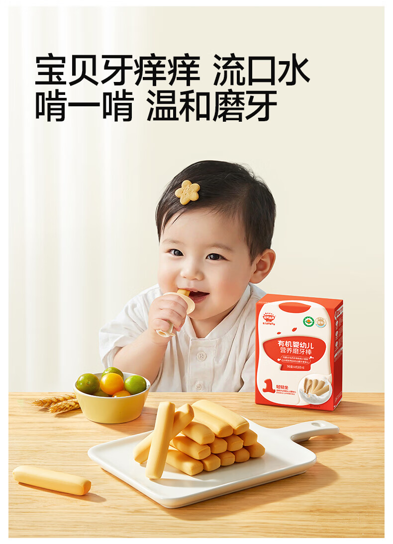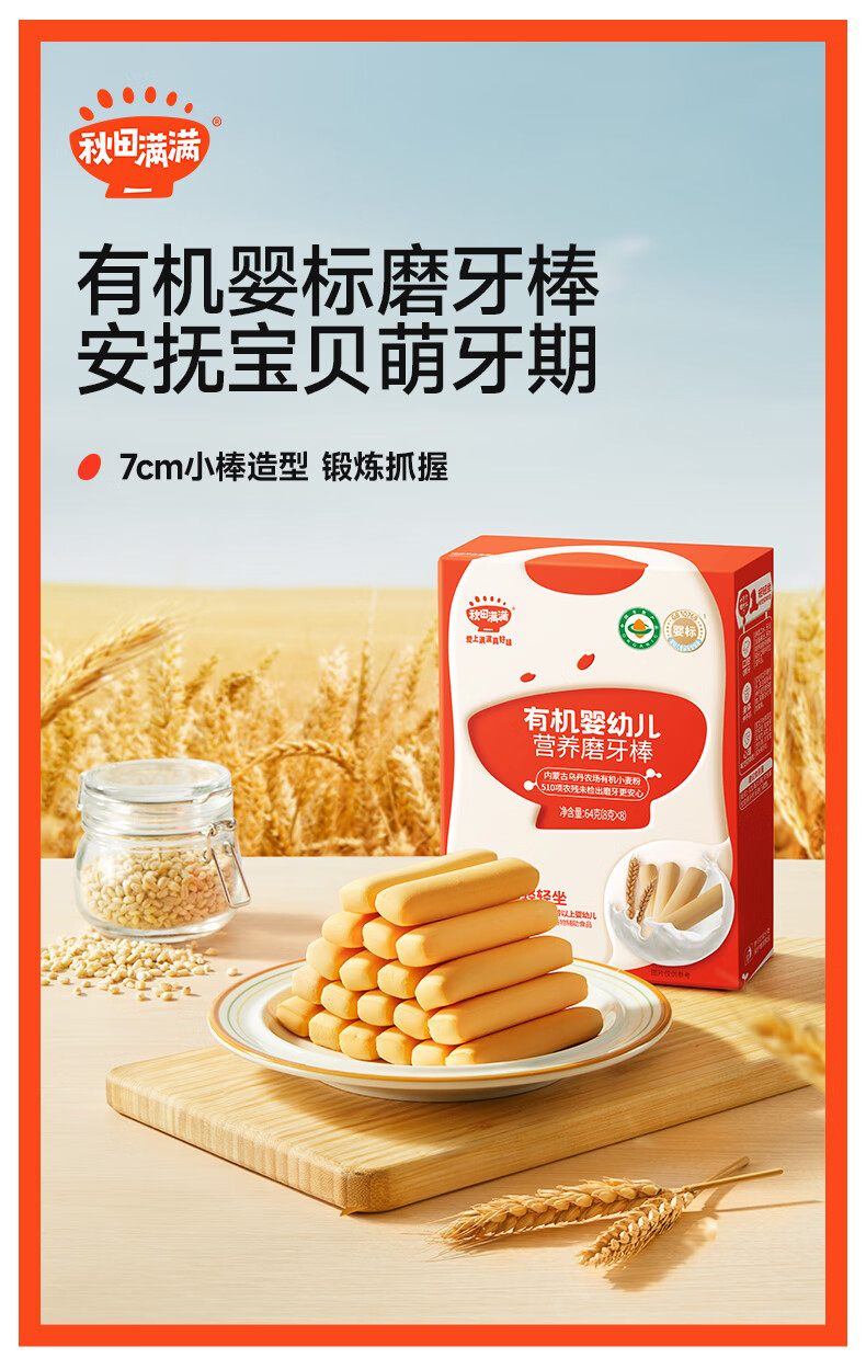 秋田满满 婴幼儿有机磨牙棒辅食宝宝零食出牙饼干婴儿6个月以上零食64g