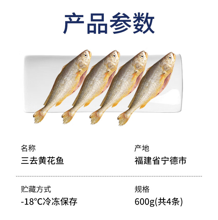 黄小渔宁德三去黄花鱼600g/4条大黄鱼生鲜海鲜水产深海鱼类烧烤年货送礼