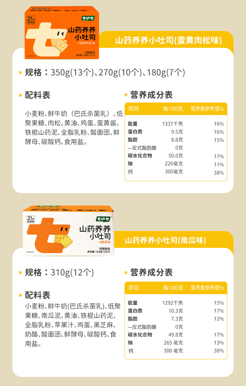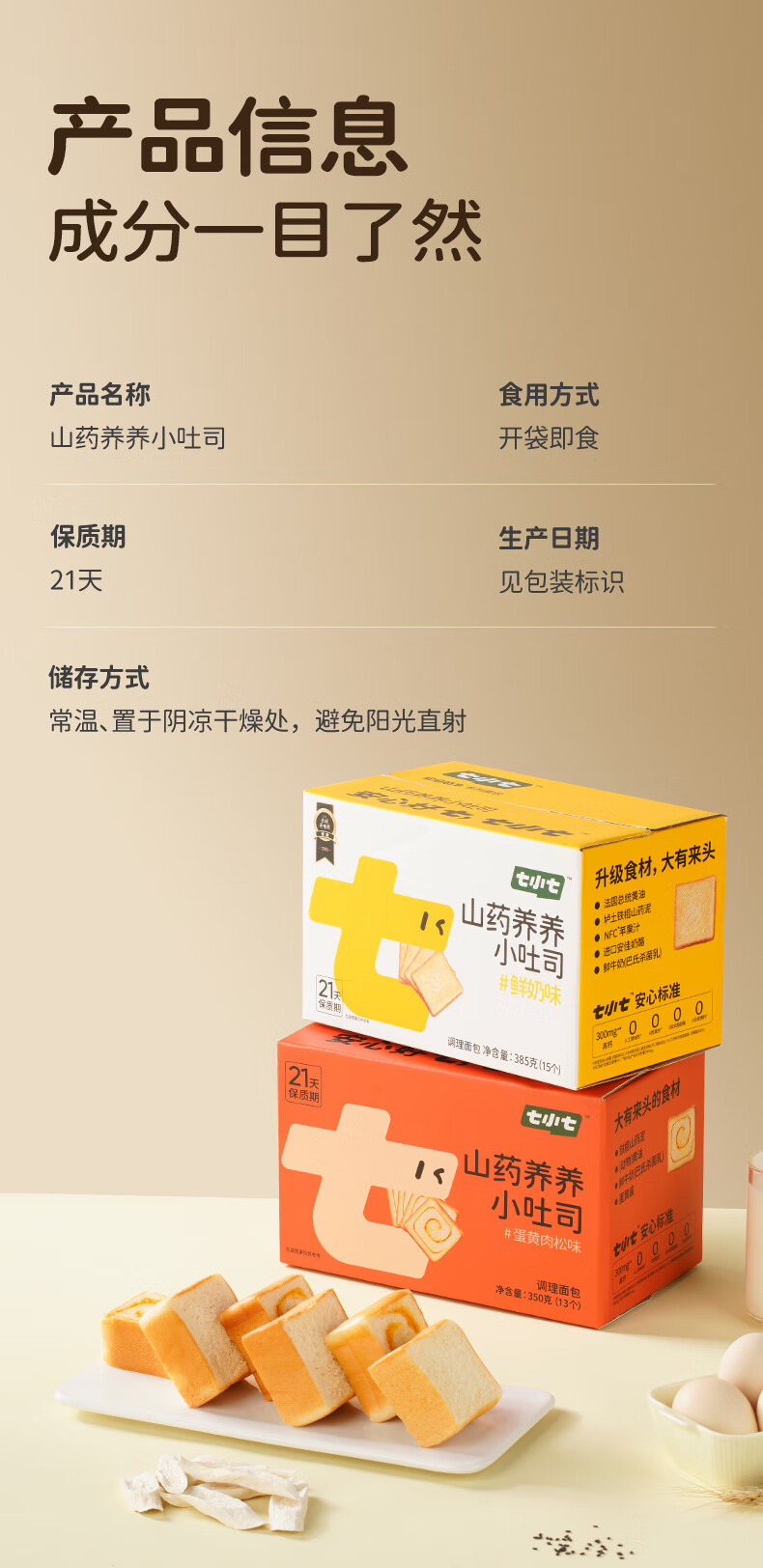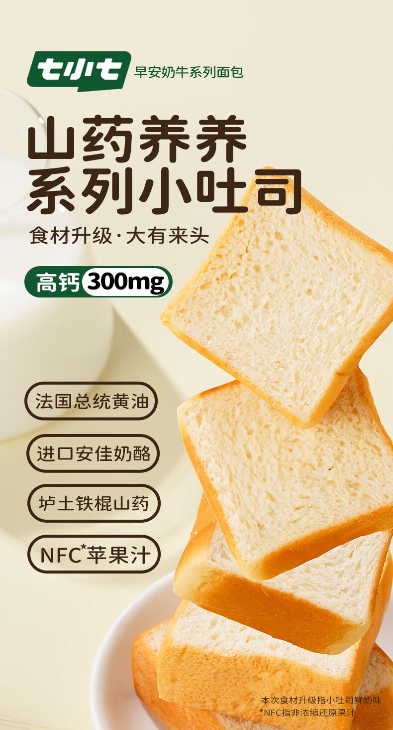 七小七宝宝山药养养小吐司厚切面包营养早餐儿童健康零食 源头直发385g