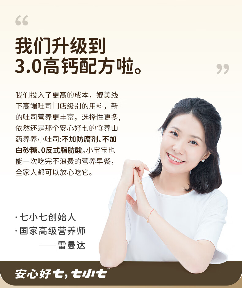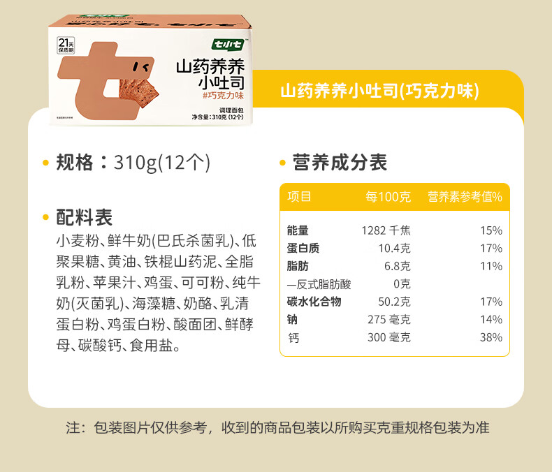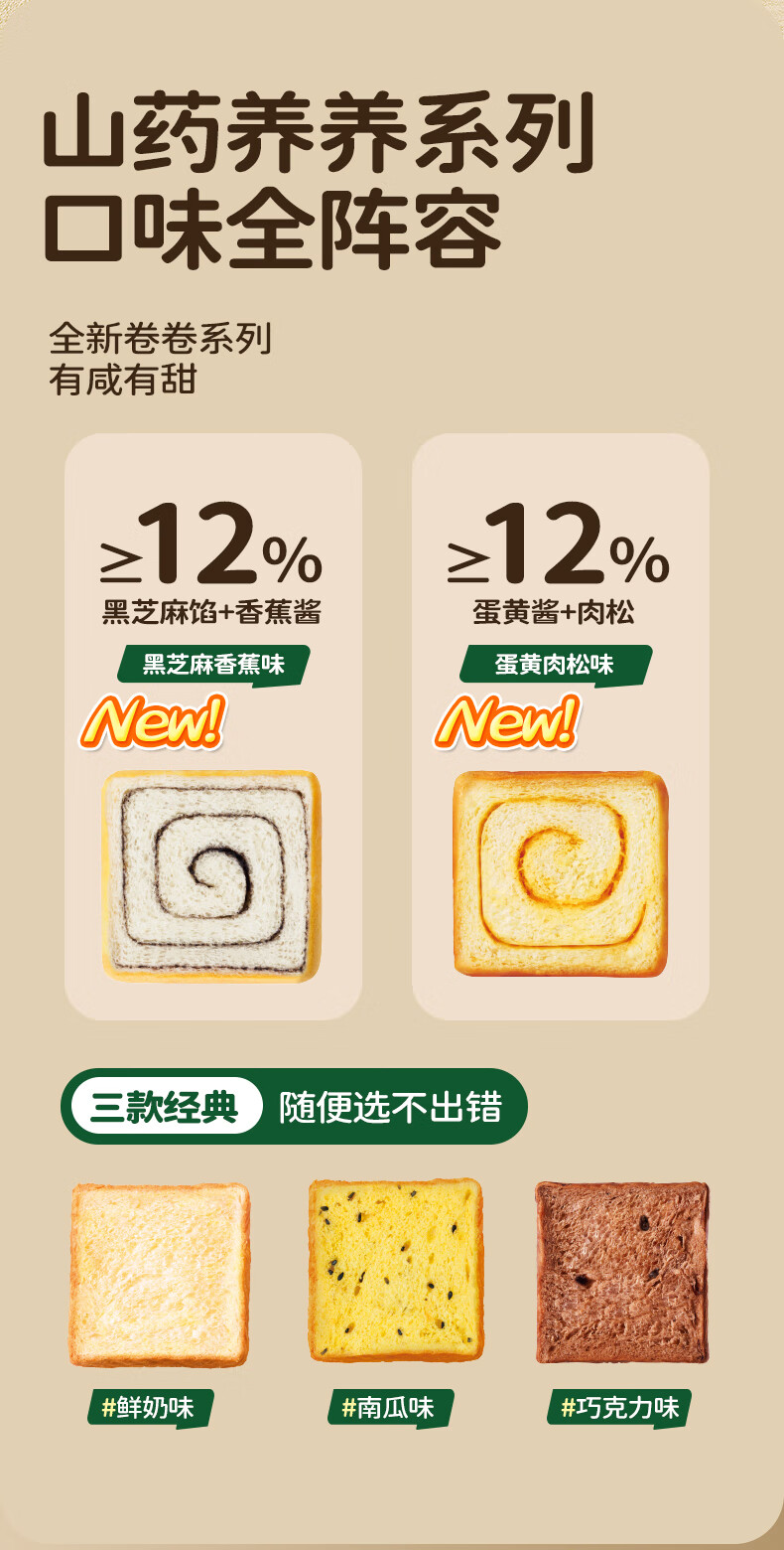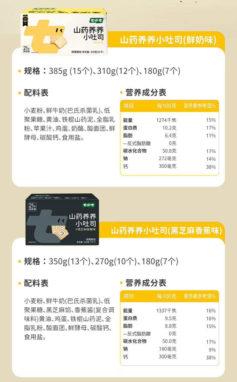 七小七宝宝山药养养小吐司厚切面包营养早餐儿童健康零食 源头直发385g