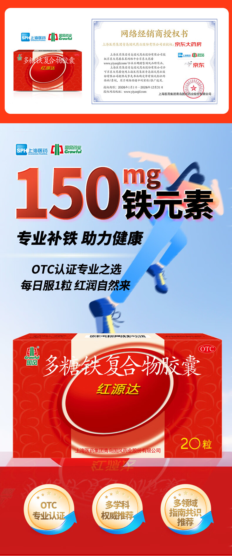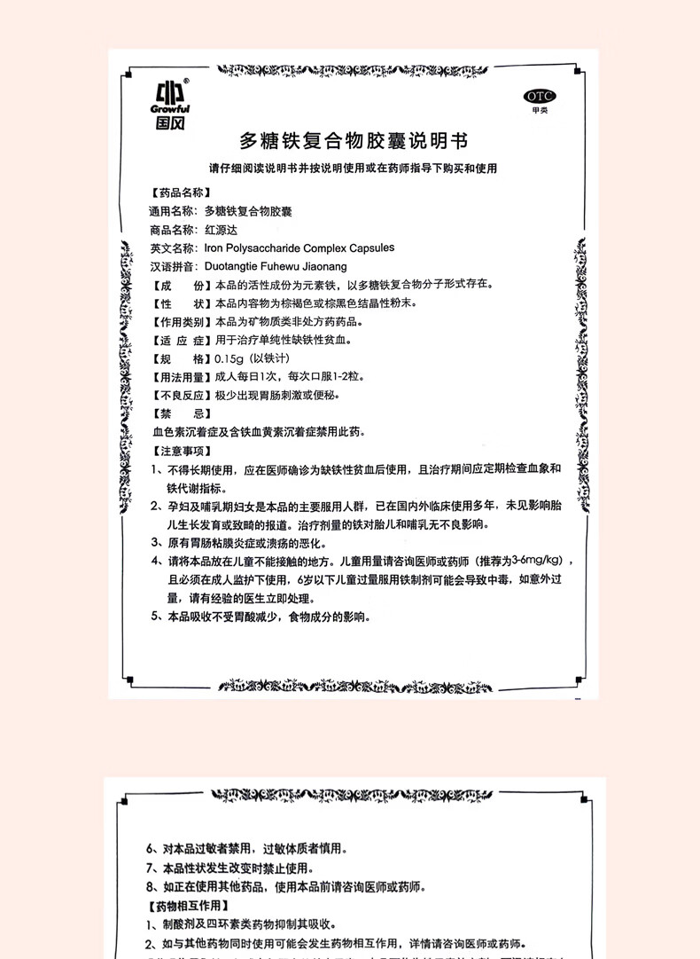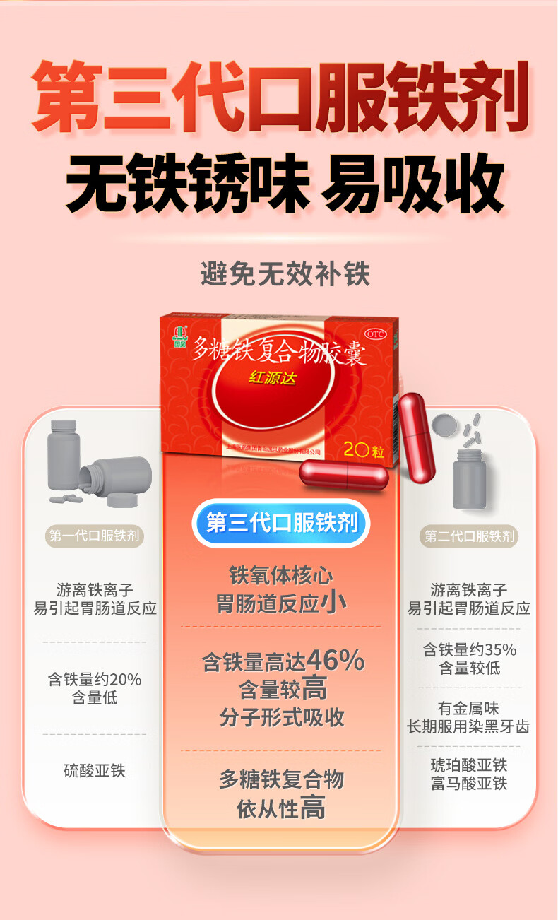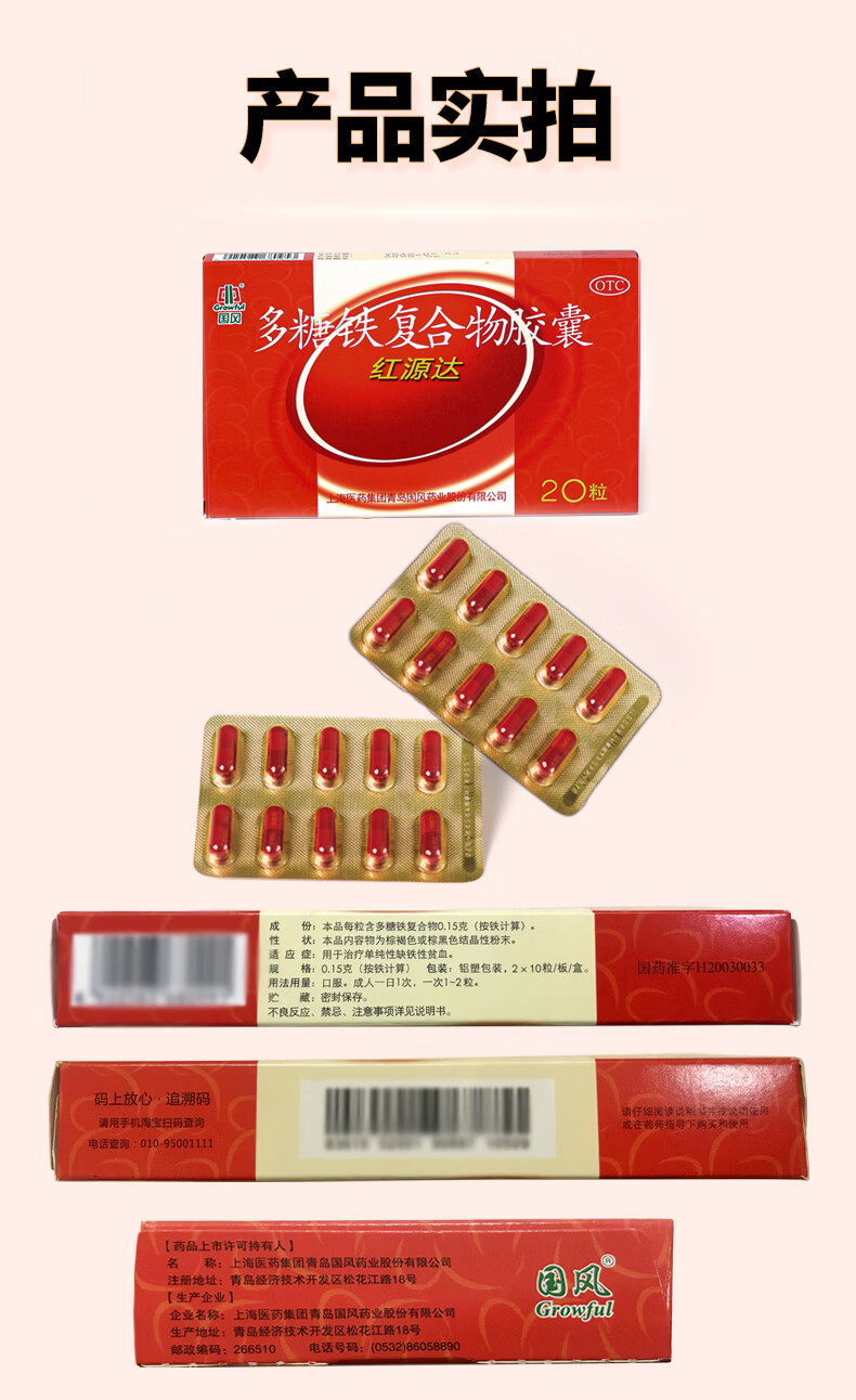 国风 红源达 多糖铁复合物胶囊 0.15g*10粒*2板 女性贫血补血药补铁剂铁片缺铁性贫血经期补铁年货节