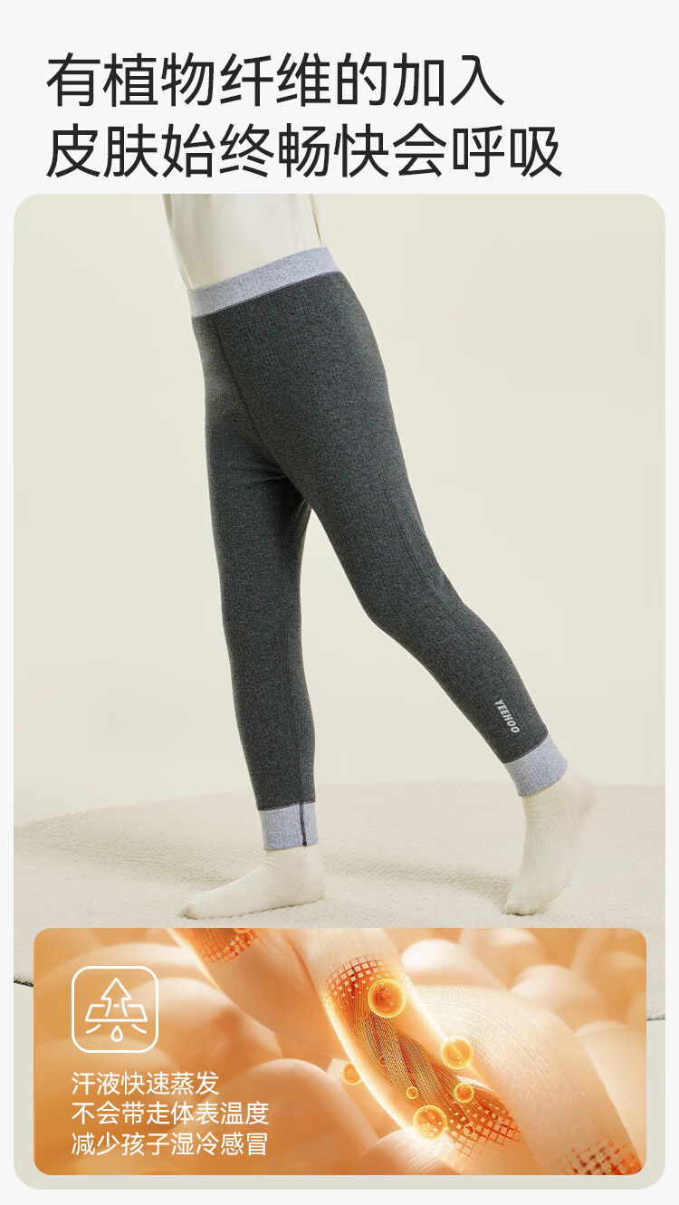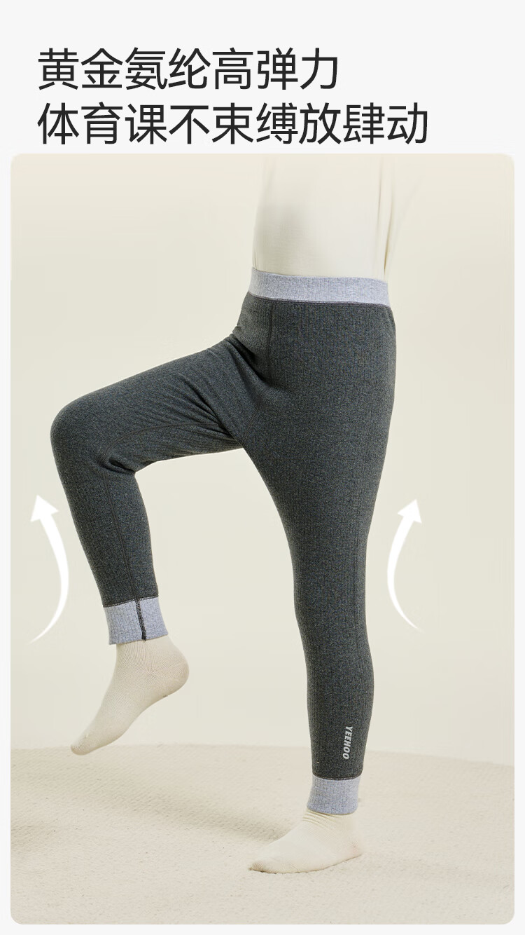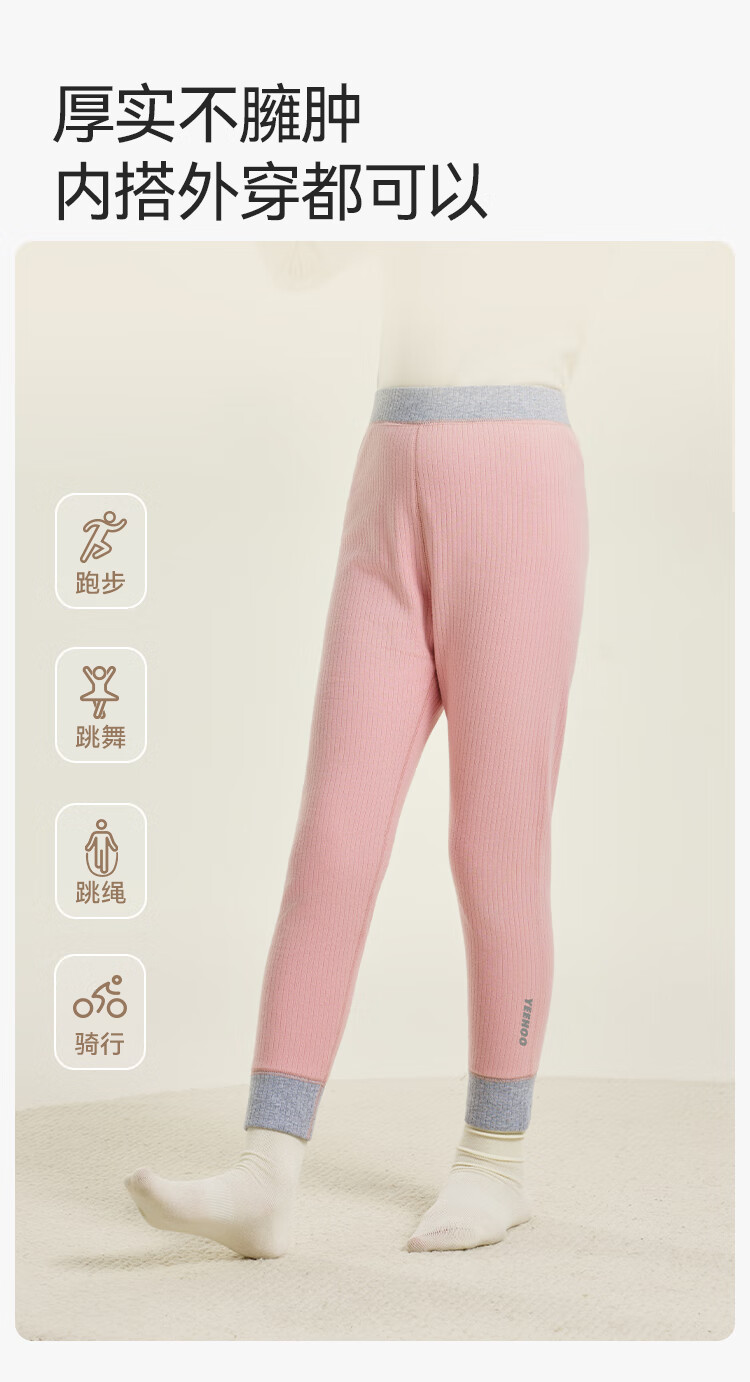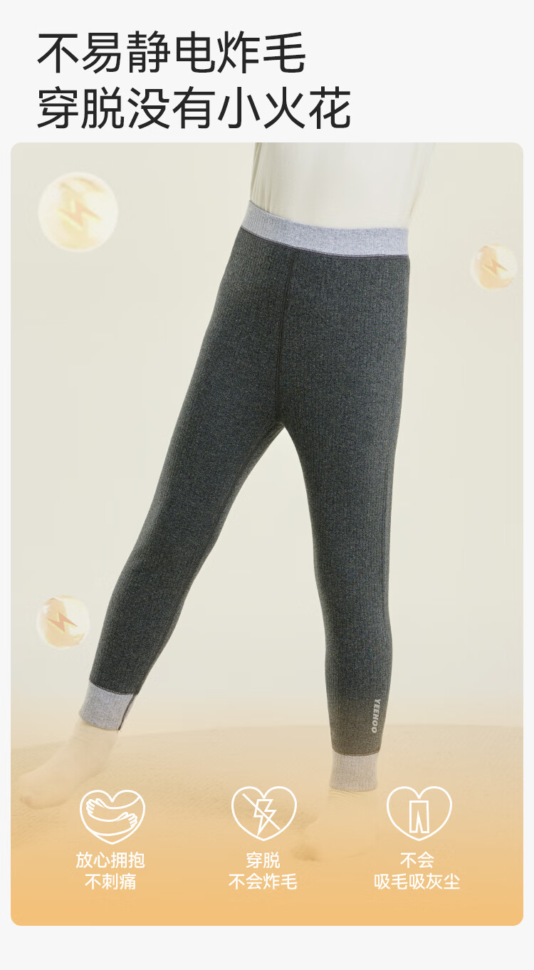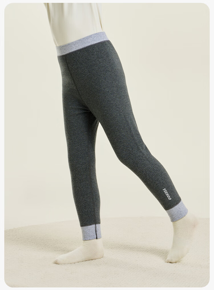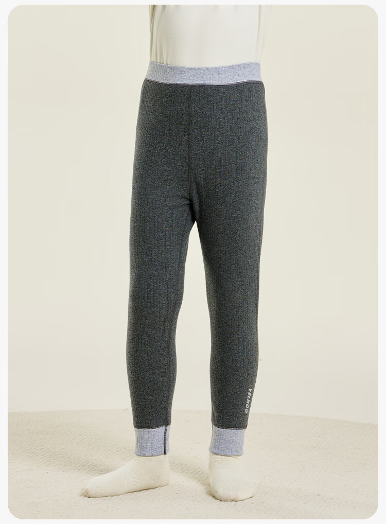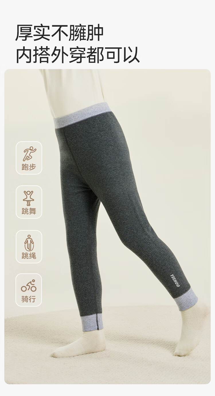 英氏(YEEHOO)【双层】冬季儿童裤子A类一等品中腰护肚羊毛蓄热锁温保暖 烟雾灰调 170