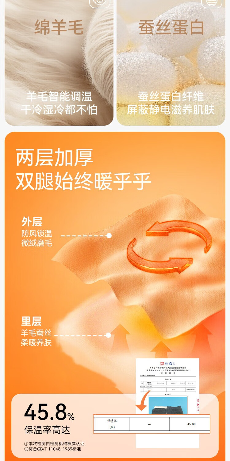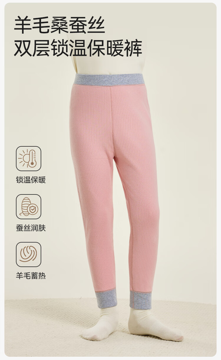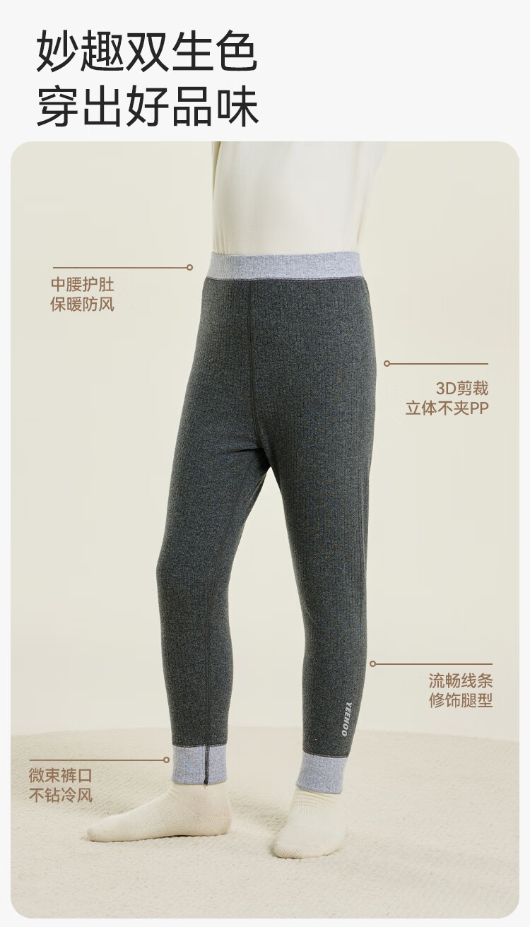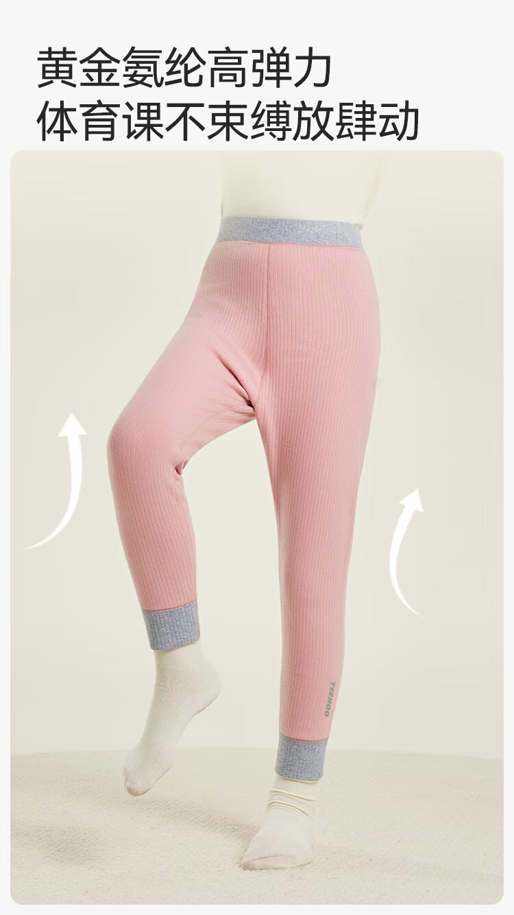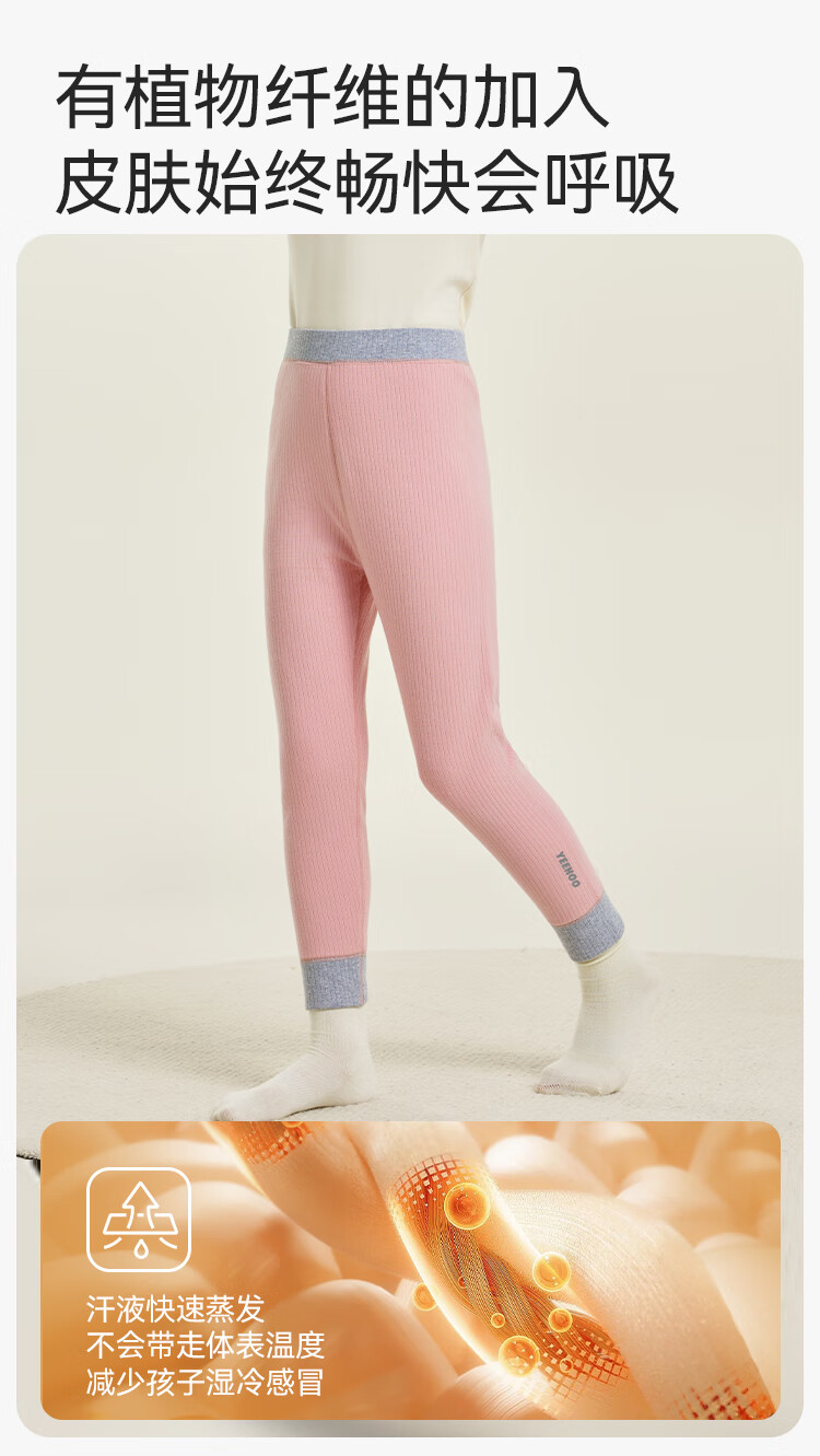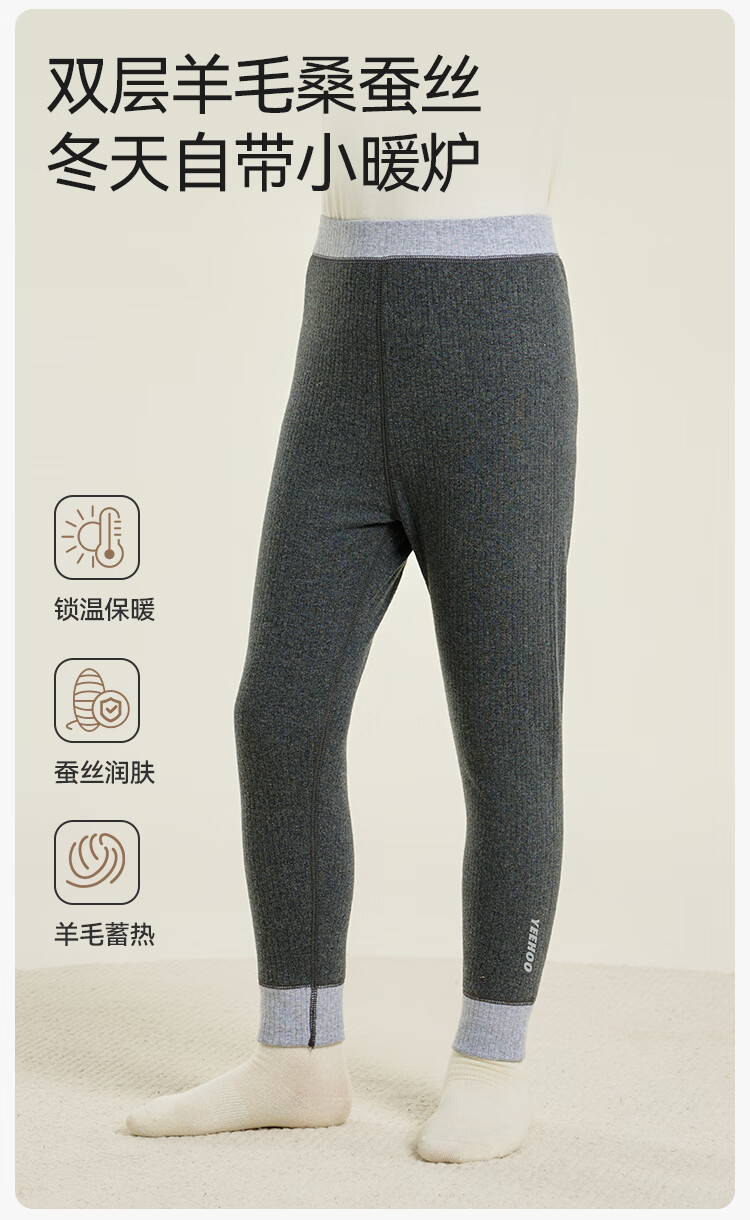 英氏(YEEHOO)【双层】冬季儿童裤子A类一等品中腰护肚羊毛蓄热锁温保暖 烟雾灰调 170