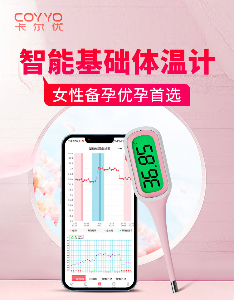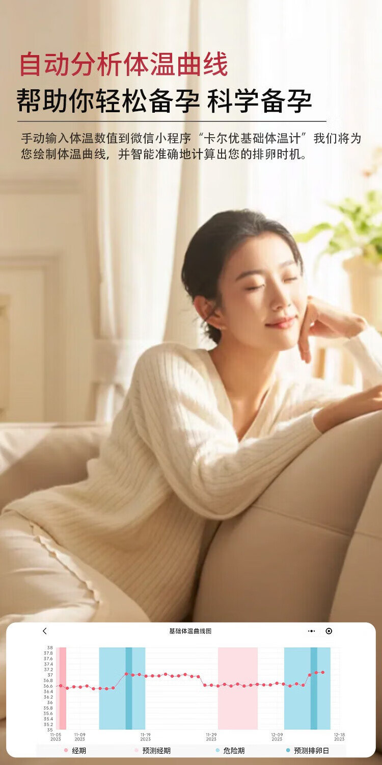 卡尔优女性测排卵期 高精准医用口腔测量 大屏背光 软头备孕电子体温计 【软头|大屏背光】体温计+消毒棉+排卵纸+早孕试纸