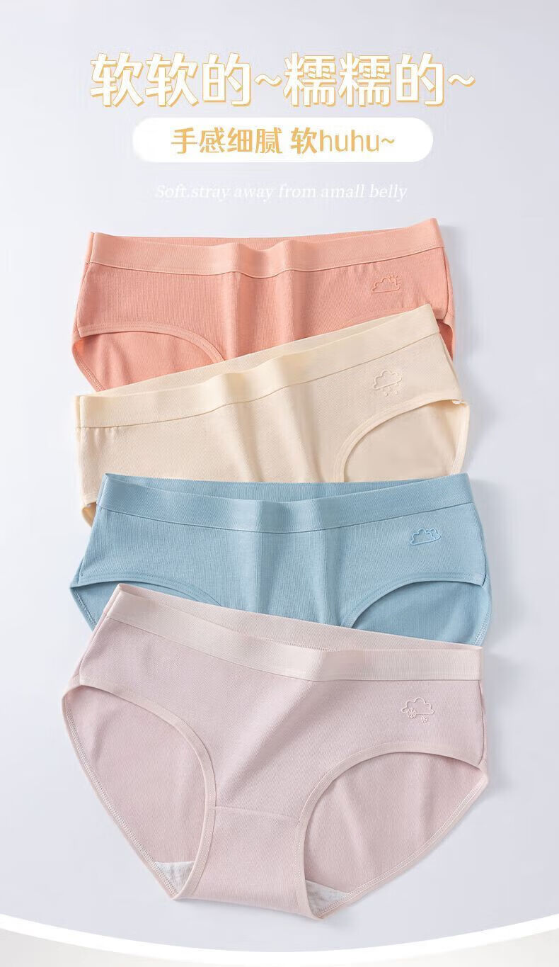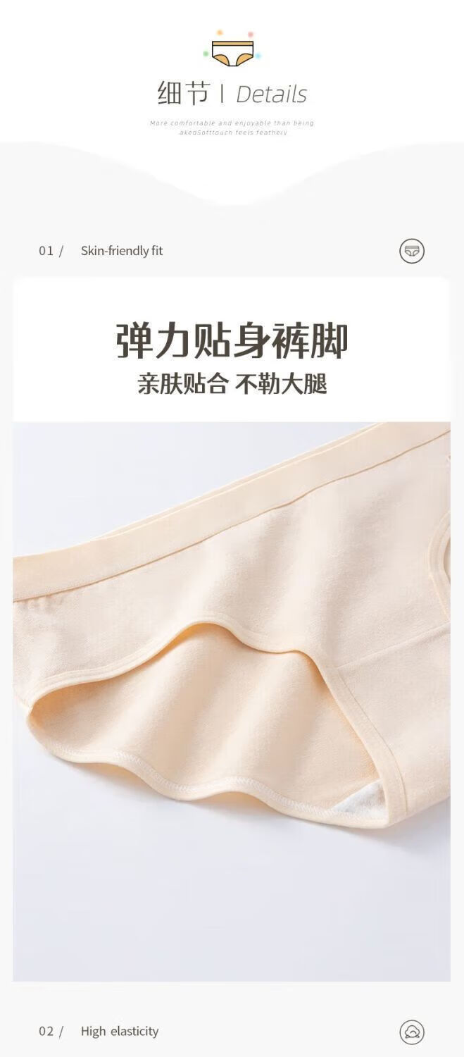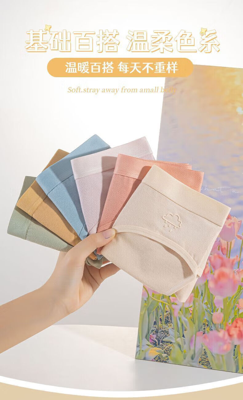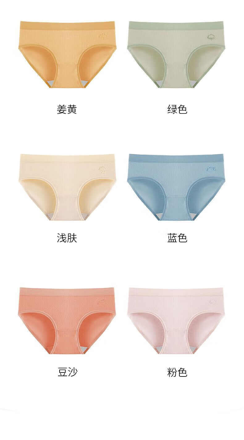 宜而爽10A抗菌新疆纯棉天气马卡龙内裤女透气款底裆高弹女士三角裤 2粉色+2姜黄+2浅蓝+1浅灰 7条 L
