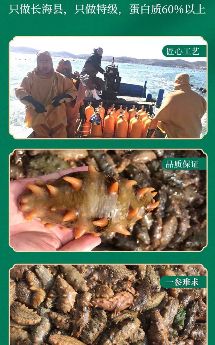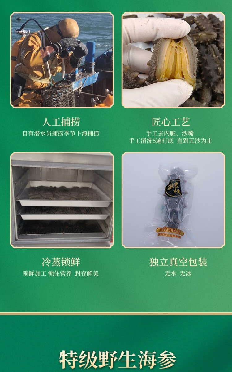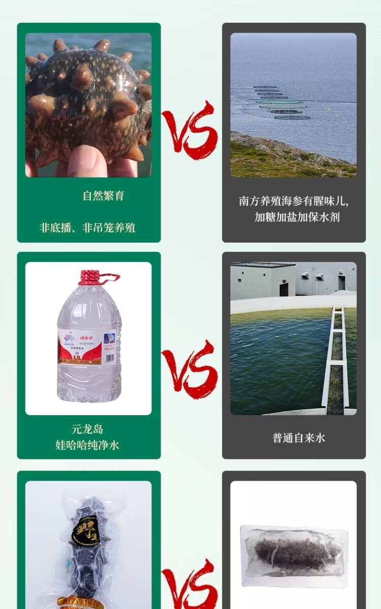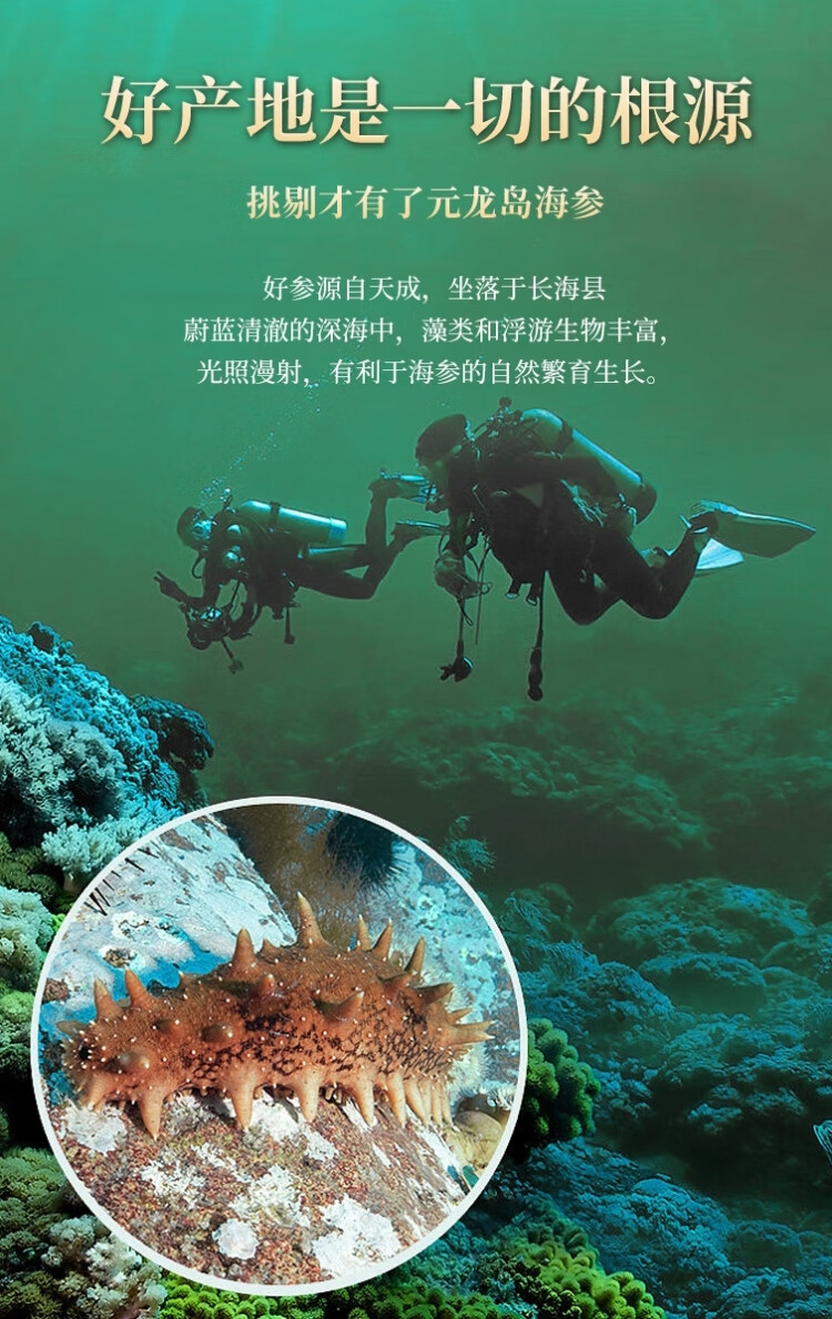 元龙岛即食海参 大连海参 辽参 长海县野生海参底播刺身 鲜食海参礼盒 鲜食海参礼盒1斤 6~10只