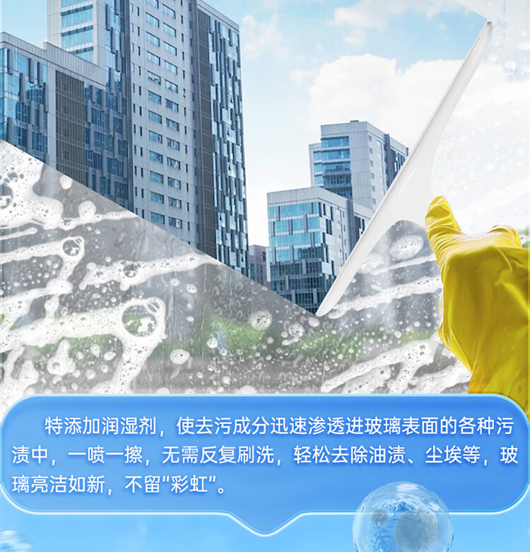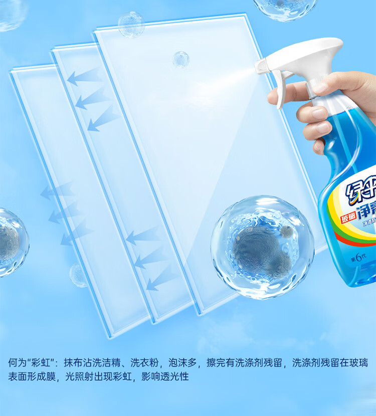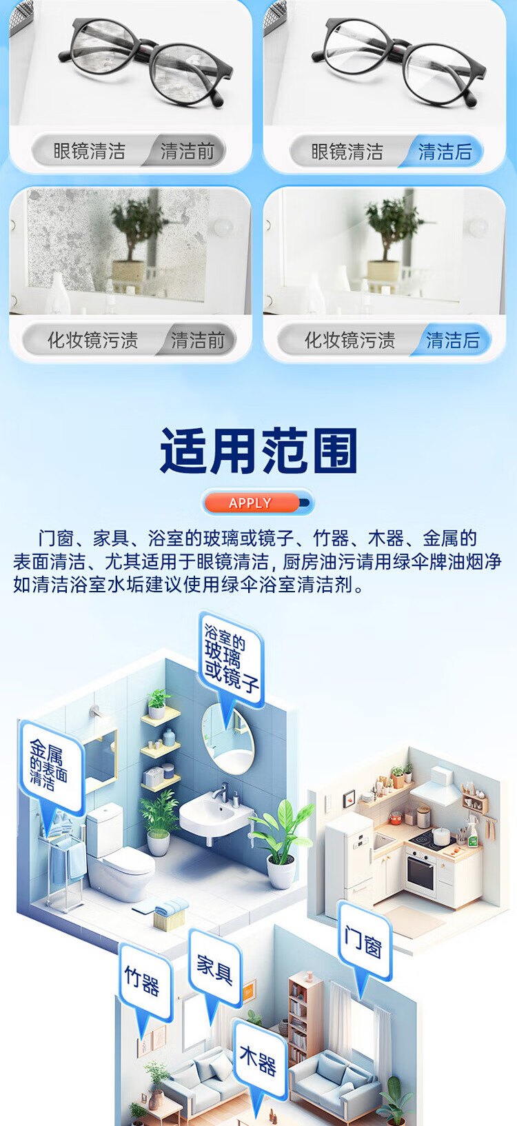 绿伞玻璃清洁剂 净亮水 浴室玻璃车窗镜子去污 玻璃水 500g*2瓶