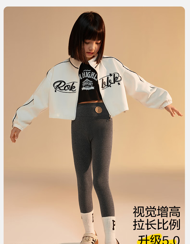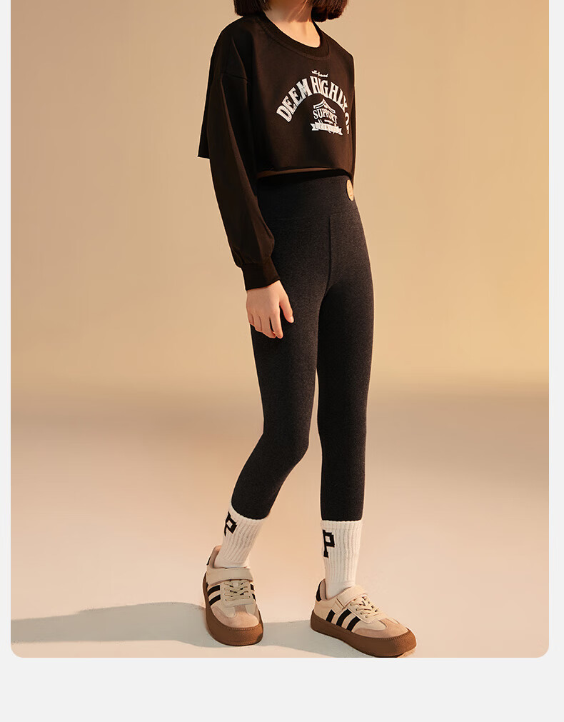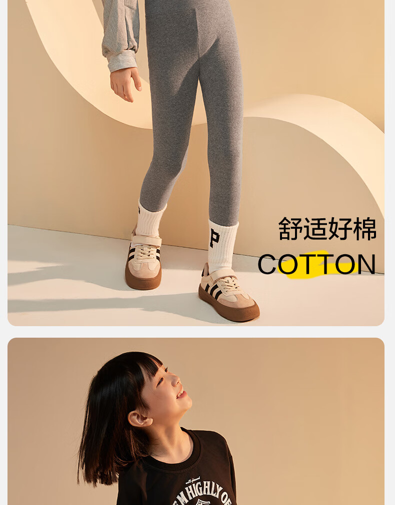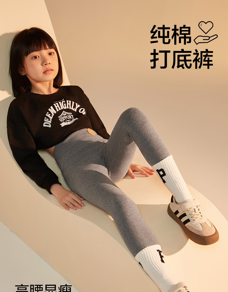 小猪班纳(PEPCO)女童打底裤春秋裤外穿95棉2024新款儿童中大童高腰洋气芭比裤薄款 浅灰色 140 建议身高(135-145CM)