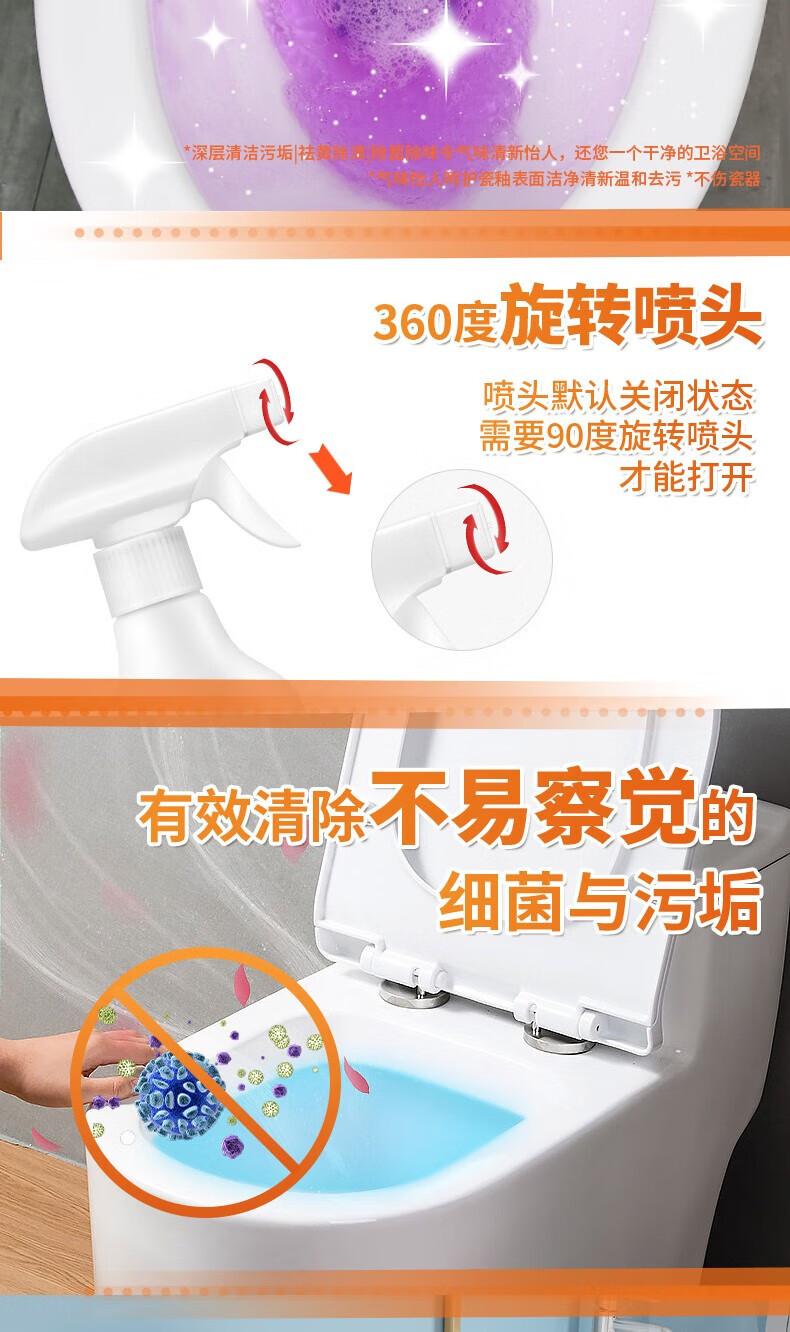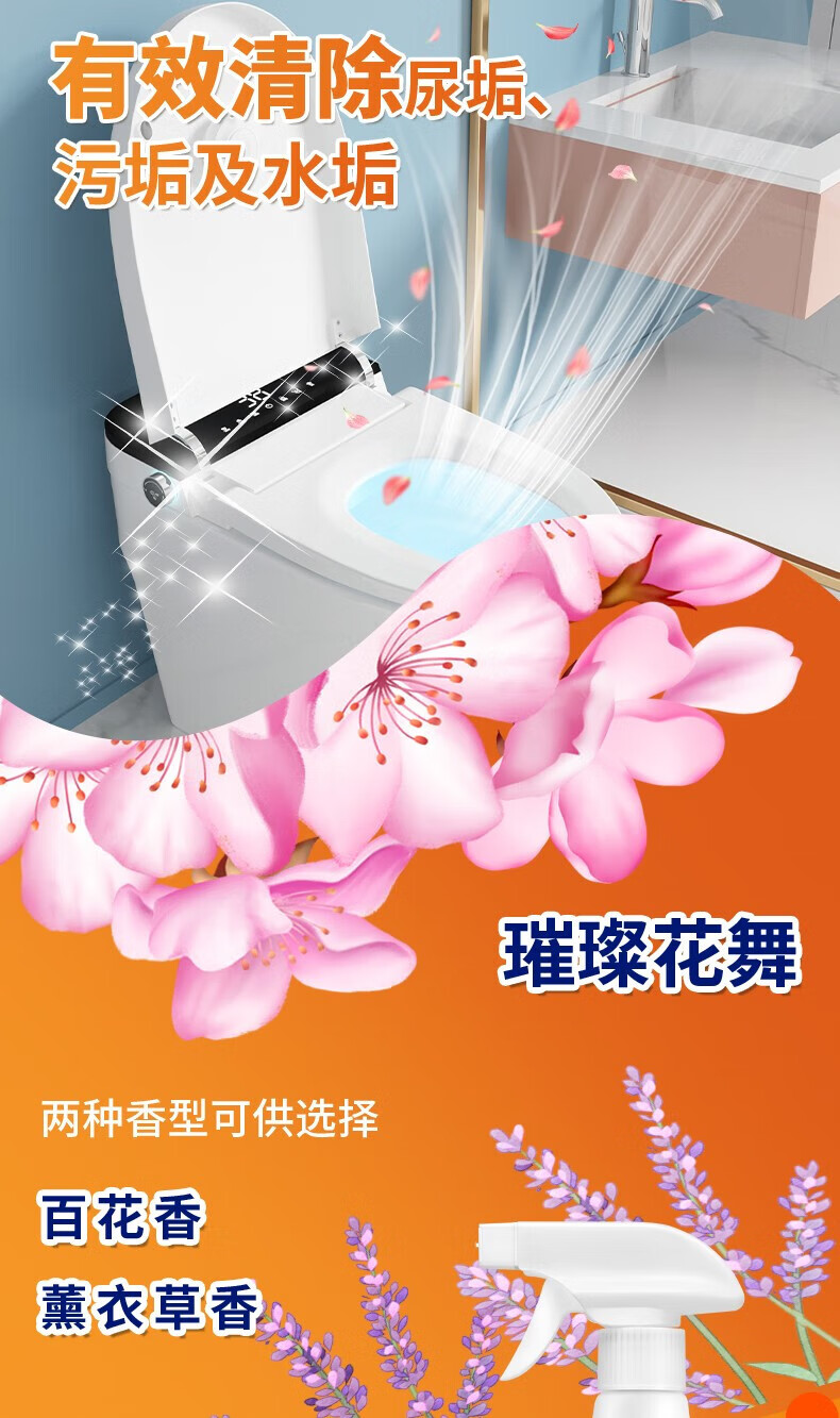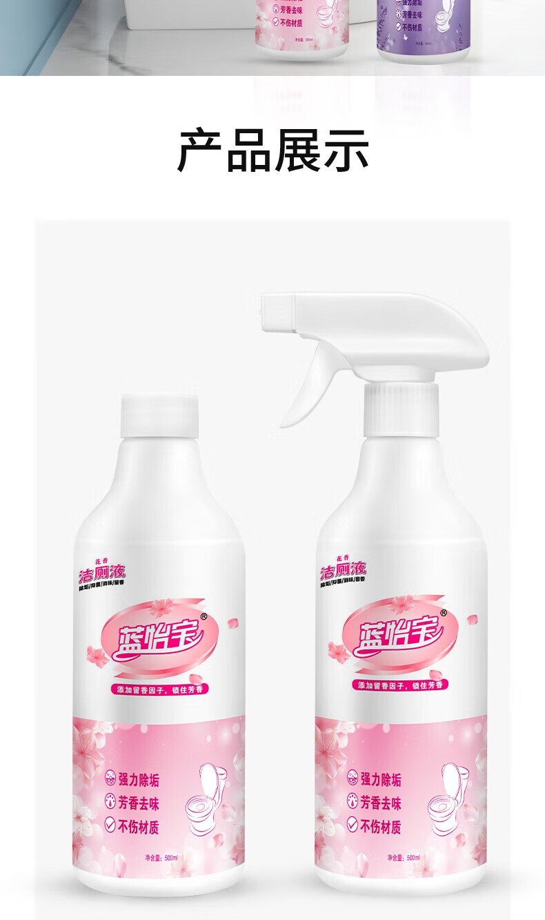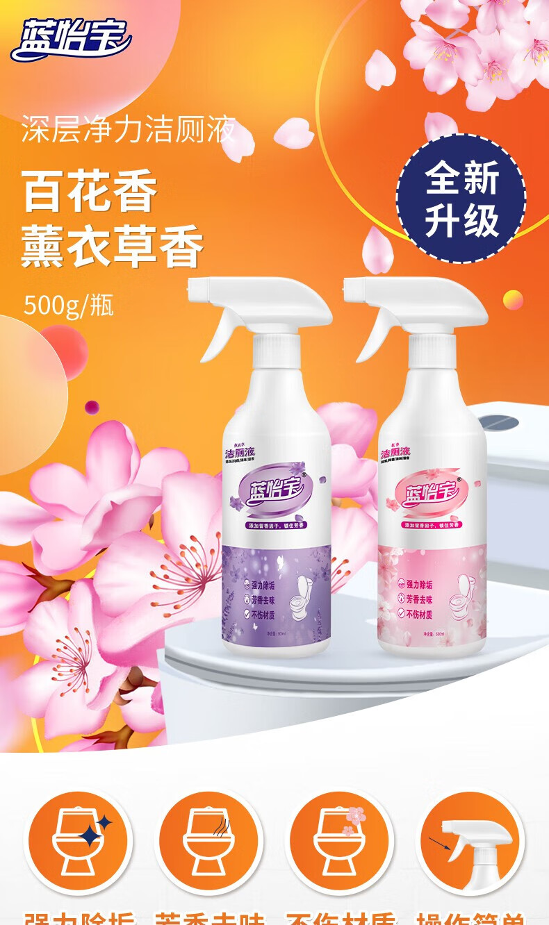 蓝怡宝洁厕灵花香洁厕液家用卫生间马桶杀菌除垢清洁剂厕所瓷砖去污去臭 薰衣草洁厕液5瓶*500ml+2喷头