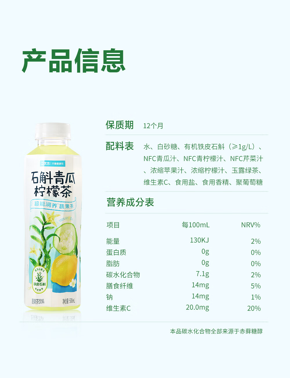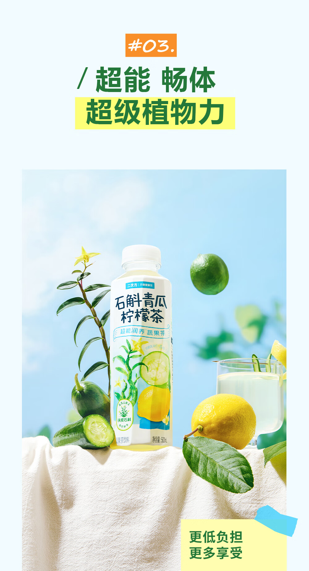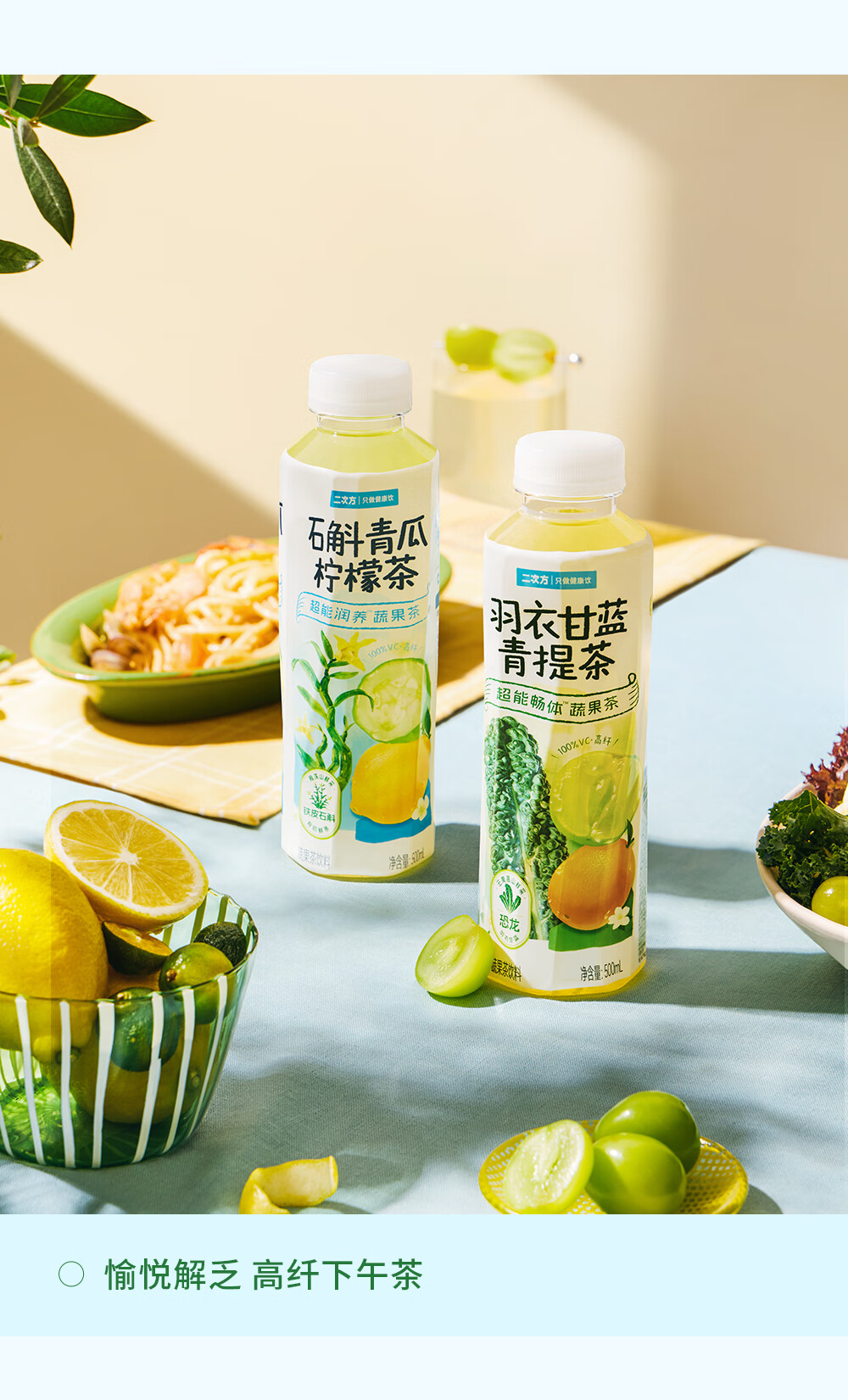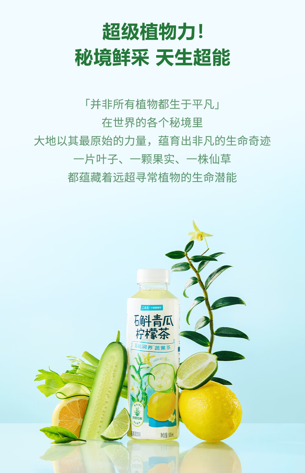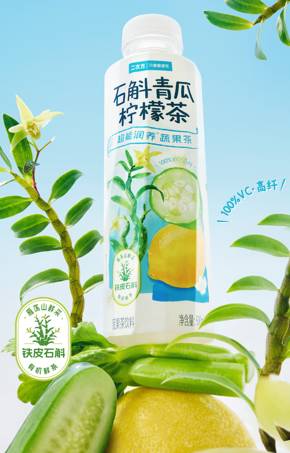 二次方石斛青瓜柠檬茶 蔬果茶 0脂0防腐剂 含NFC果汁饮料整箱年货 500ml*15瓶