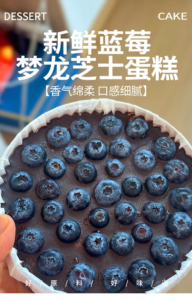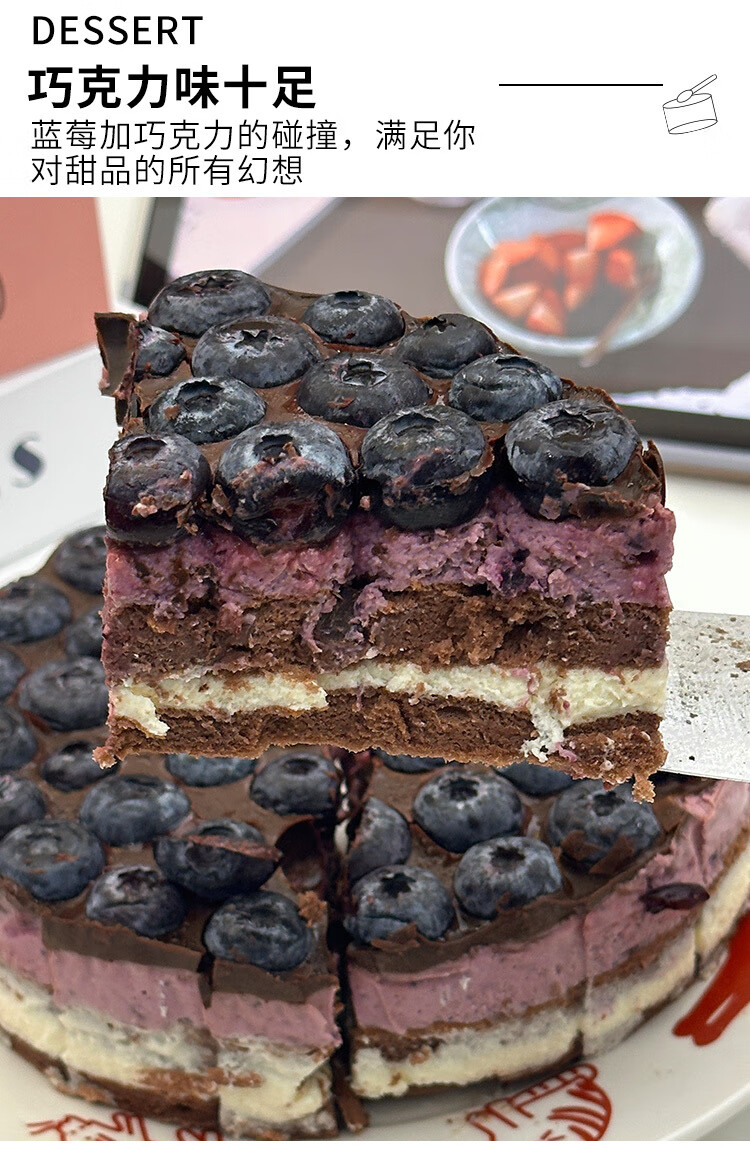 焙尔妈妈多多蓝莓梦龙脆皮巧克力纯可可脂生日蛋糕好吃下午茶甜品儿童零食 鲜果蓝莓梦龙芝士蛋糕600g*1盒 顺丰发货(下单前请看详情页包装等)