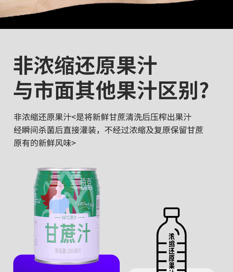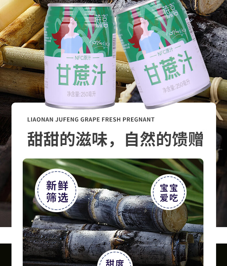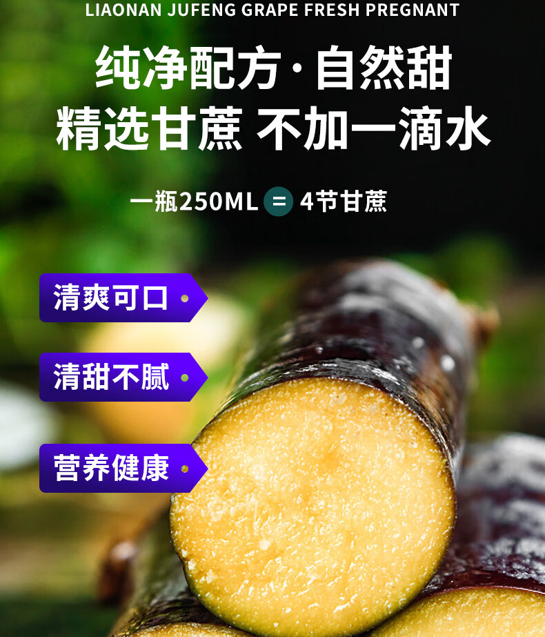 零定律甘蔗汁鲜榨NFC果汁黑皮甘蔗网红饮品整箱饮料100%纯甘蔗汁 100%甘蔗汁250ml*4瓶