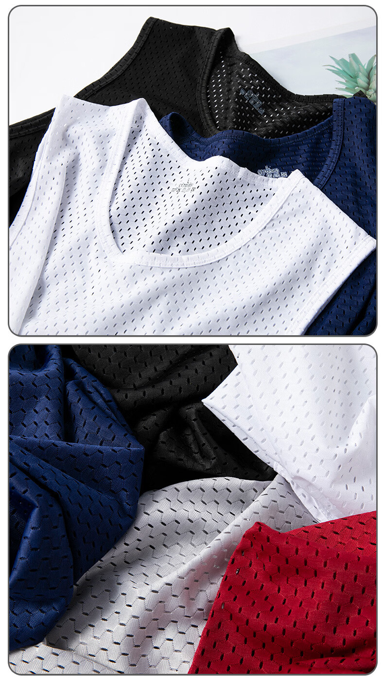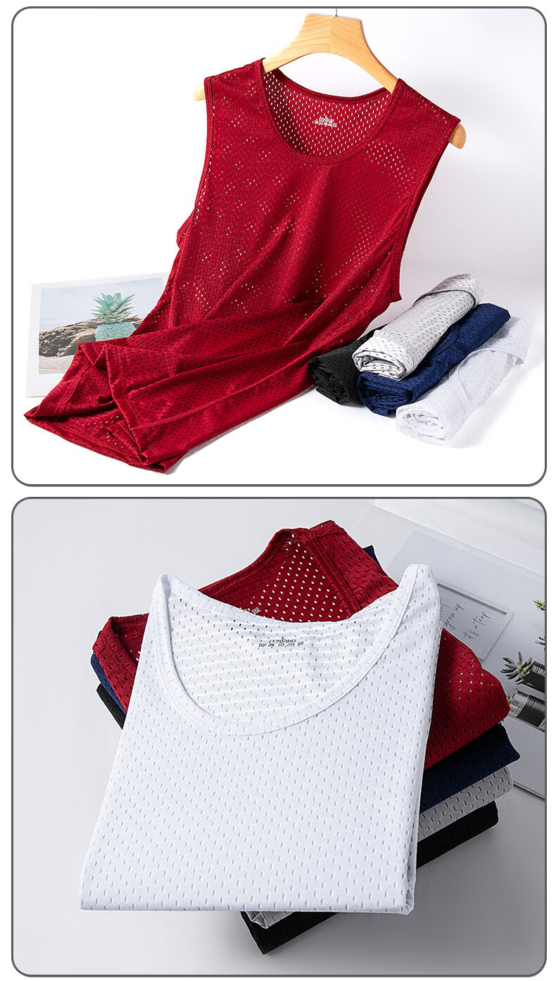 【严选】男士冰丝网眼背心夏季薄款修身健身运动男无袖打底上衣潮 网眼背心白色 L