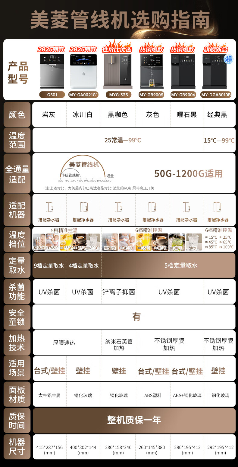 美菱(MeiLing)管线机家用净水器净饮机伴侣UV抑菌即热即饮五档控温一键触控壁挂式直饮饮水机 9005【自行安装·需搭配净水器使用】智能UV抑菌