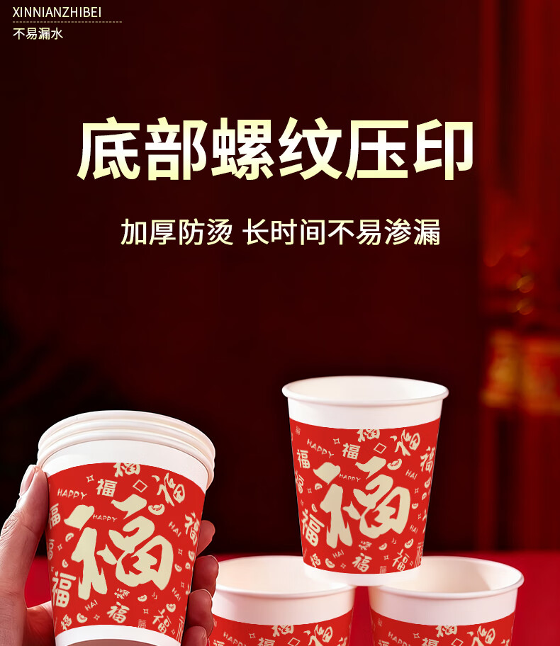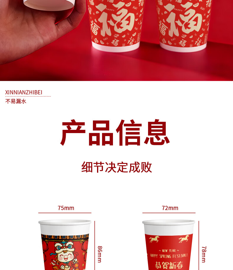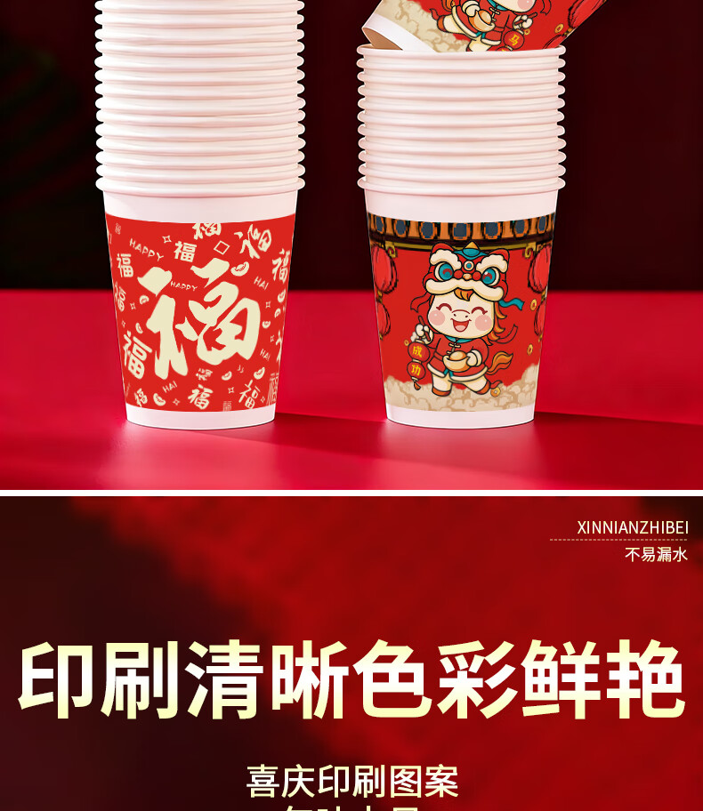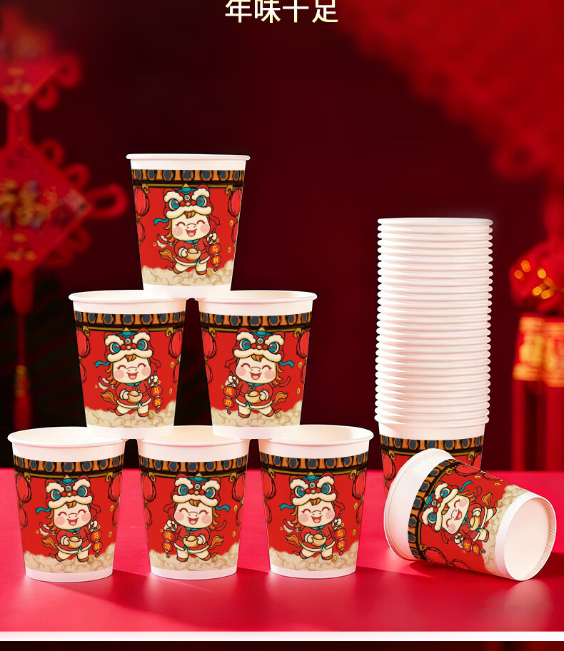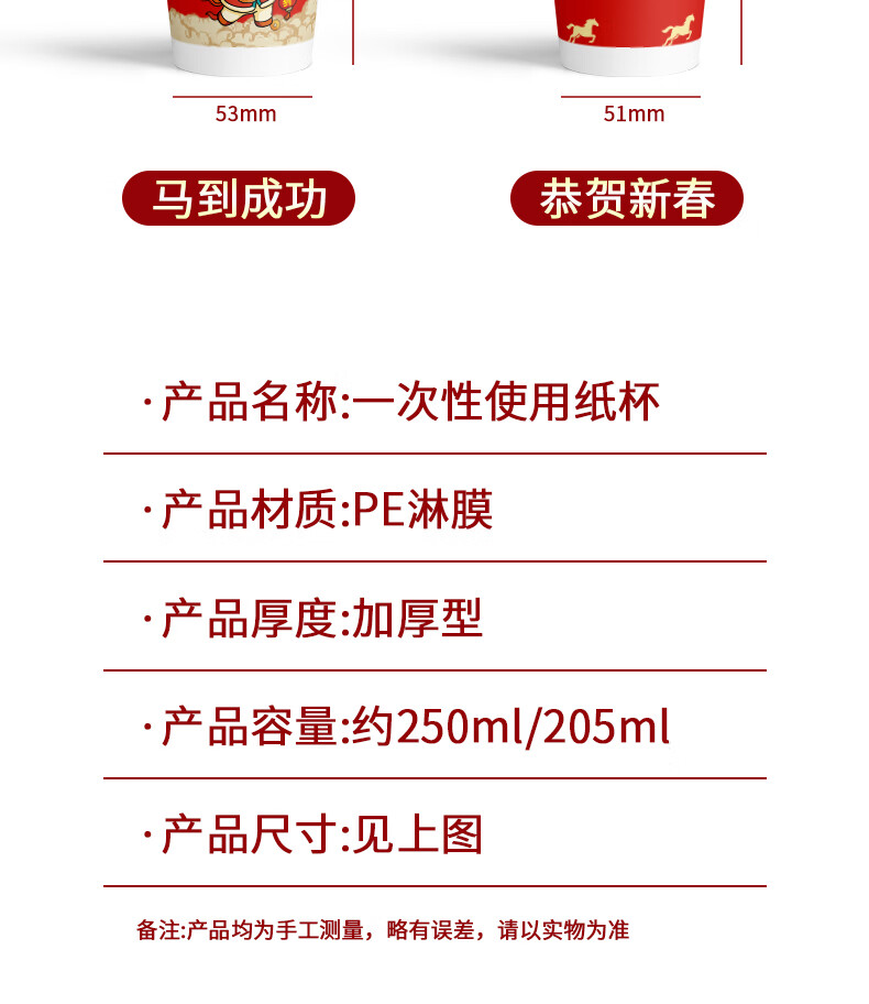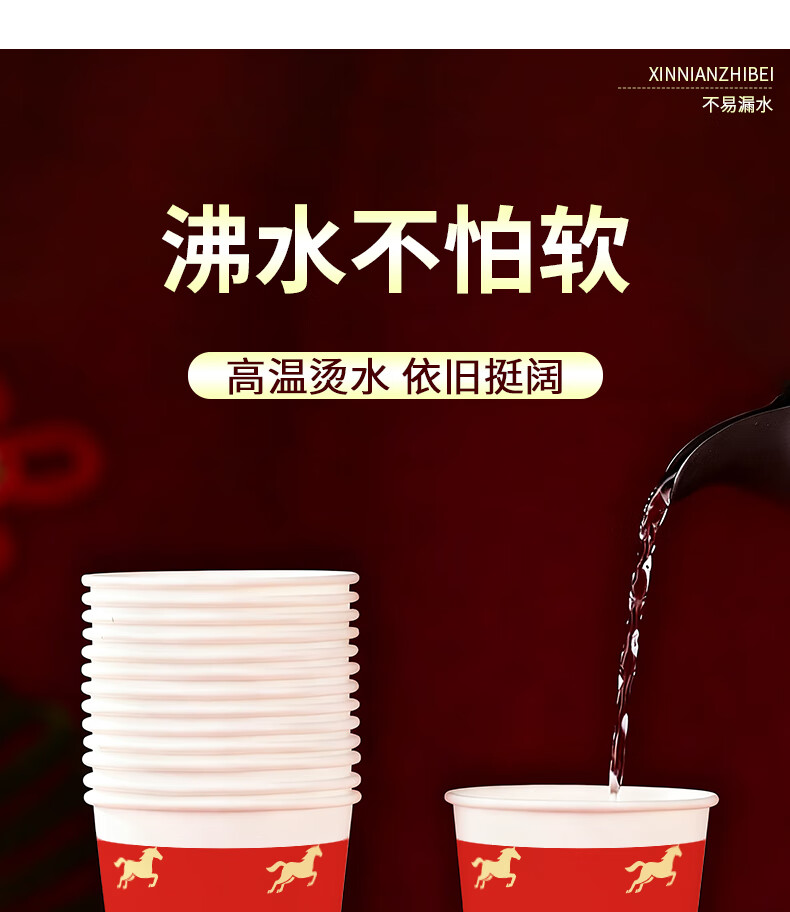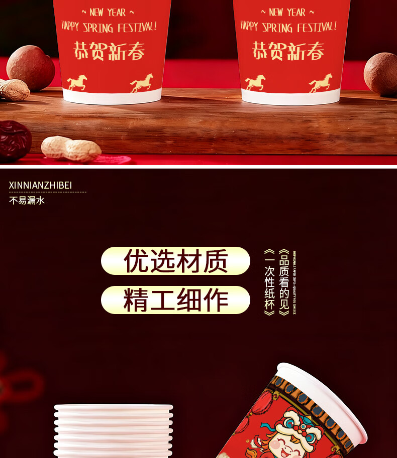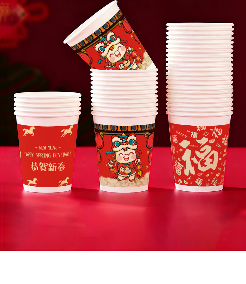 兰月星2026年马年纸杯新年过年一次性杯子金箔茶杯红色家用水杯年货批发 205ml马年款随机装-100只