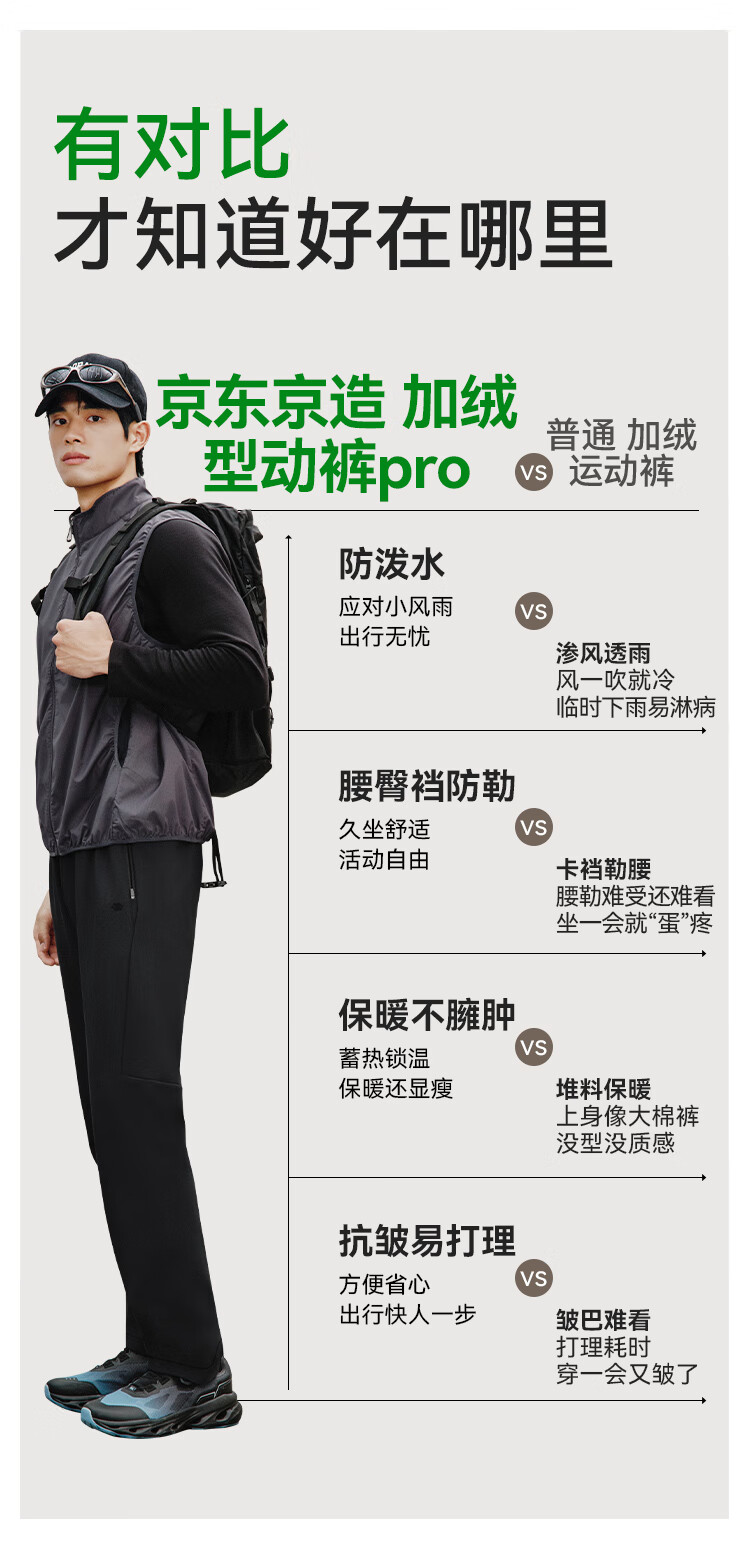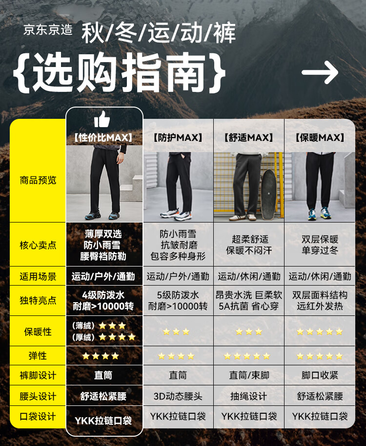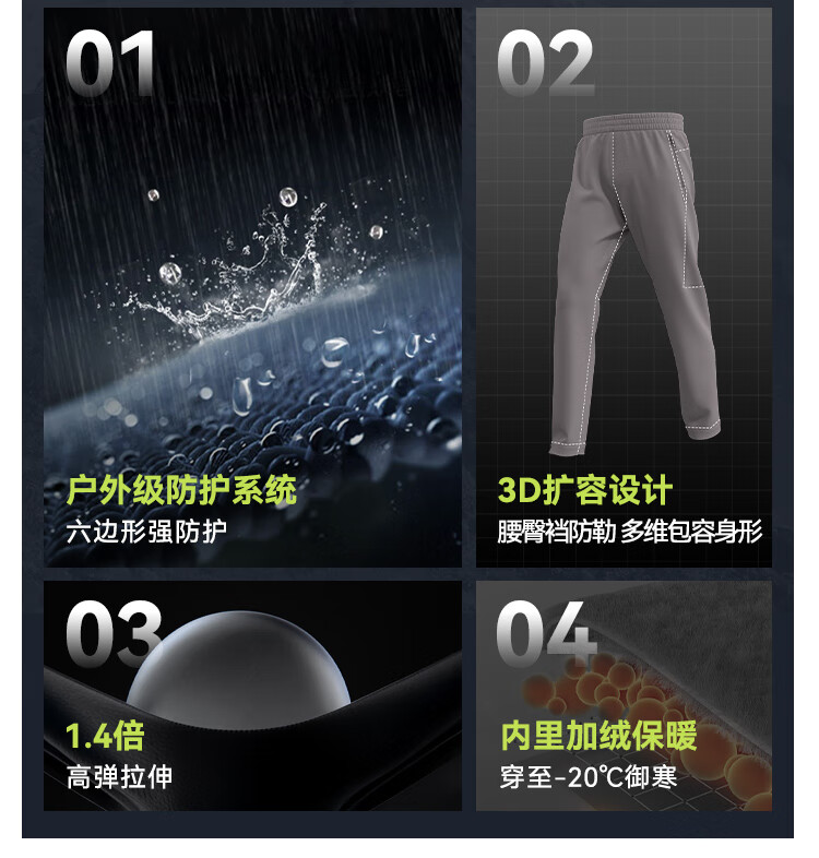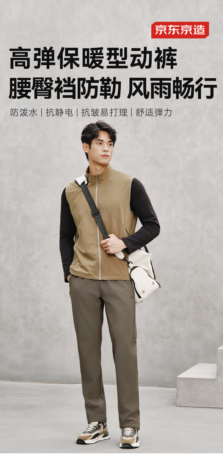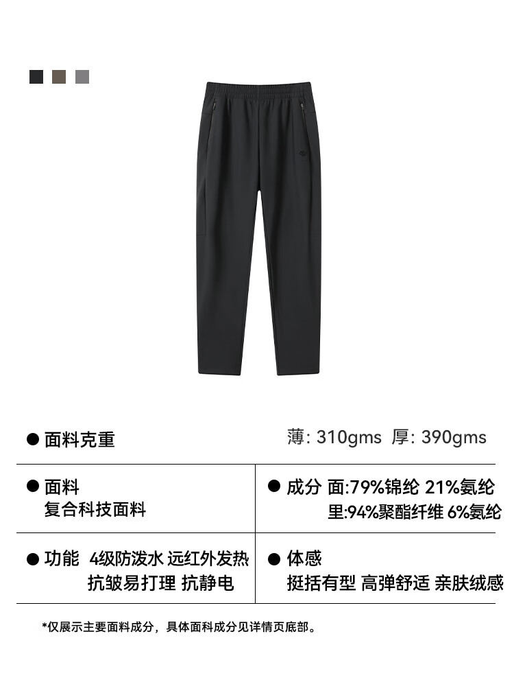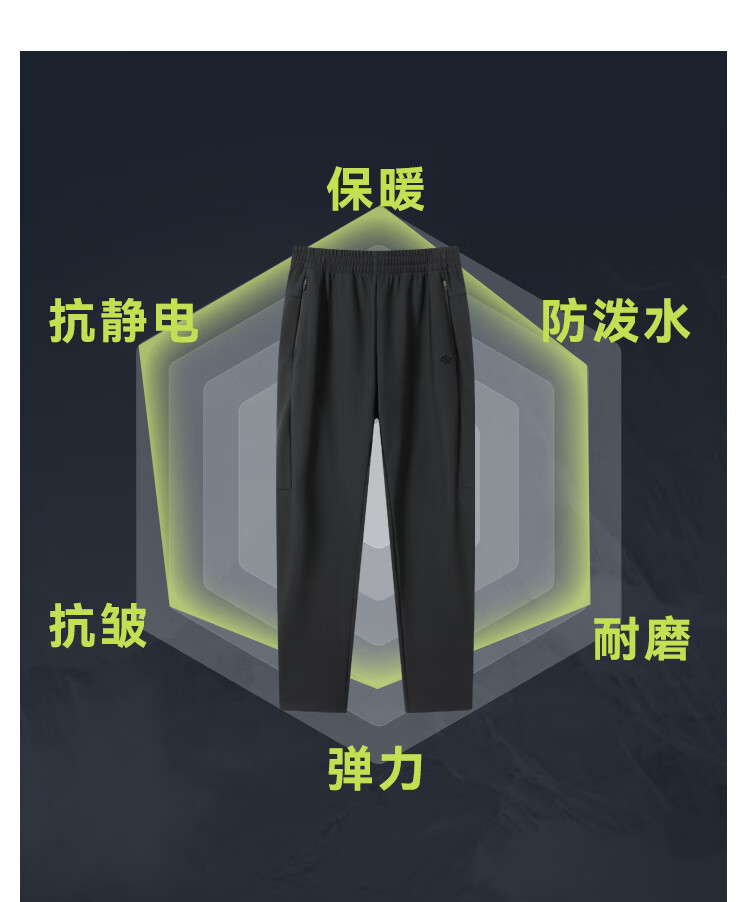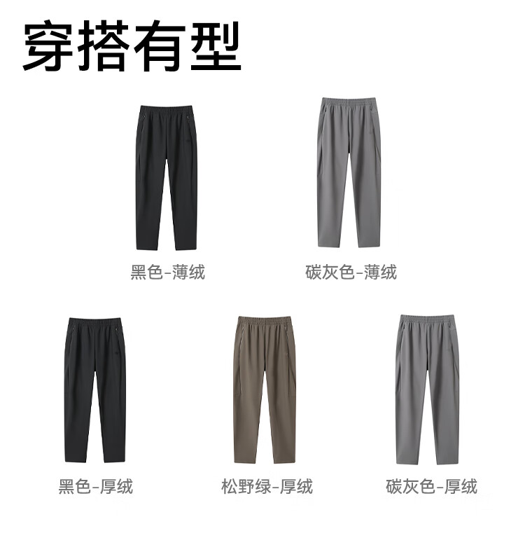 京东京造加绒防泼水运动裤冬季新款直筒户外耐磨冲锋跑步休闲裤 厚绒黑L