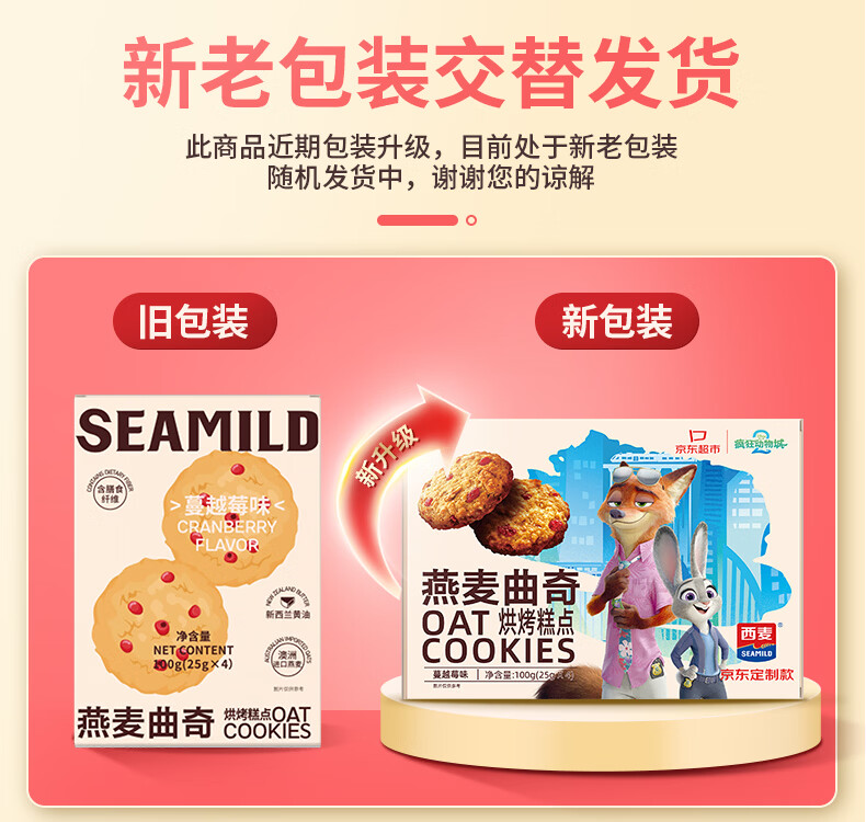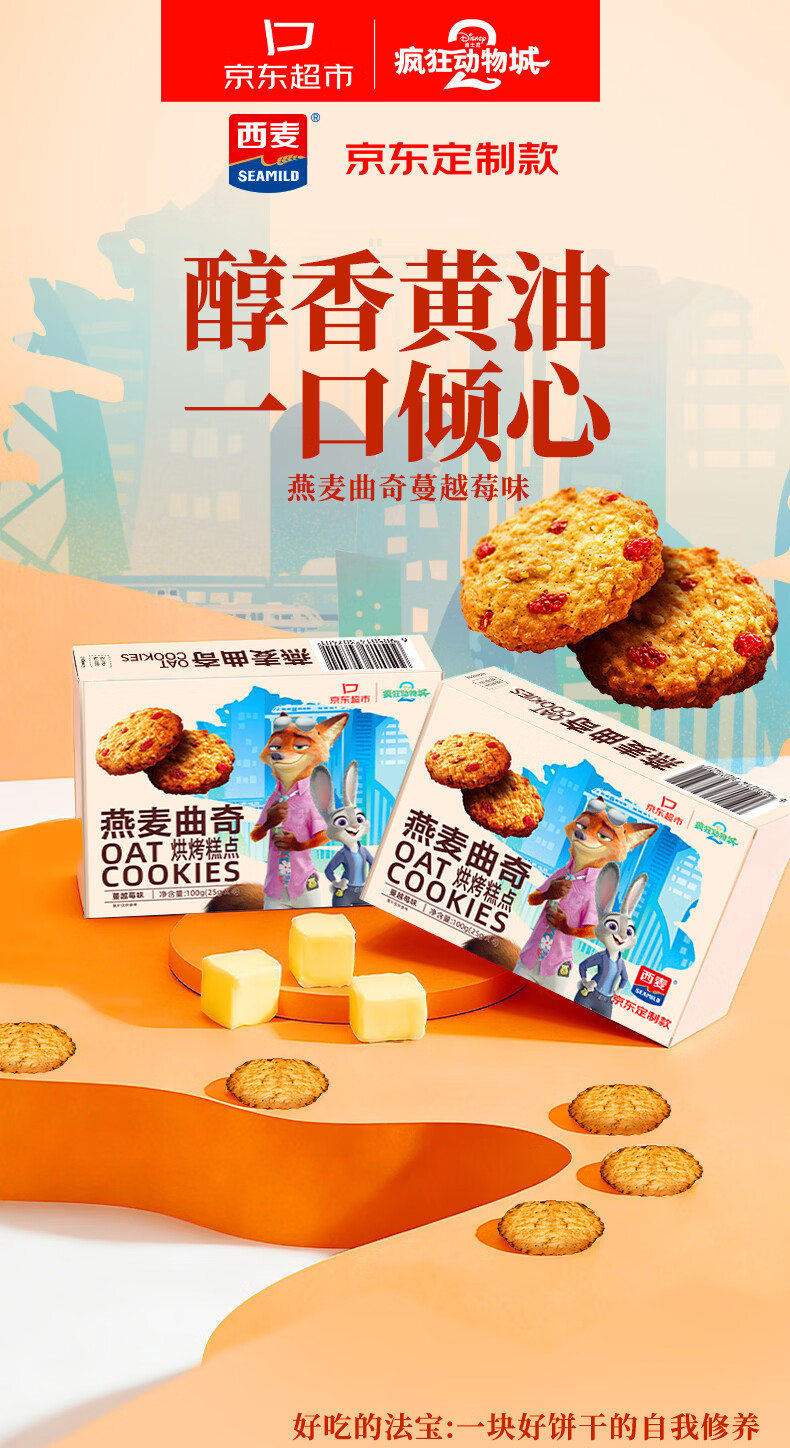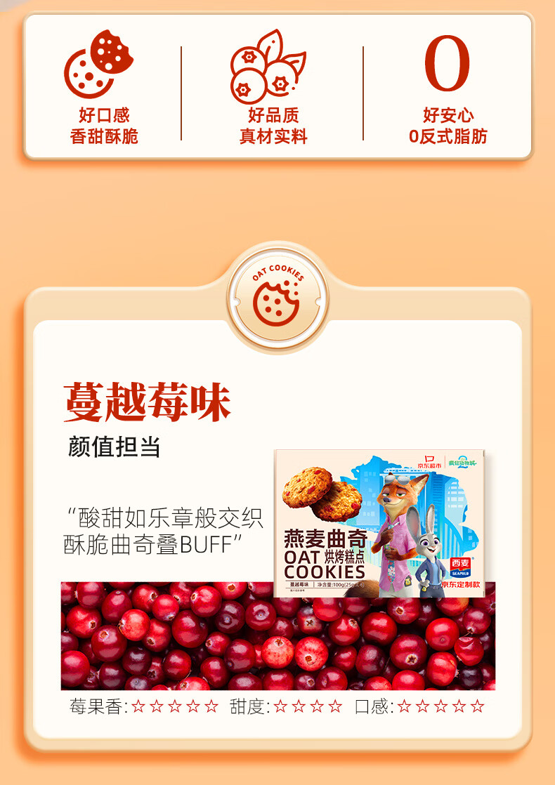 西麦蔓越莓燕麦黄油曲奇饼干100g 疯狂动物城休闲零食早餐下午茶