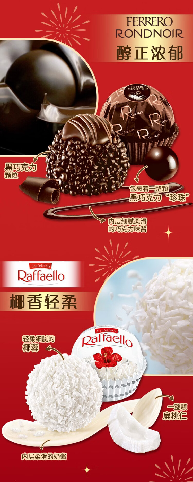 费列罗 黑巧克力礼盒 30粒375g 榛果威化 休闲零食 糖果 新年礼物