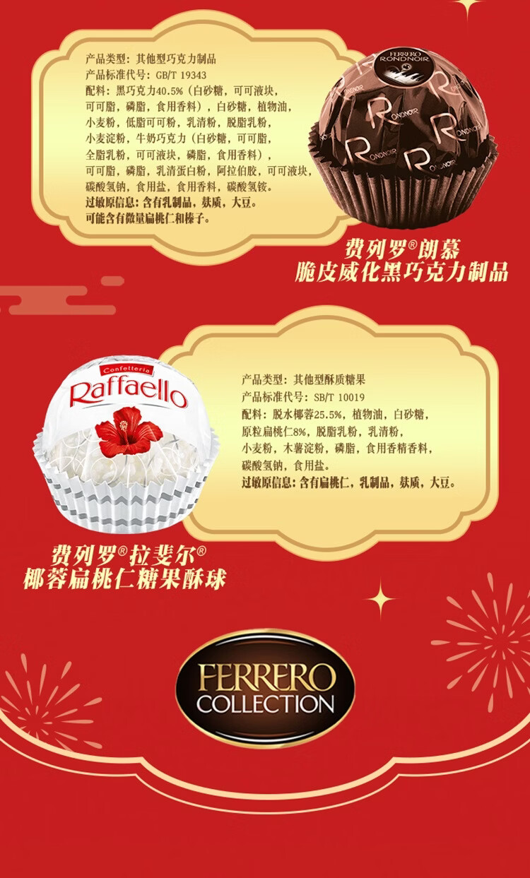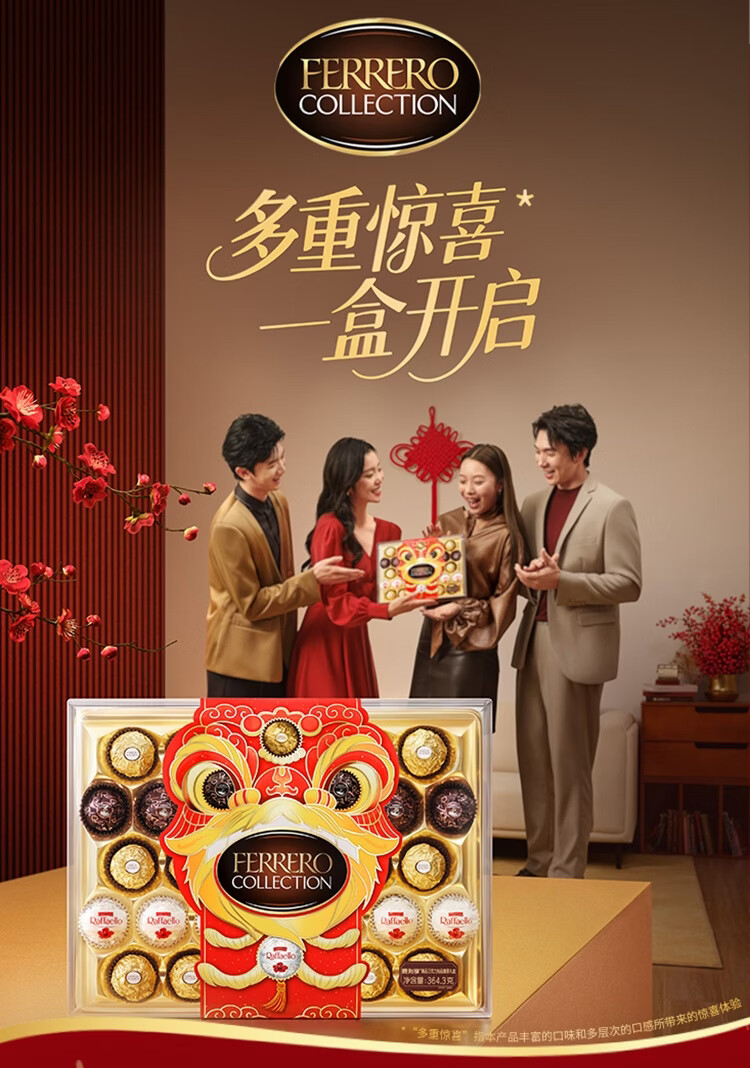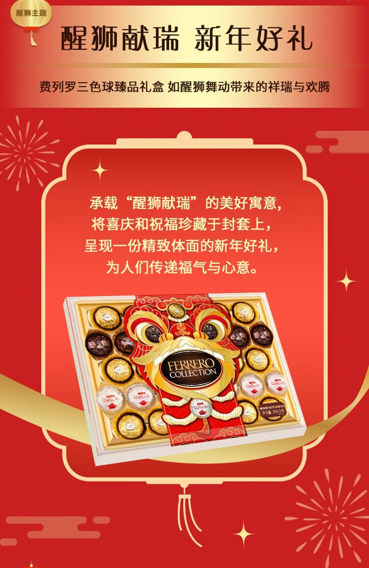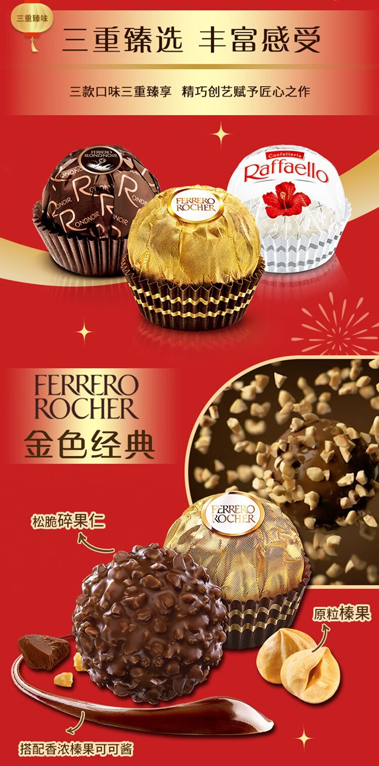 费列罗 榛果巧克力礼盒 3种口味32粒364.3g 零食 糖果 新年礼物