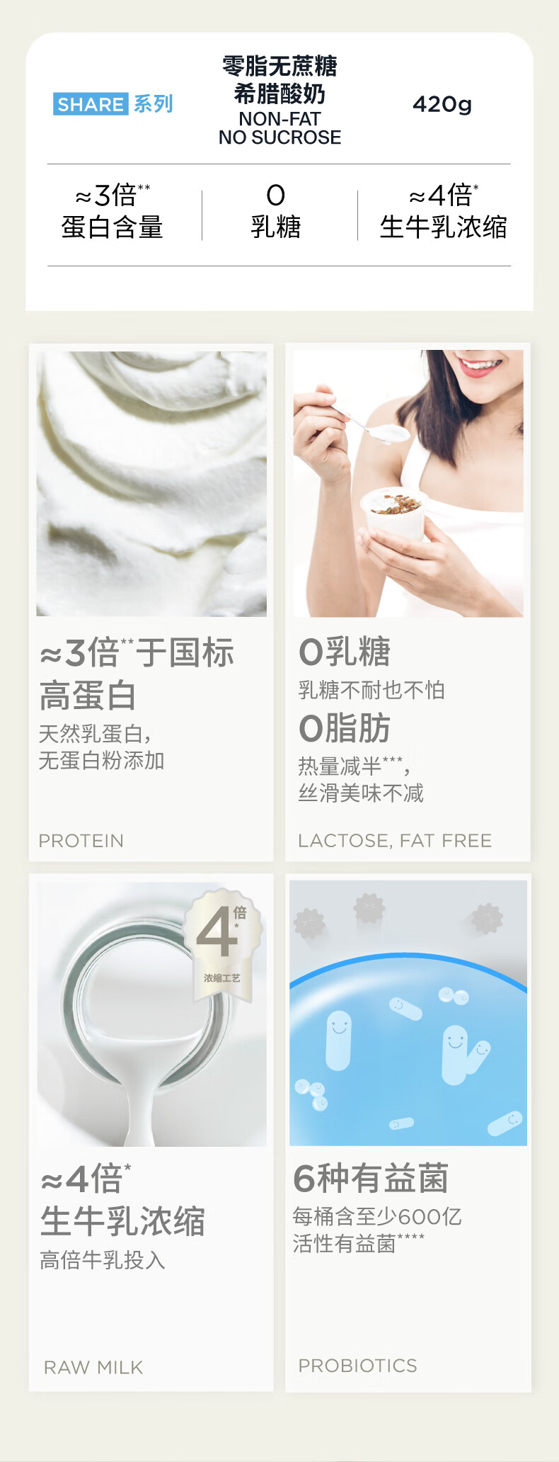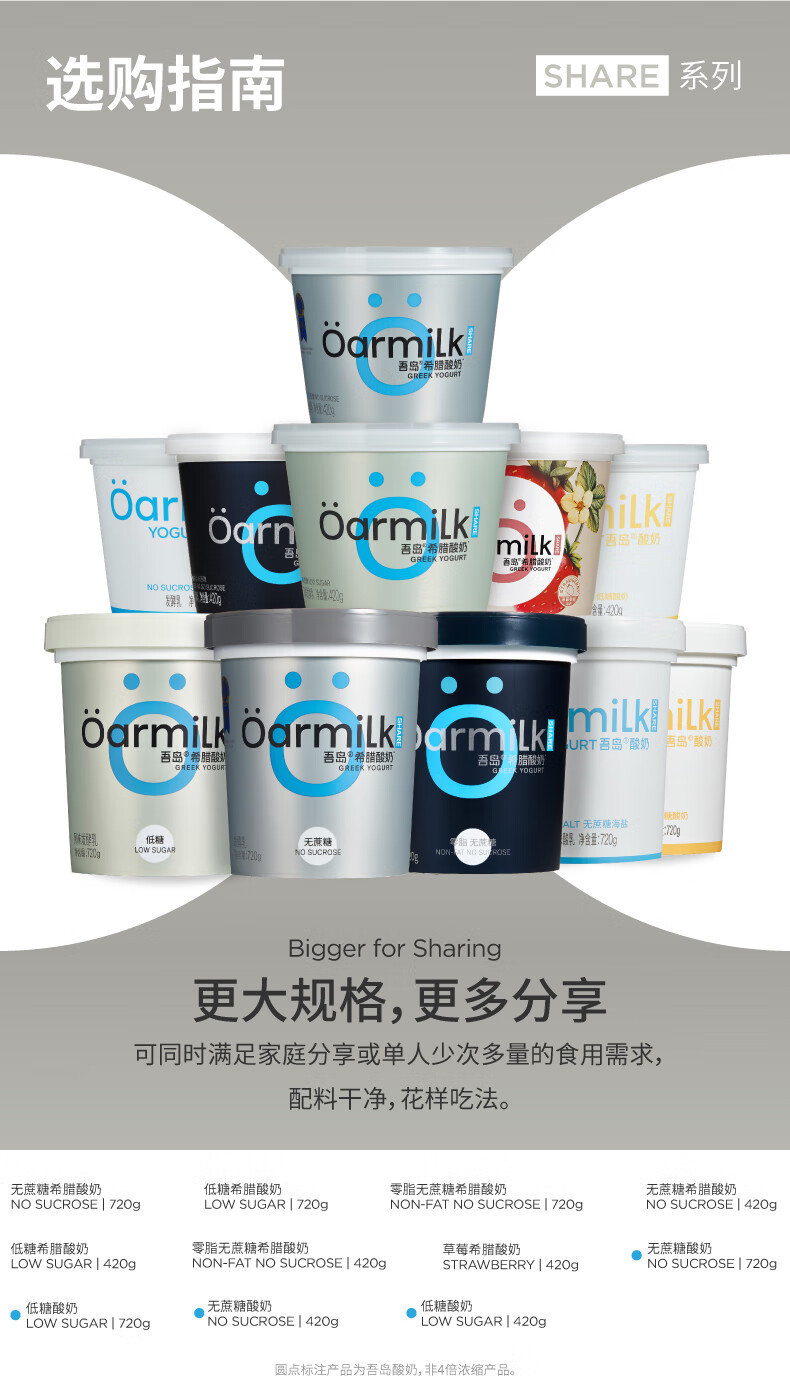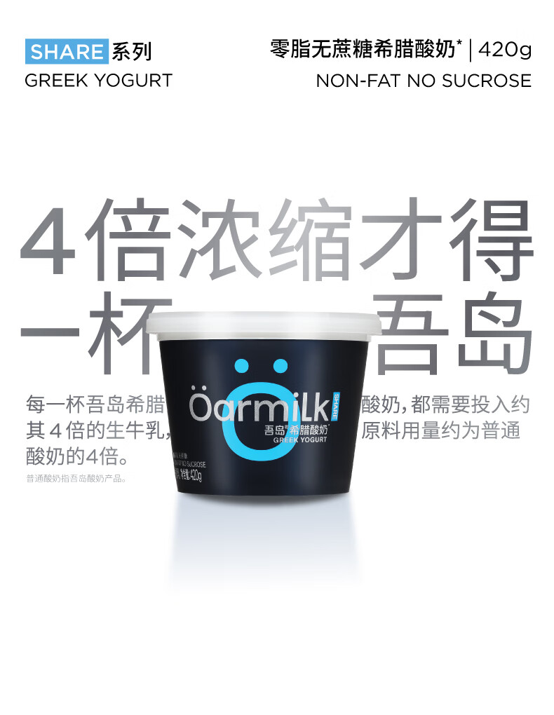 OarmiLk吾岛零脂无蔗糖希腊酸奶11g蛋白质低温酸奶6种有益菌420g发酵乳