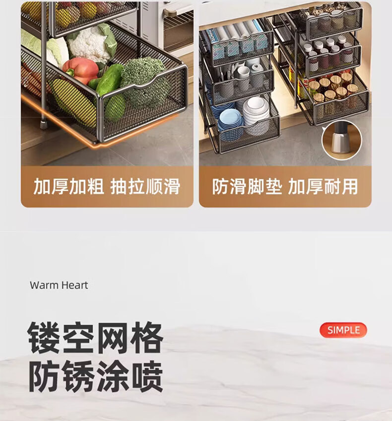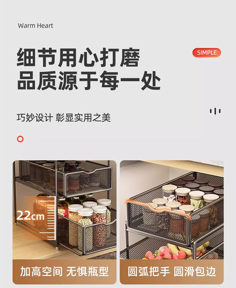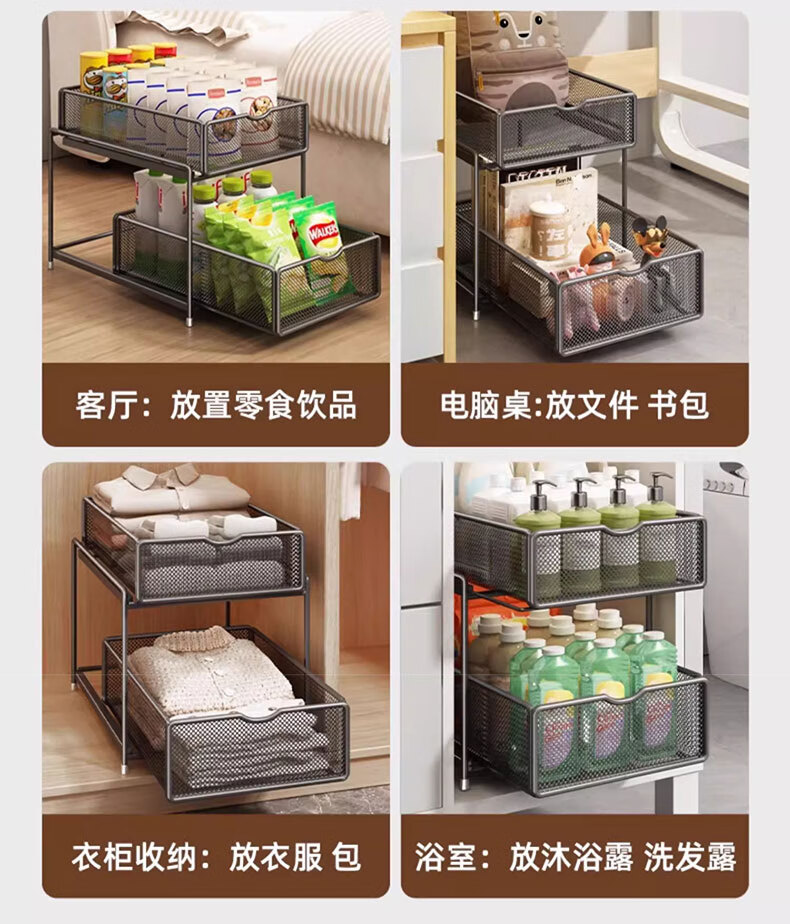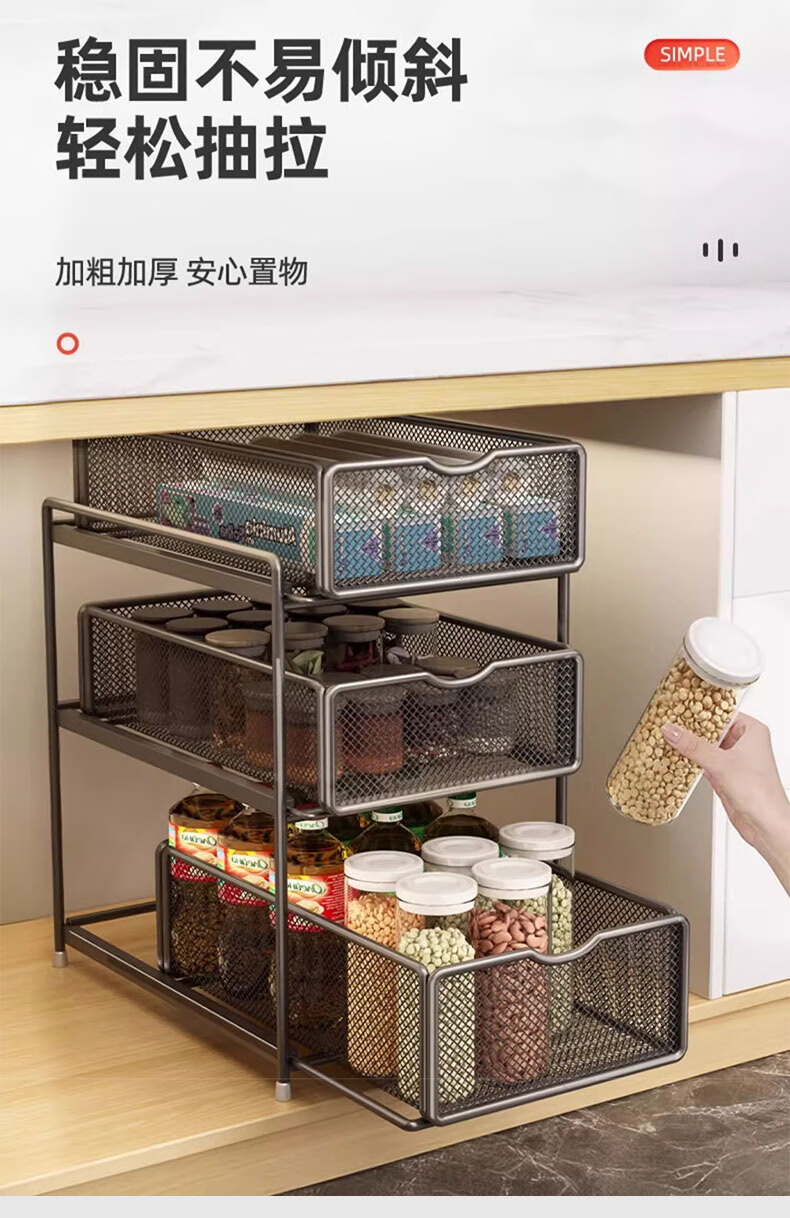 吱凡日本厨房抽拉式置物架橱柜内分层架下水槽多功能神器新款收纳拉篮 黑色大号【标准款】【抽拉晃动包退】 2层