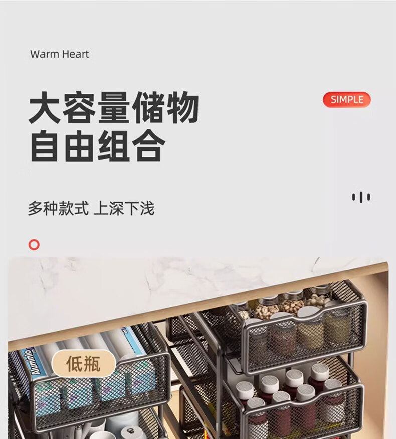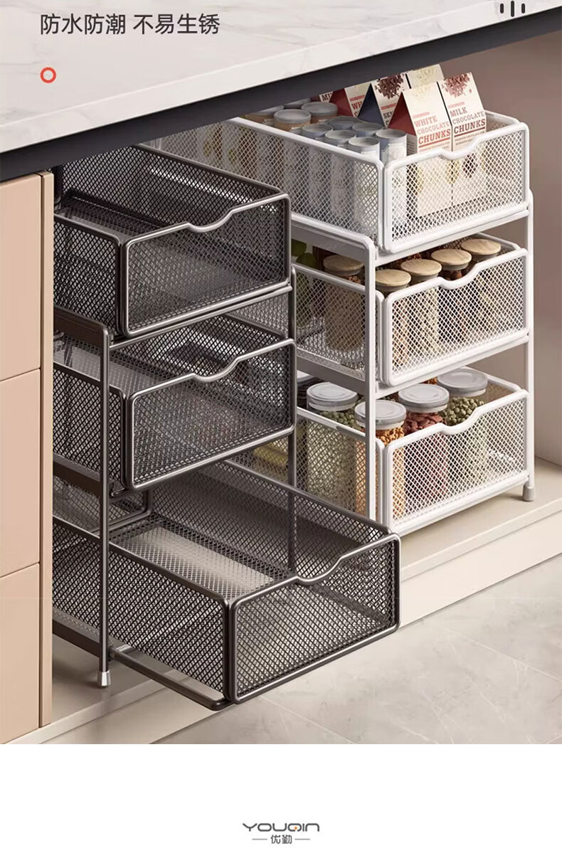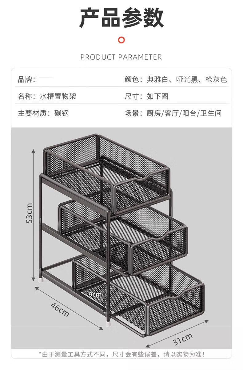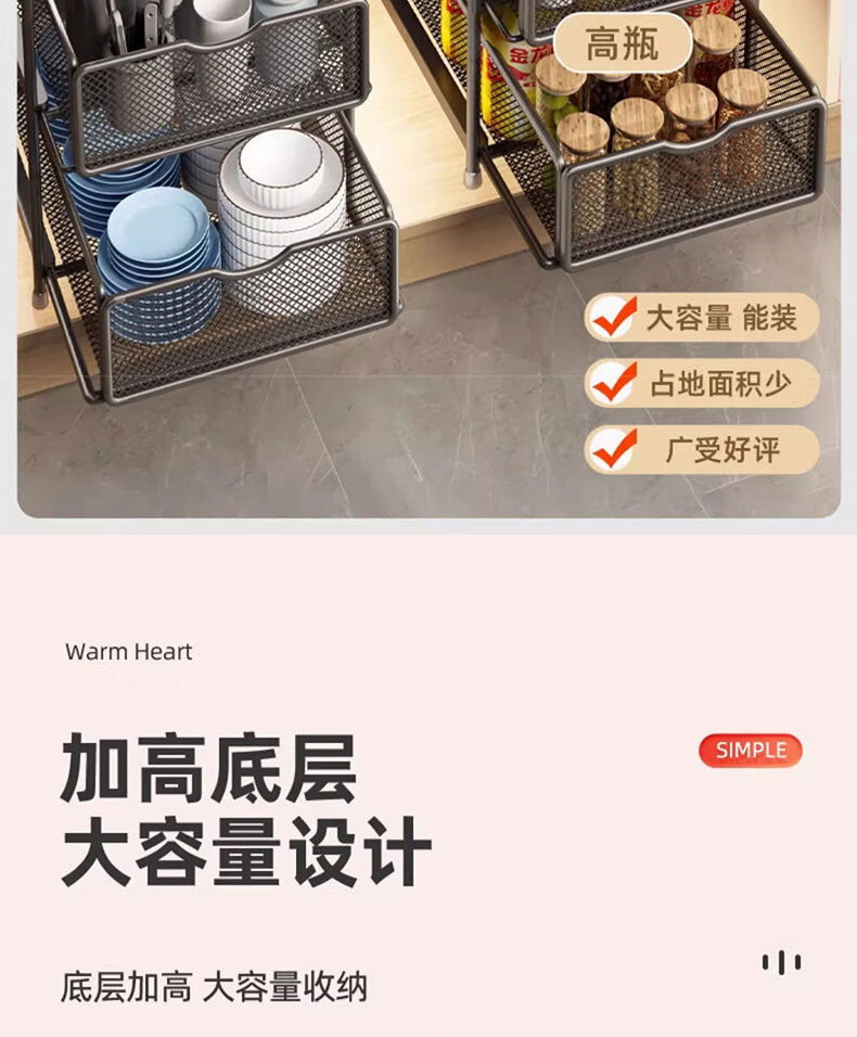 吱凡日本厨房抽拉式置物架橱柜内分层架下水槽多功能神器新款收纳拉篮 黑色大号【标准款】【抽拉晃动包退】 2层