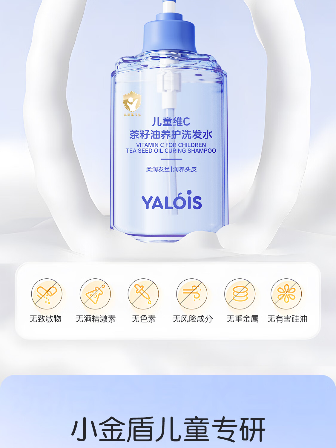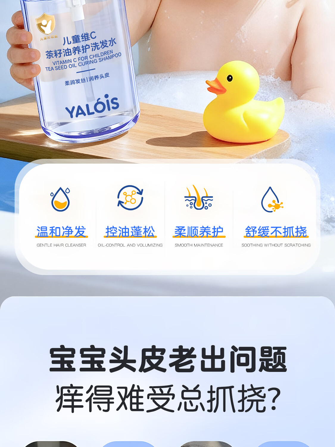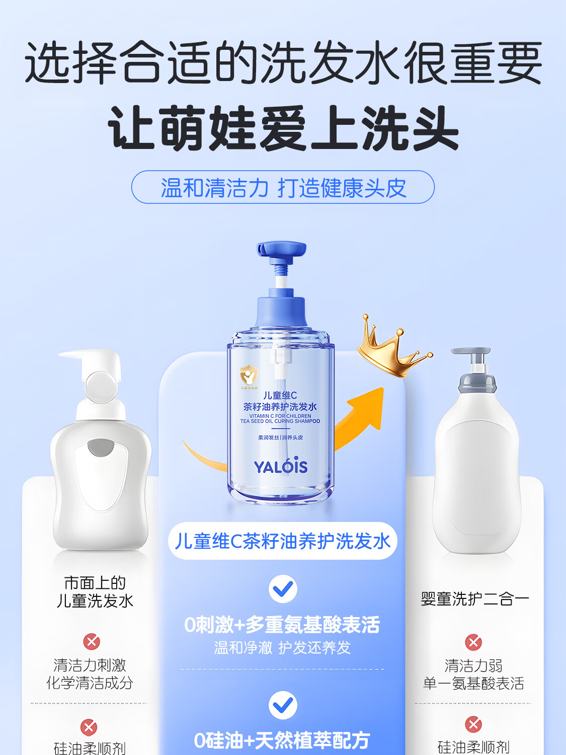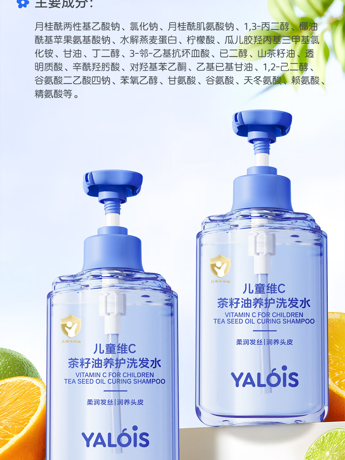 YALOIS儿童维C茶籽油洗发水婴童洗护婴幼儿大童青少年3-12岁通用600ml